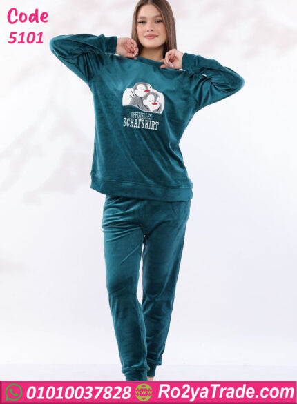 بيجامة شتوي قطيفة بطبعة كرتونية – كود 5101