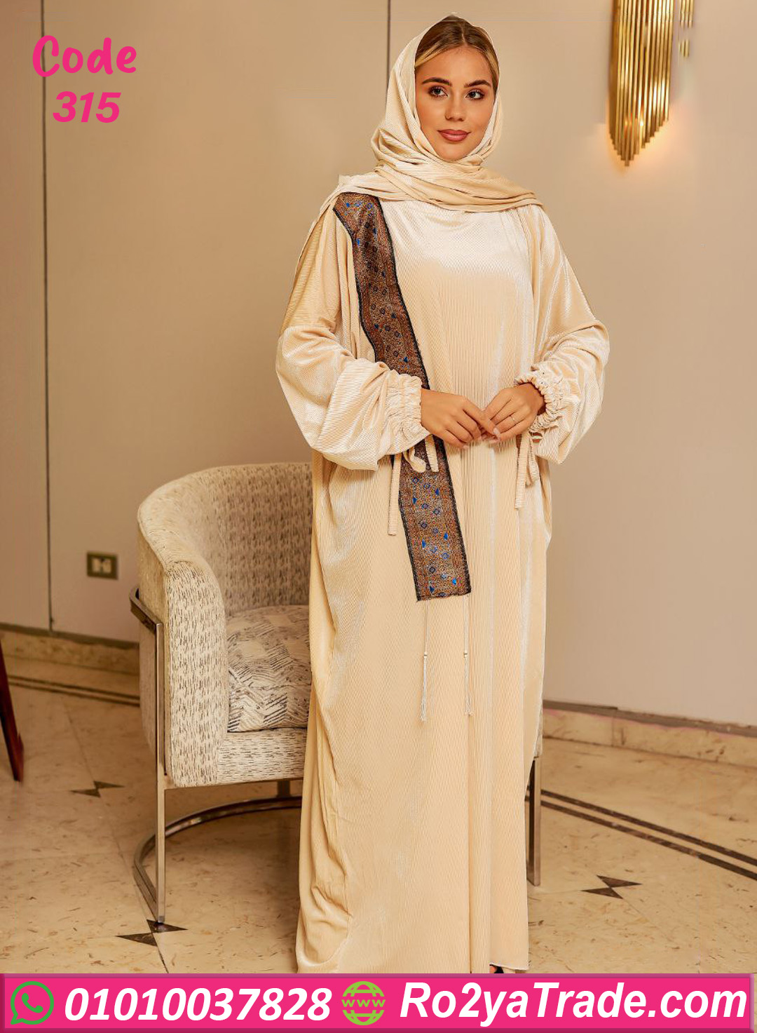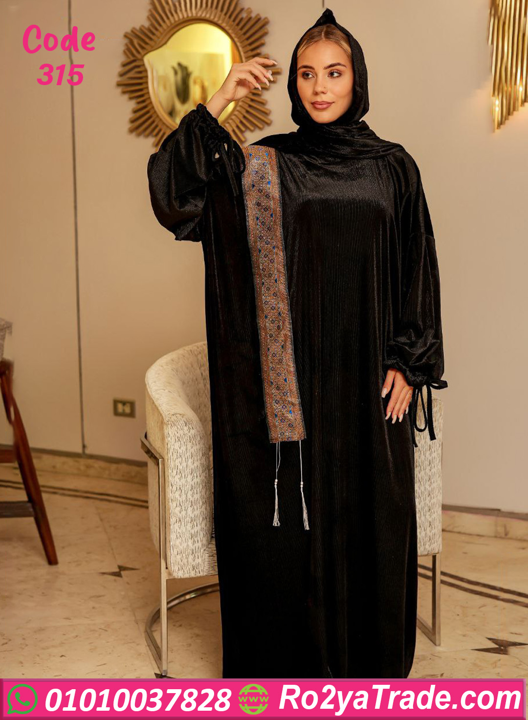 لو بتدوري على اسدال يجمع بين الوقار والشياكة وفي نفس الوقت مريح في اللبس، فموديل كود 315 اختيار مثالي ليكي. الاسدال معمول من خامة قطيفة ناعمة ودفاية، بتدي إحساس بالراحة ونعومة على الجسم، ومناسبة جدًا لأيام الشتاء.