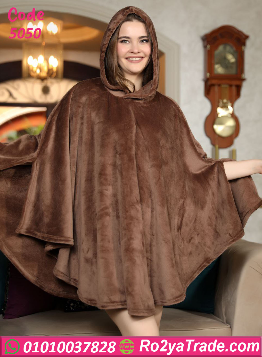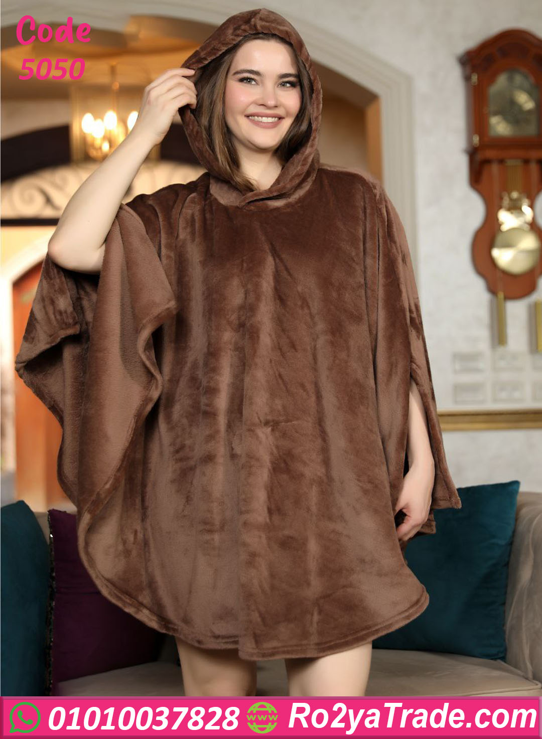 الخامة القطيفة ناعمة على الجسم وبتحافظ على درجة الحرارة. ده بيساعد على الشعور بالدفا لفترات طويلة. كمان الخامة بتجمع بين الإحساس الفاخر والعملية، وده بيخلي البونشو مناسب للشتا الحقيقي. ينفع يتلبس في الصبح بدري أو في أوقات الليل.
