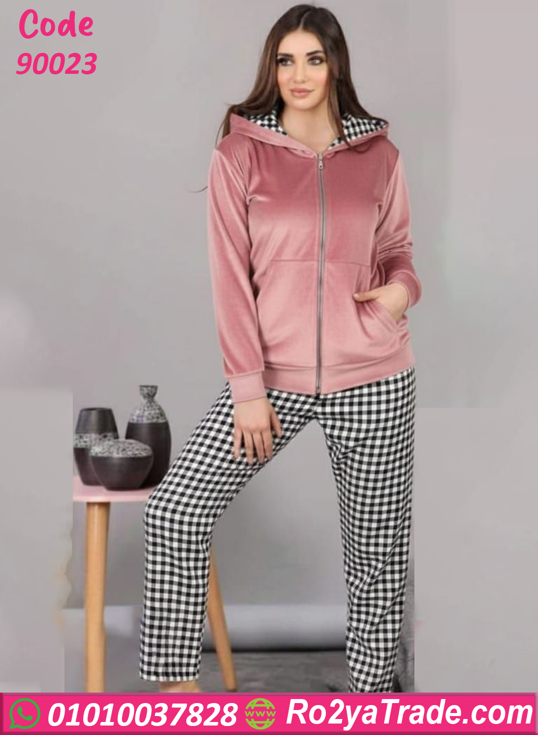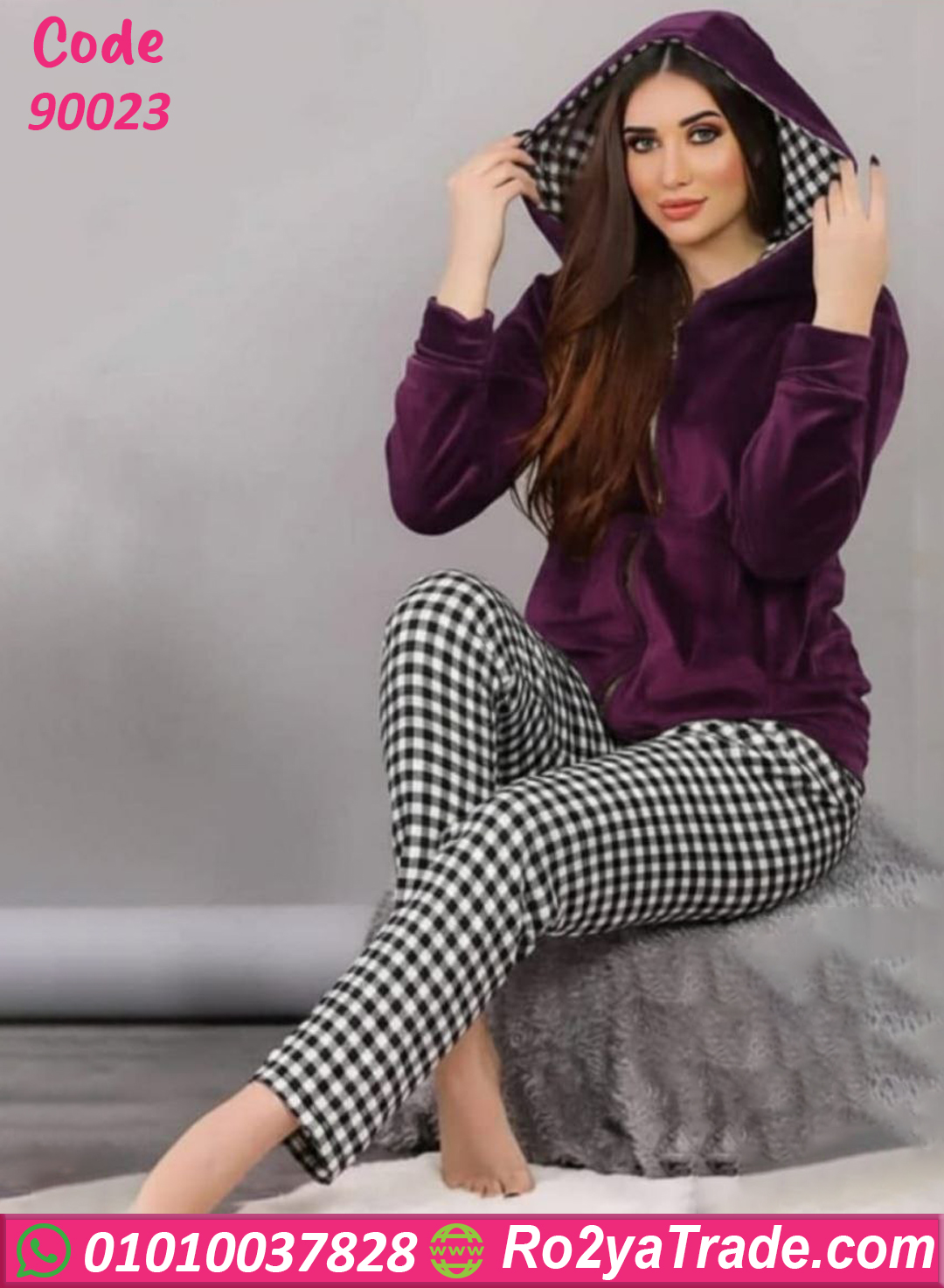 بيجاما شتوي فرو ناعمة بخامة دافية ومريحة، التصميم عملي وبيدّي شياكة في اللبس خصوصًا مع البنطلون الكاروه المميز. الجاكت بسوستة وبيوفر سهولة في اللبس مع كابيشون مبطن شكله تحفة. مناسبة للبيت والخروج الخفيف وبتدي إحساس دفا عالي جدًا. البيجاما من ماركة CuTe وبتقعد معاكي موسم كامل من غير ما يبهدل ولا ينسل، وكمان مناسبة للهدايا. لو بتدوري على طقم عملي ومريح وناعم فده الاختيار المثالي ليكي – كود 90023.