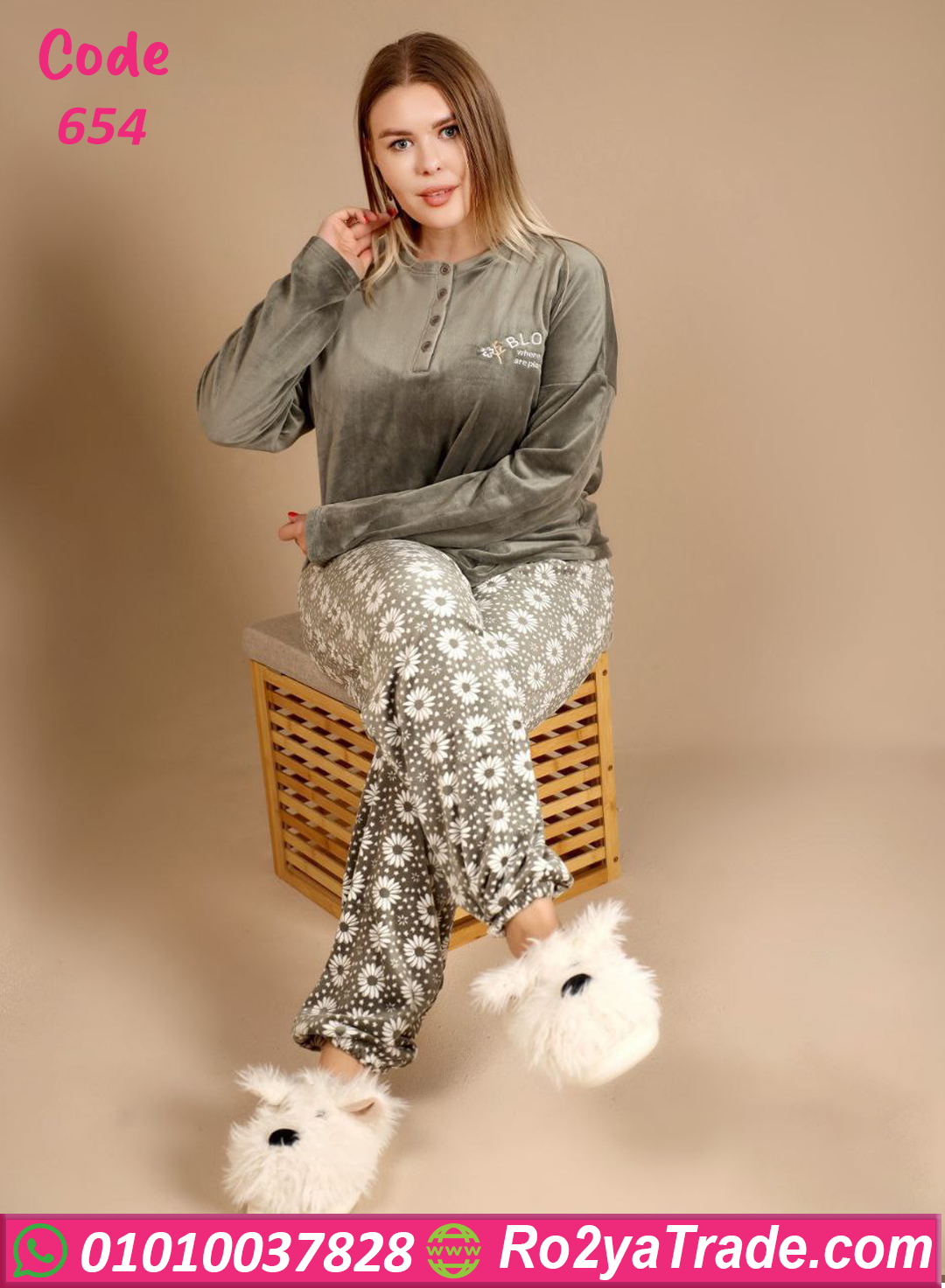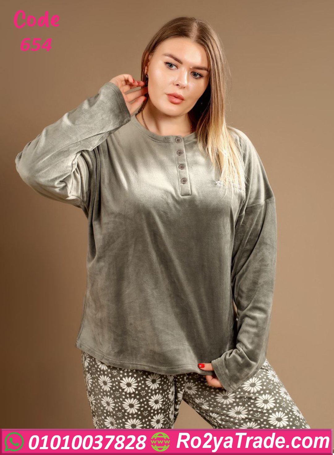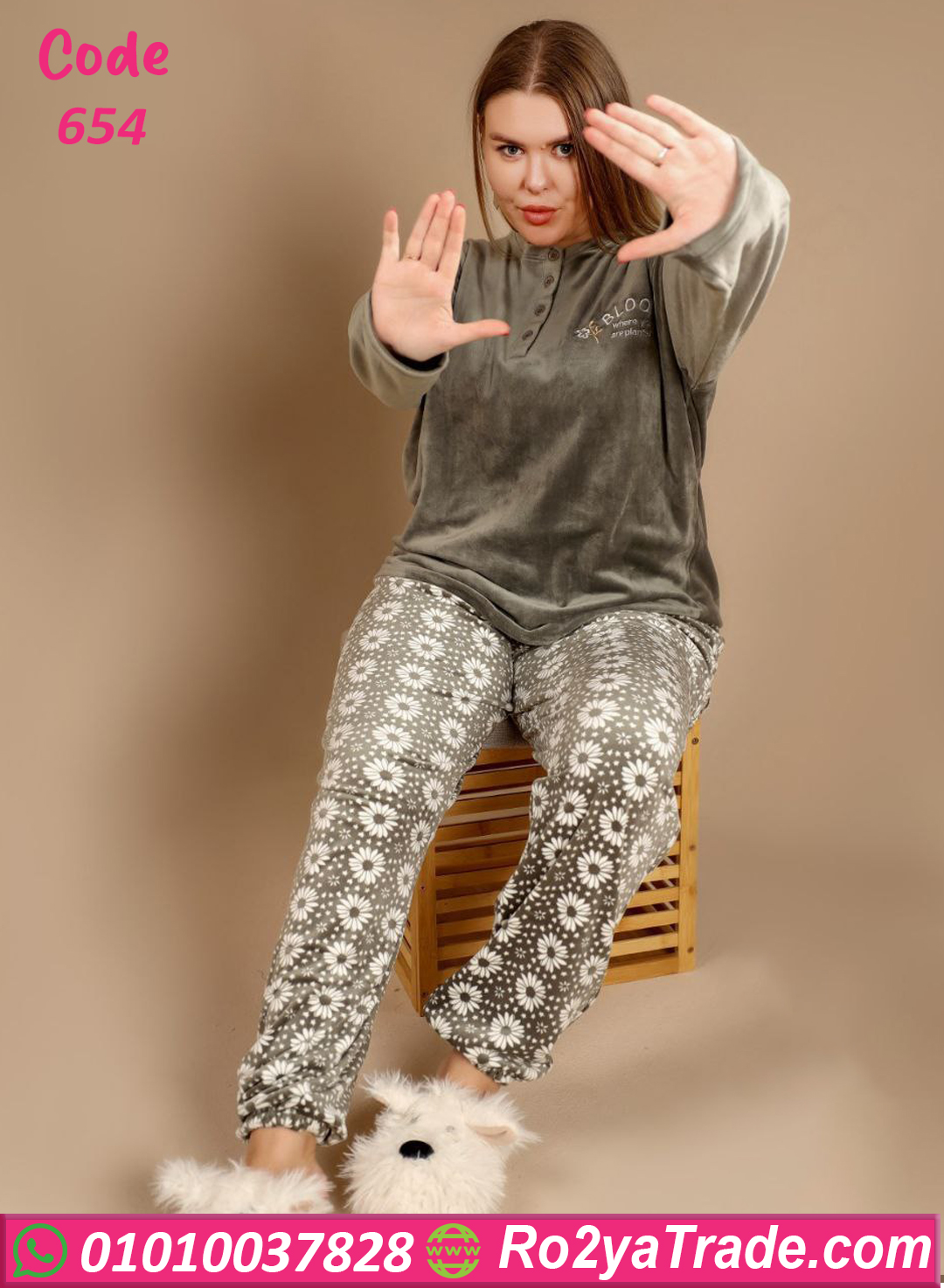 بيجامة بيج سايز قطيفة شتوي – كود 654