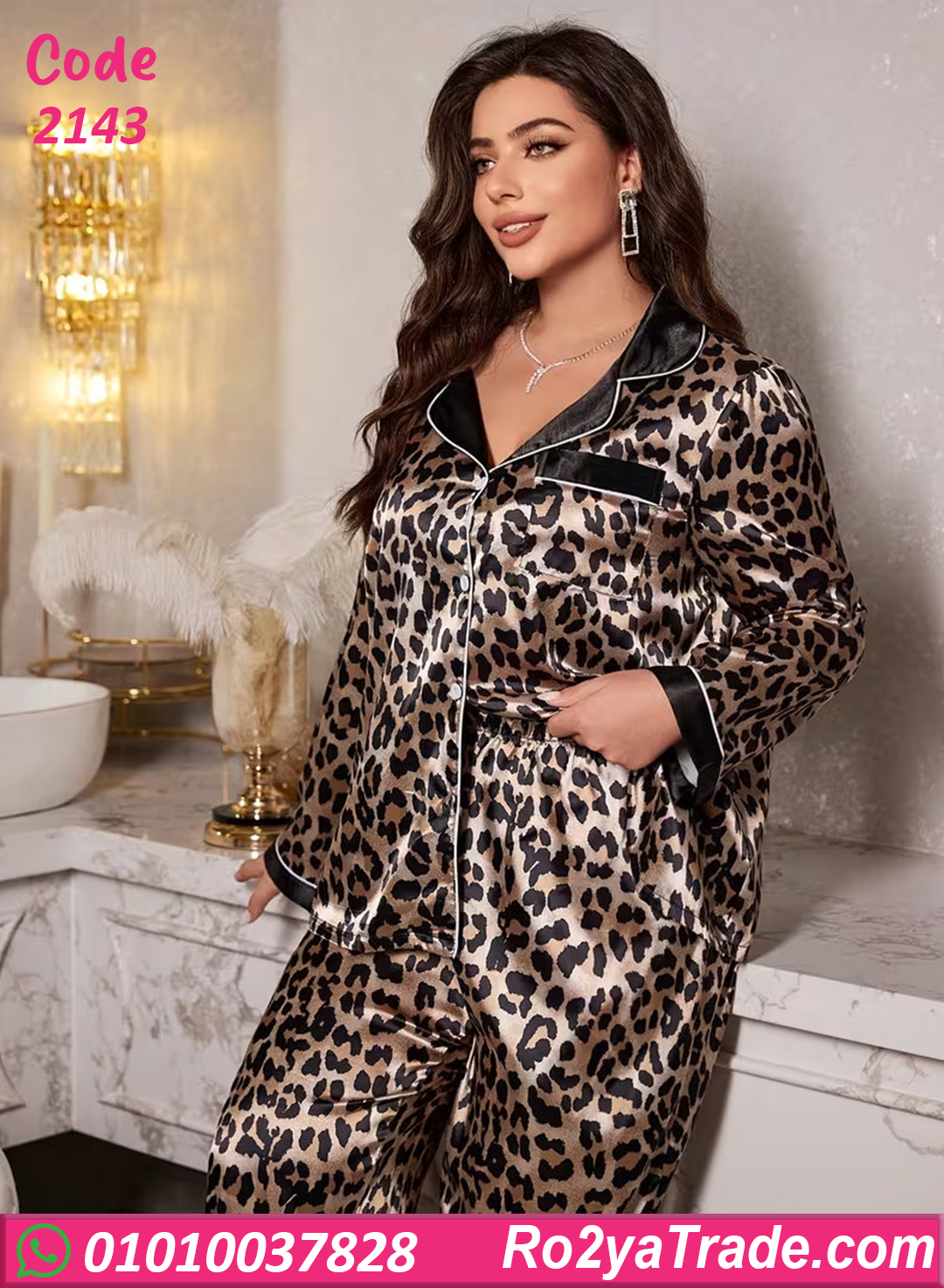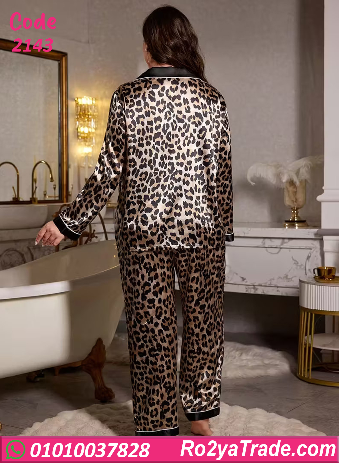 بيجامة حريمي ستان بطبعة تايجر فخمة، خامتها ناعمة وباردة على الجسم، بتدي إحساس راقي ومريح جدًا في اللبس، تصميم شيك مناسب للبيت أو النوم وكمان هدية شيك لأي عروسة.