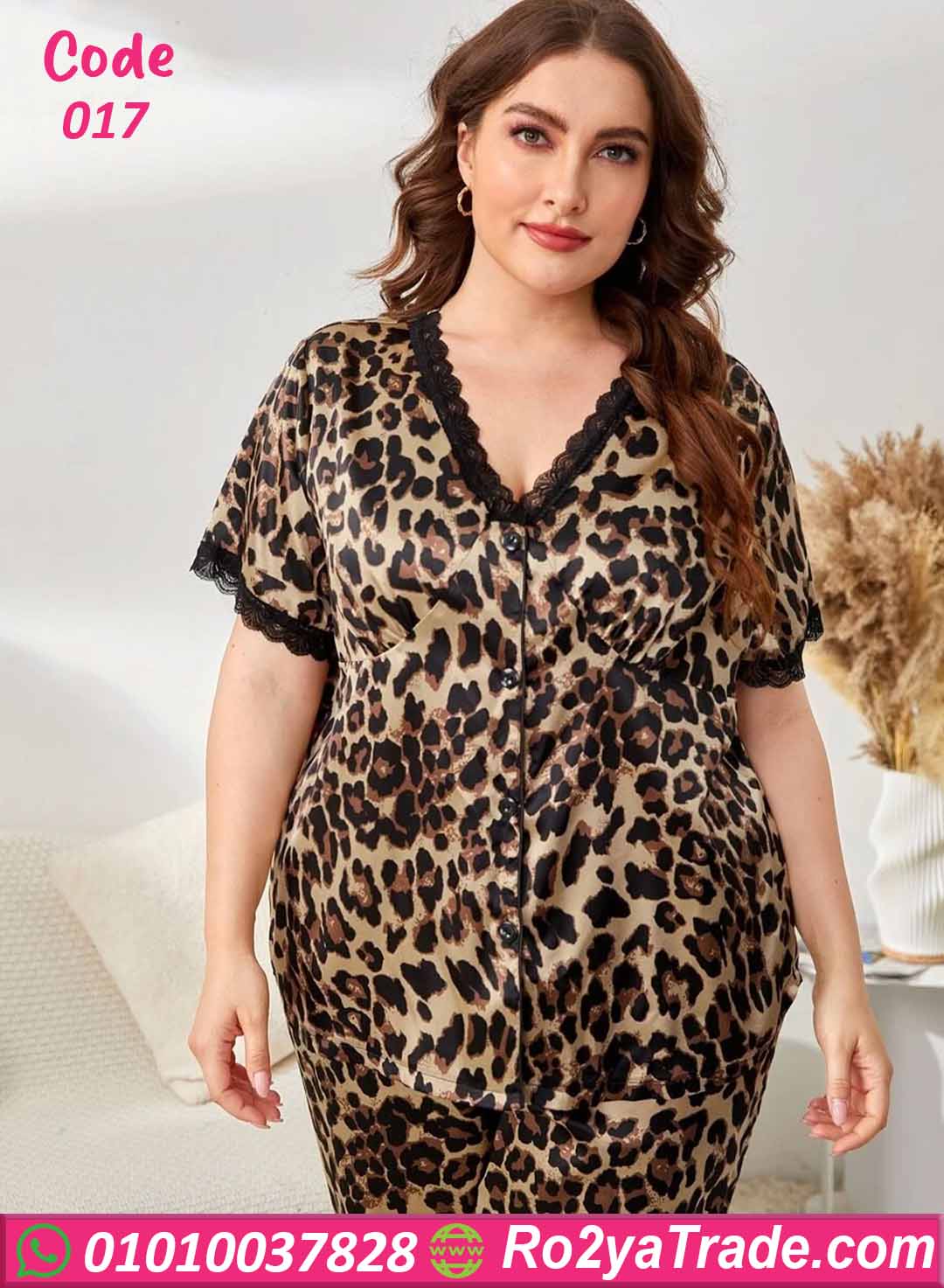 بيجامة صيفي بيج سايز بخامة خفيفة ناعمة وتصميم تايجر جريء بلمسة دانتيل أنيقة، مثالية لإطلالة بيتية مريحة وعصرية 🐆✨