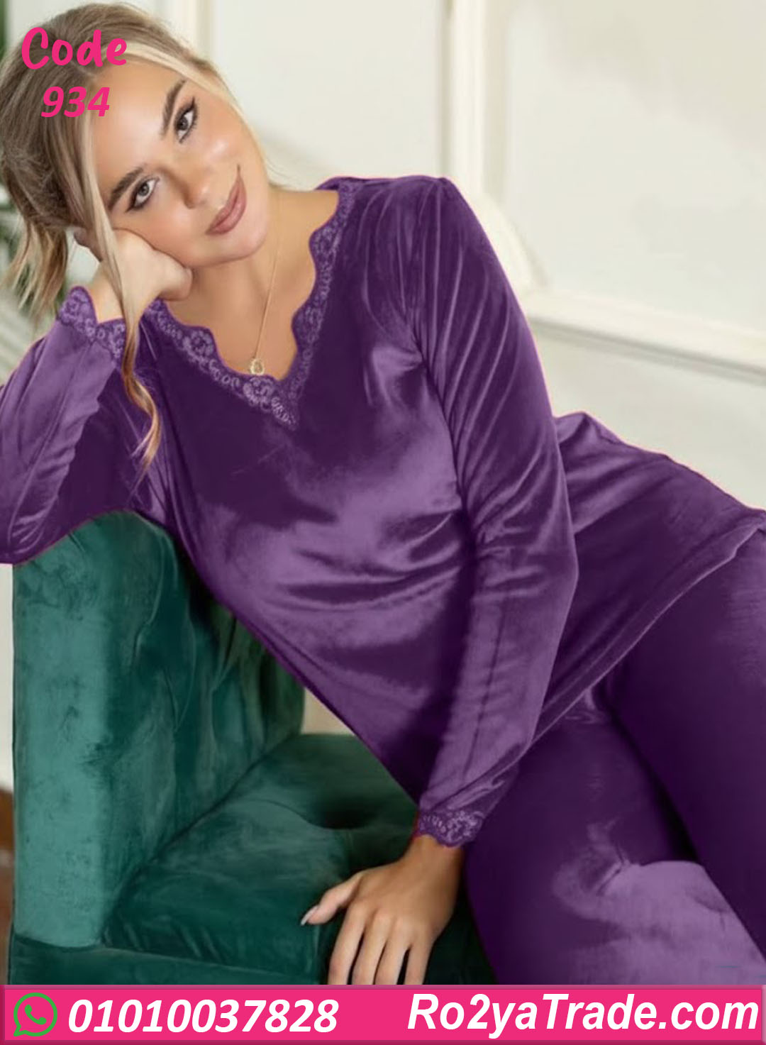 بيجامة نسائية شتوي مكوّنة من بلوزة كم طويل بقصة مريحة مع بنطلون قطيفة ناعم، الخامة تقيلة وبتدي إحساس عالي بالدفا من غير ما تكون تقيلة في اللبس. التصميم عملي ومريح للحركة ومناسب للاستخدام اليومي داخل البيت. كود 934