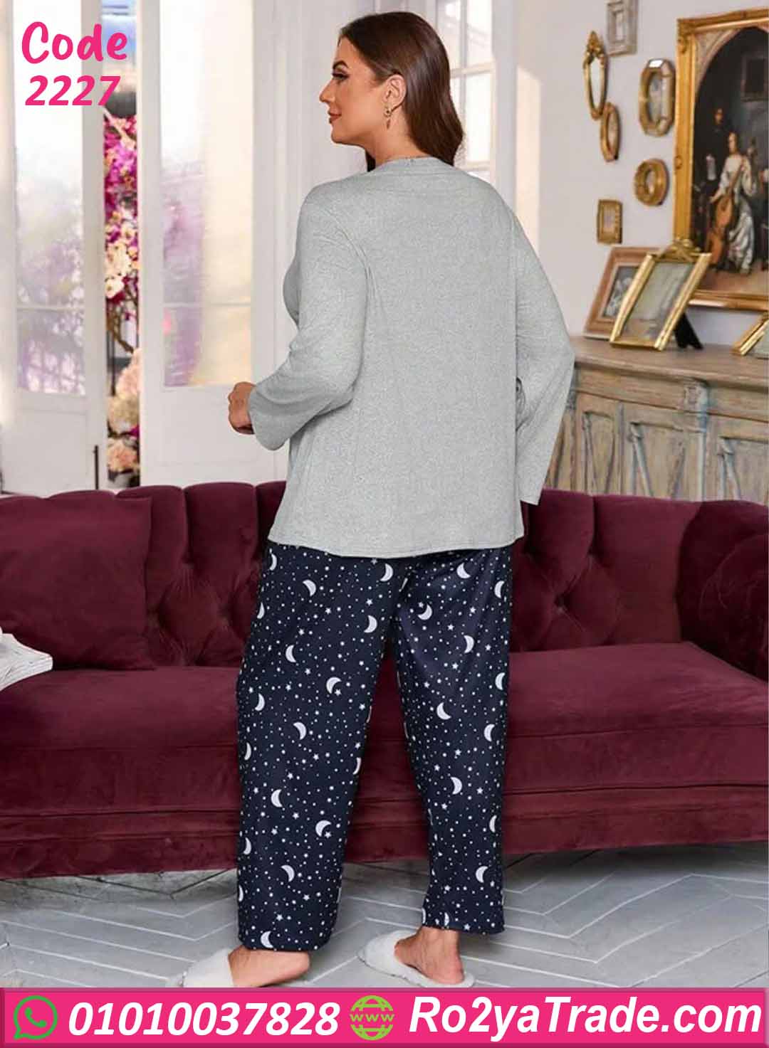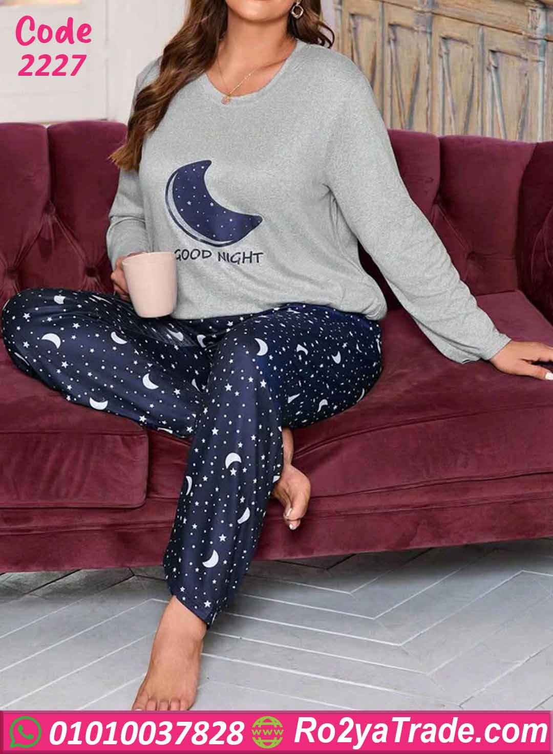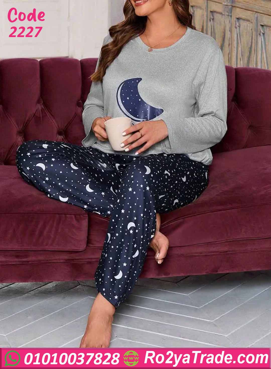 بيجامة حريمي شتوي بيج سايز قمر ونجوم – كود 2227