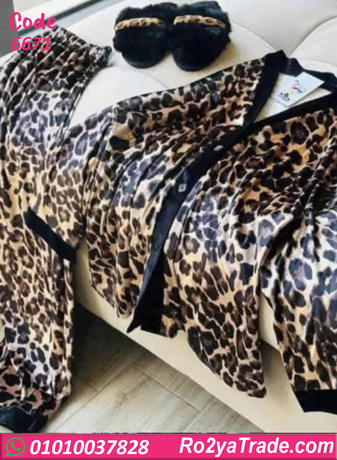 بيجامة شتوي حريمي كود 6671 بخامة مريحة وناعمة على الجسم، تصميم تايجر مميز يدي شكل شيك ومختلف،