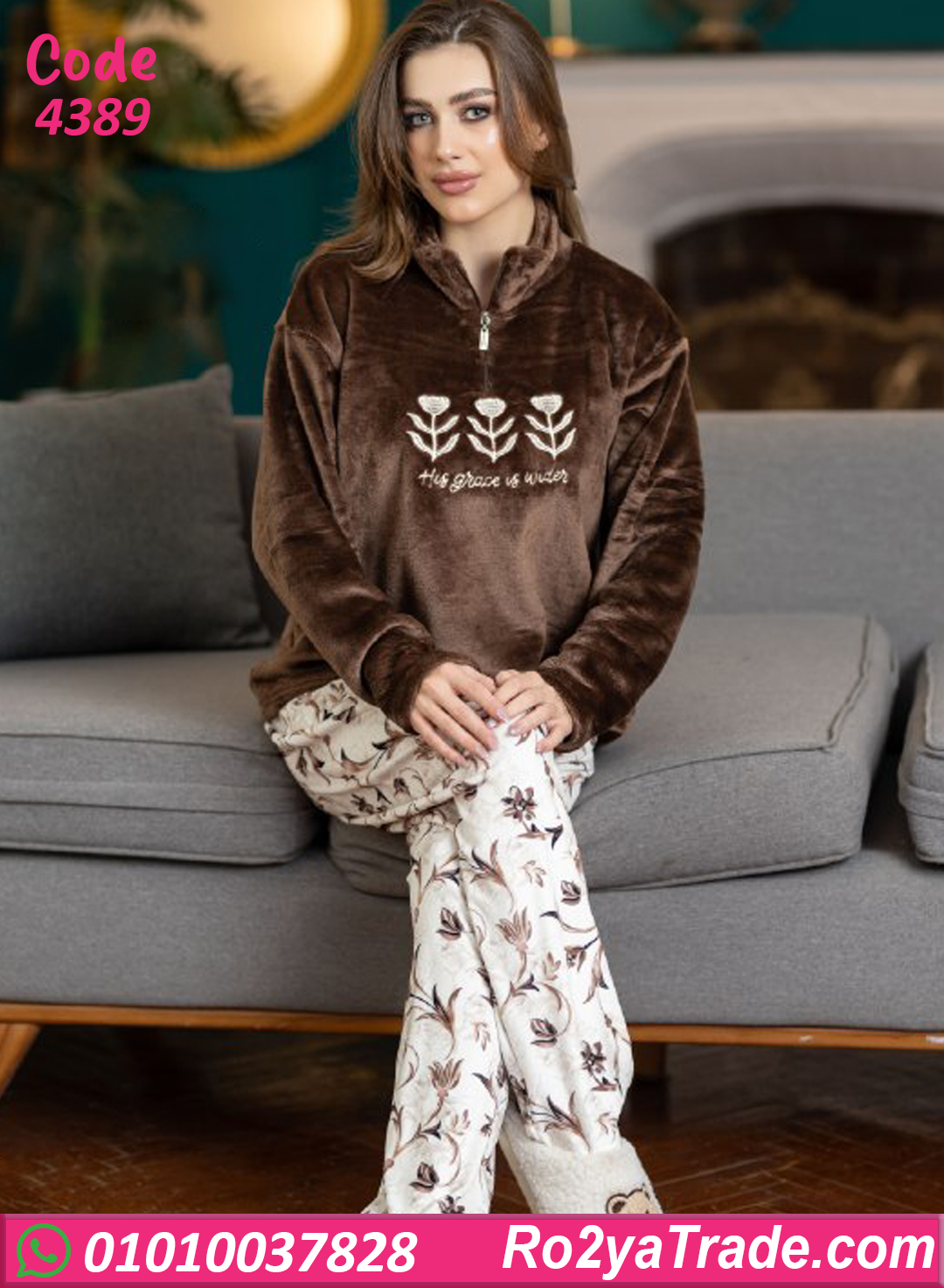 بيجامة حريمي شتوي قطعتين – كود 4389
