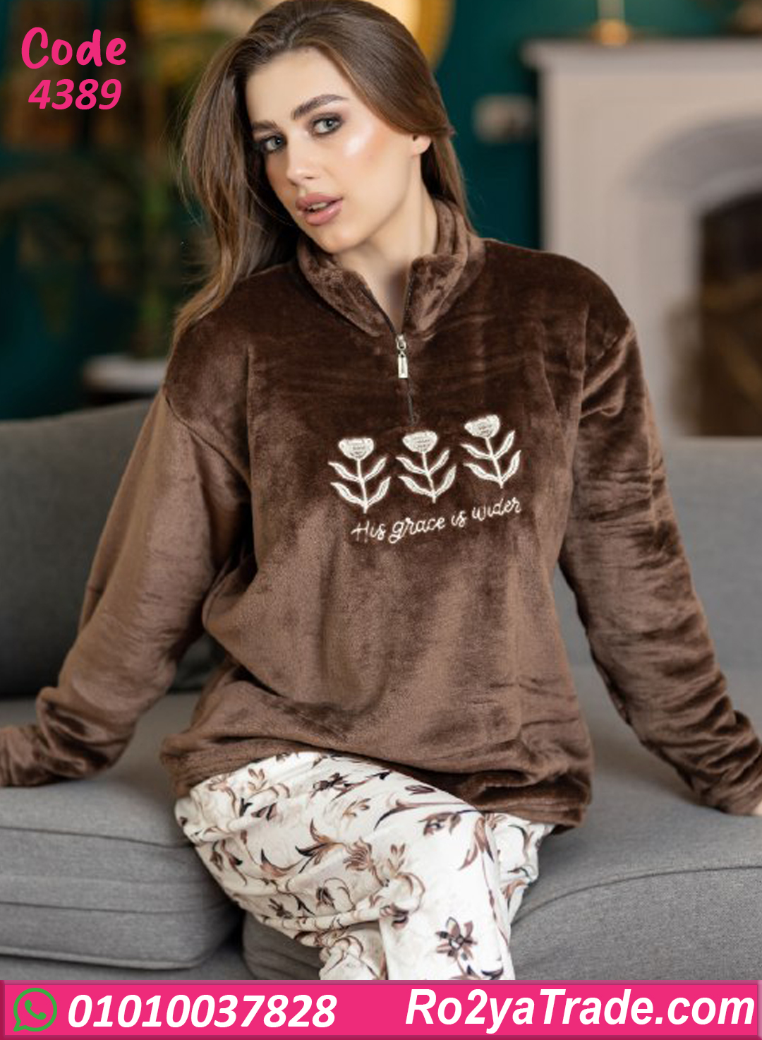 بيجامة حريمي شتوي كود 4389 اختيار عملي لكل ست بتدور على الدفا مع الراحة وشكل أنيق في نفس الوقت