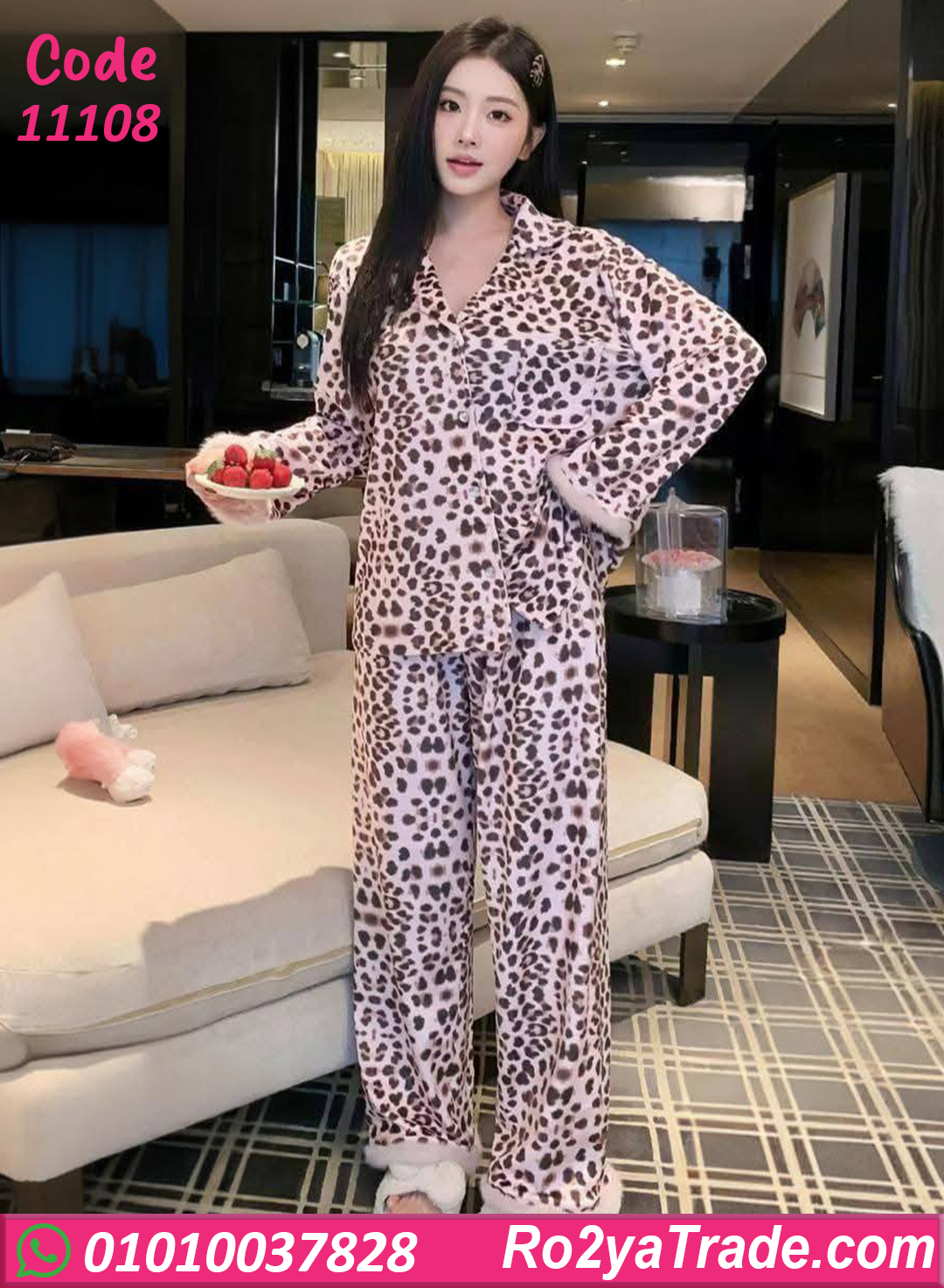 بيجامة حريمي شتوي بنقشة ليوبارد أنيقة، خامة ناعمة ودافئة بتوفر أقصى راحة وأناقة في اللبس البيتي خلال أيام الشتاء.