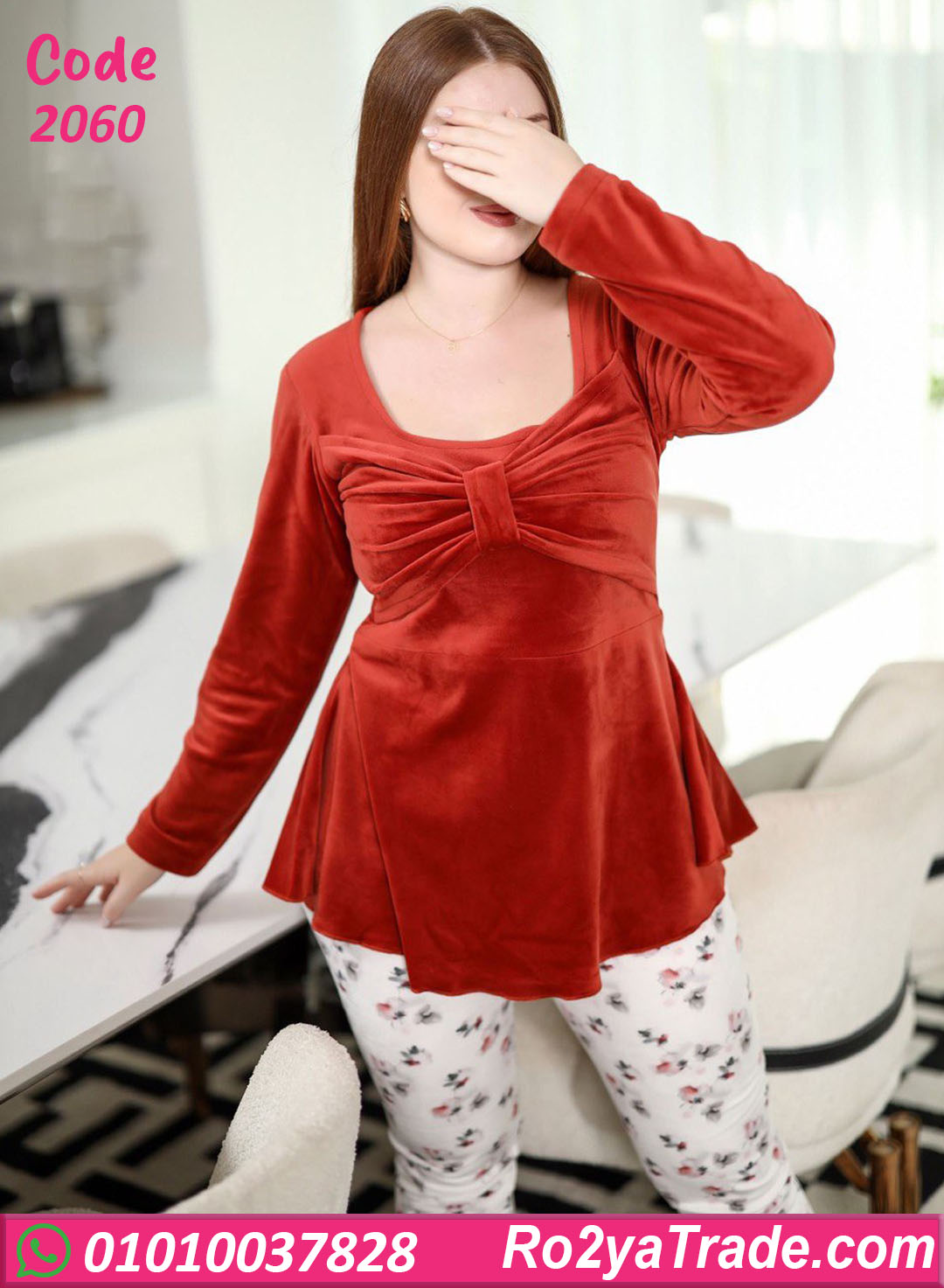 بيجامة حريمي شتوي كود 2060 اختيار مثالي لكل ست بتدور على الدفا مع شكل أنيق ومختلف. البيجامة مكونة من قطعتين