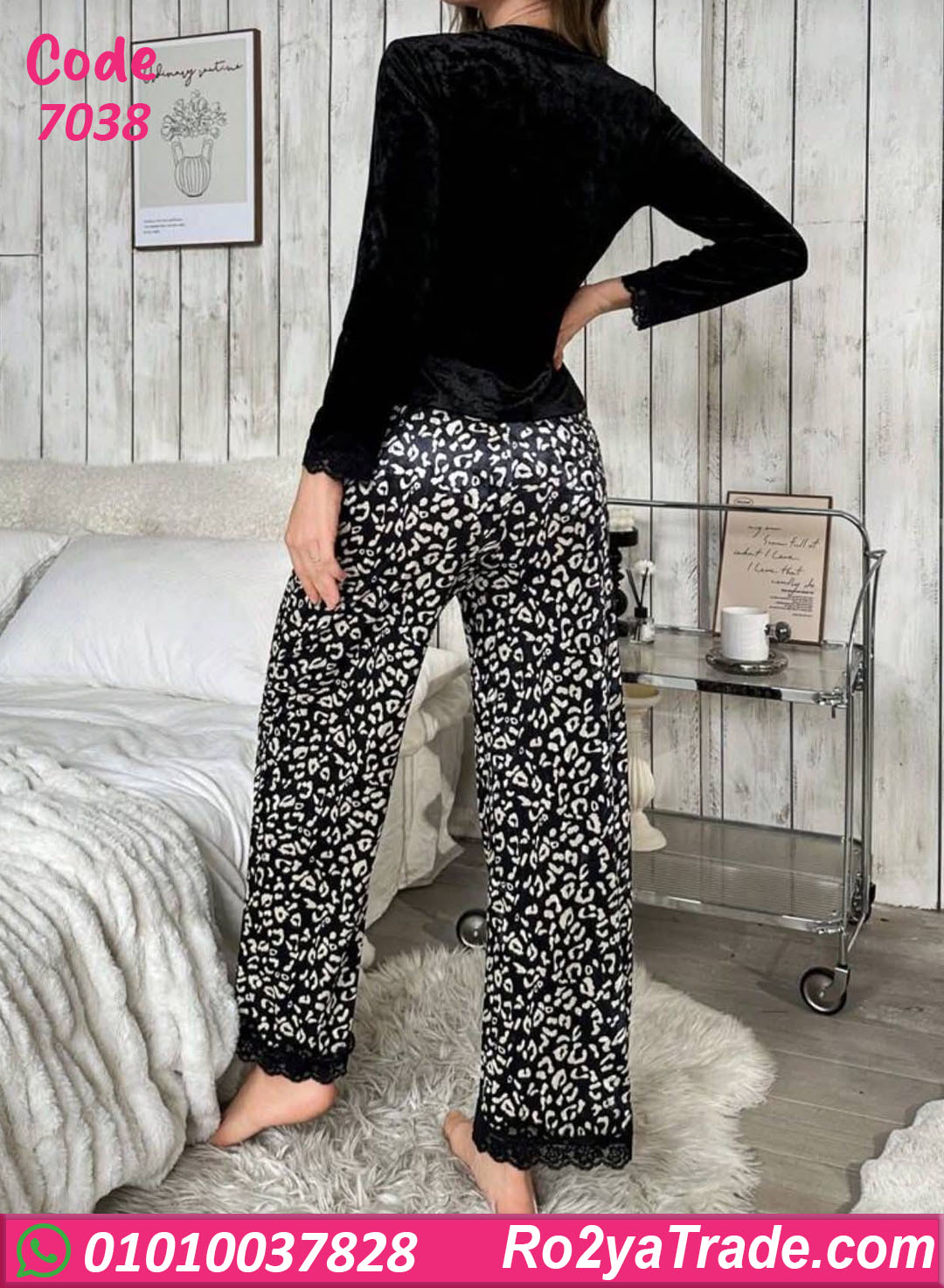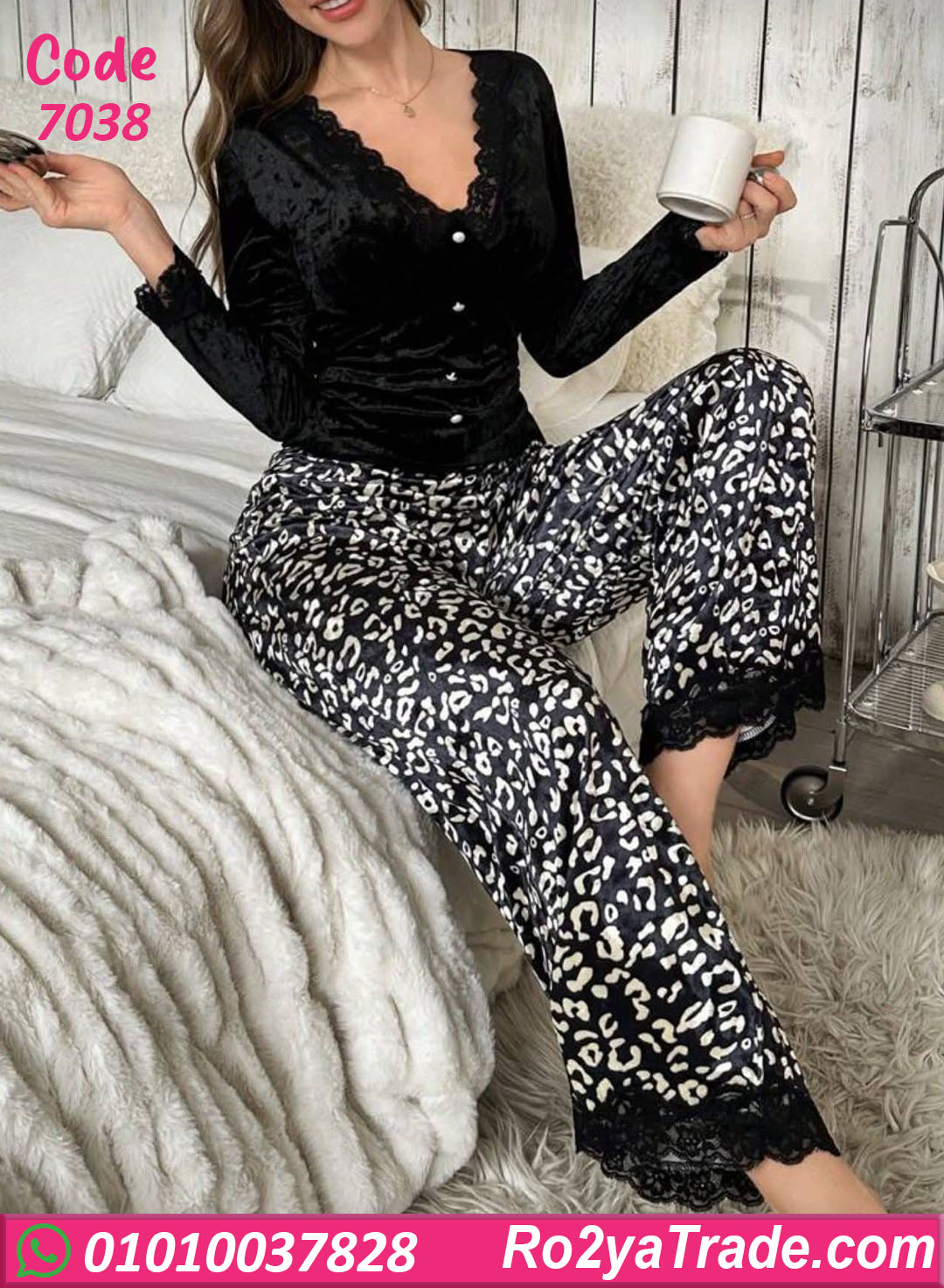 بيجامة حريمي شتوي كود 7038 اختيار مثالي لكل ست بتحب الشياكة مع الراحة. البلوزة القطيفة خامتها ناعمة وبتدي إحساس دافي ومريح، مع دانتيل أنيق يضيف لمسة أنثوية راقية.