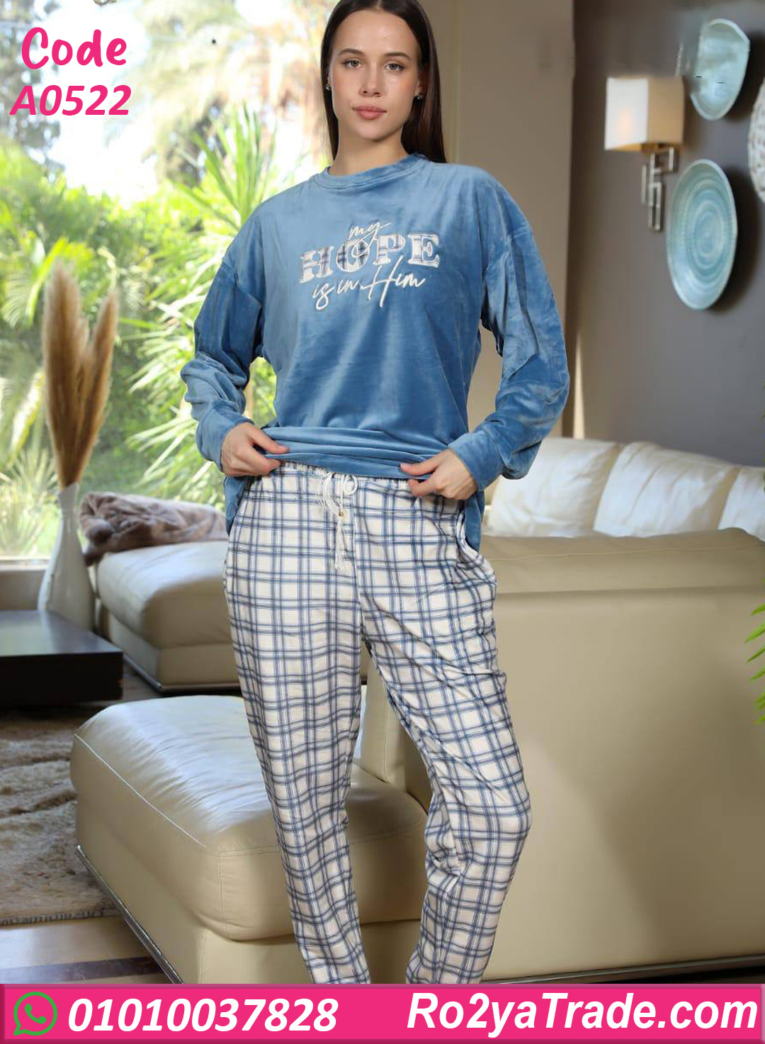 بيجامة حريمي شتوي كود A0522 اختيار ممتاز لكل ست بتدور على الراحة مع شكل مرتب وعصري. البيجامة مكوّنة من تيشيرت كم طويل بخامة ناعمة وطباعة أنيقة بتدي شكل هادي، ومعاه بنطلون مريح بنقشة كاروه كلاسيك بتكمل اللوك بشكل عملي وجذاب.
