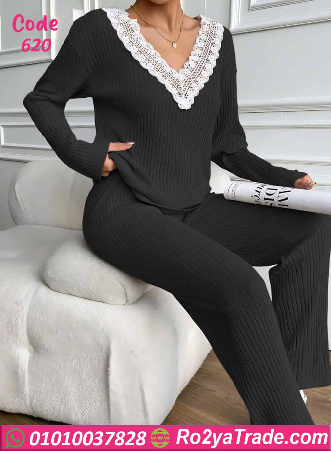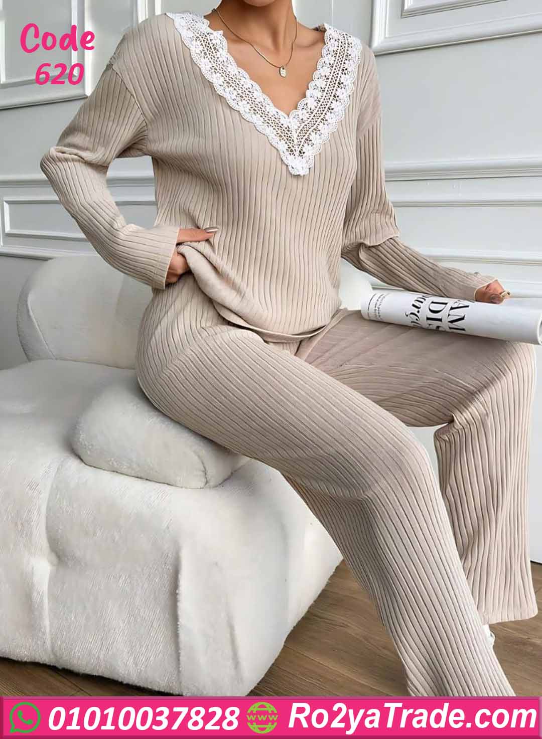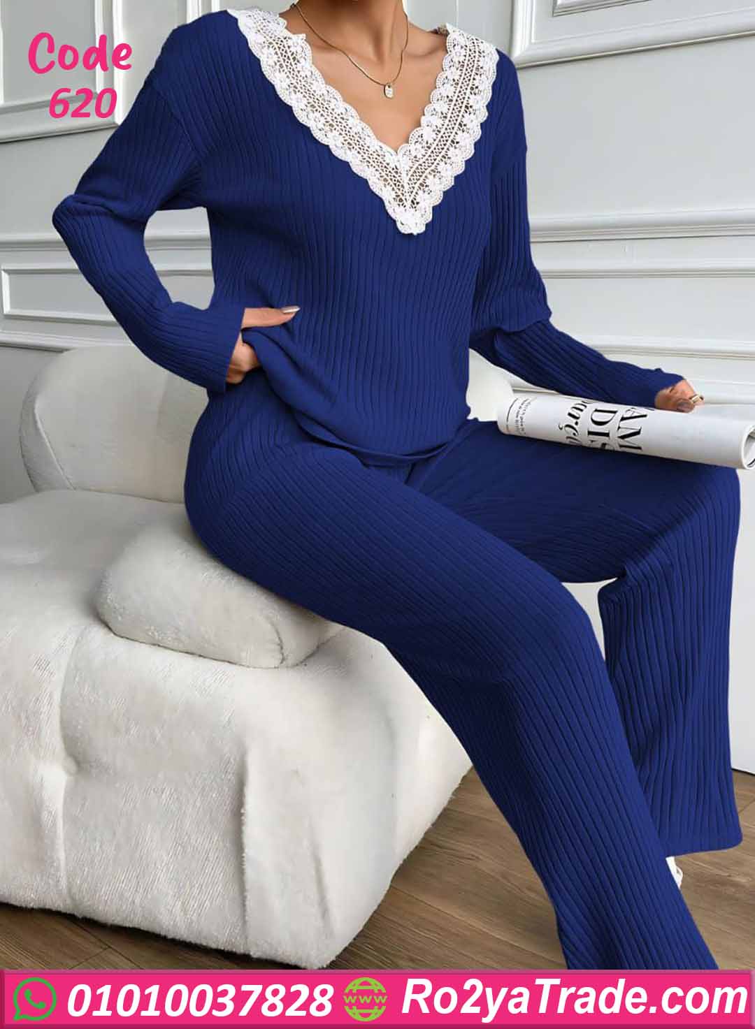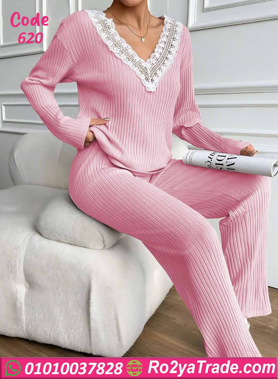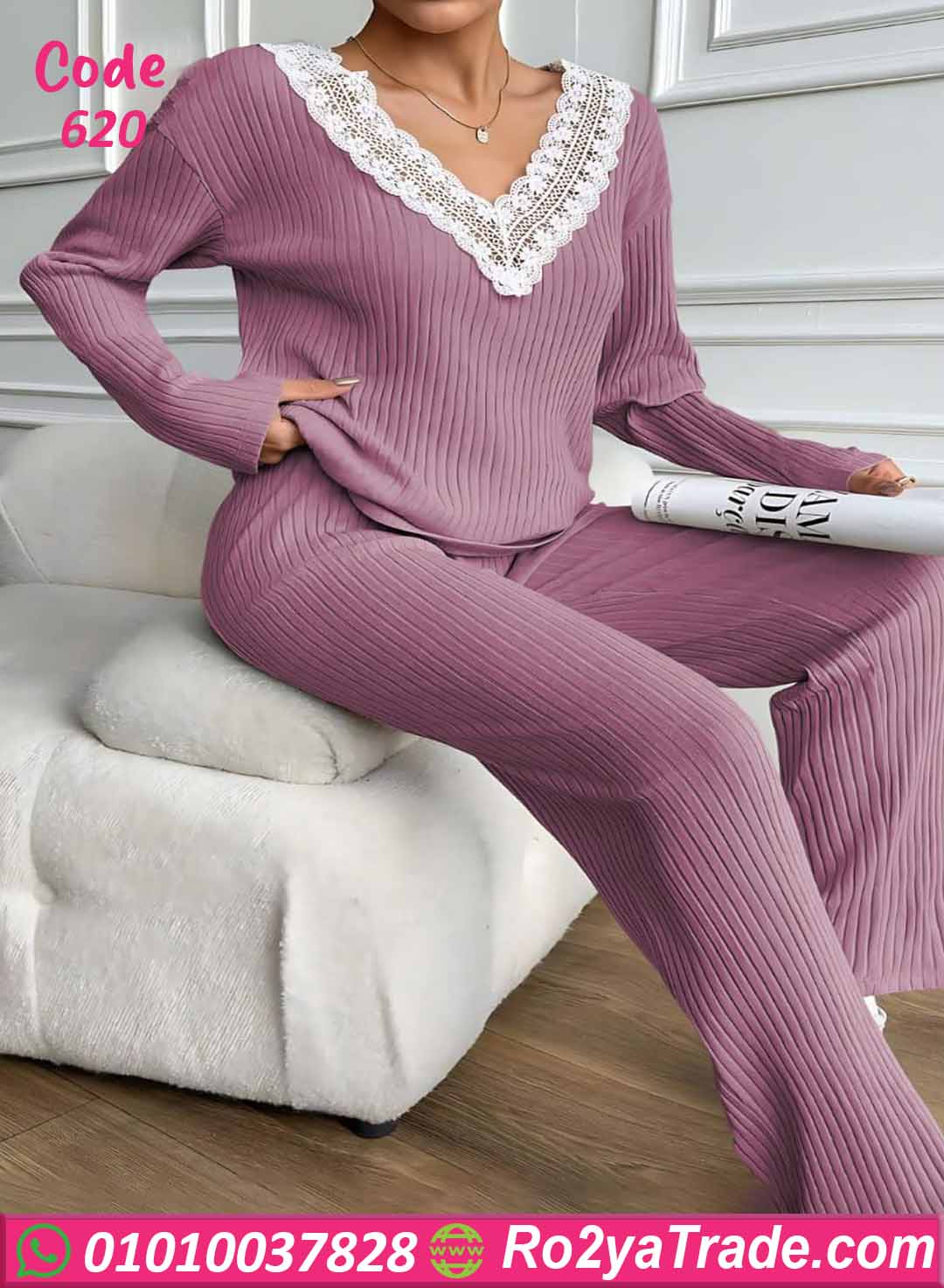 اطلبي الآن بيجامة حريمي شتوي مضلع بالدانتيل كود 620 بأفضل سعر