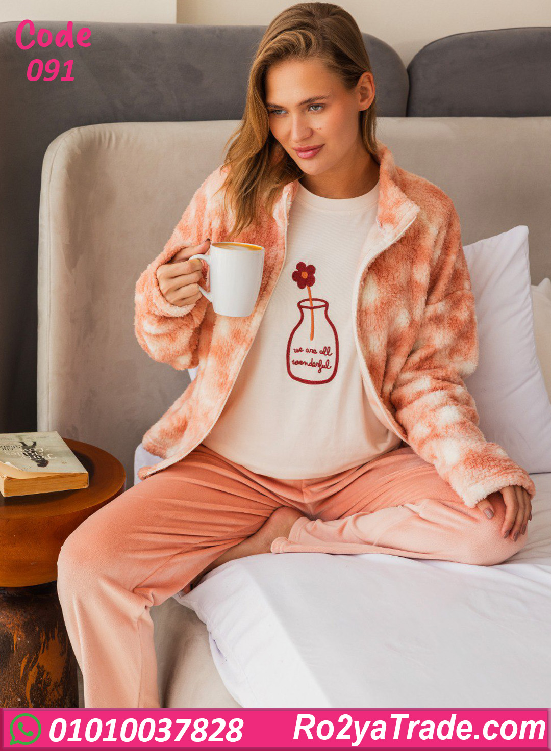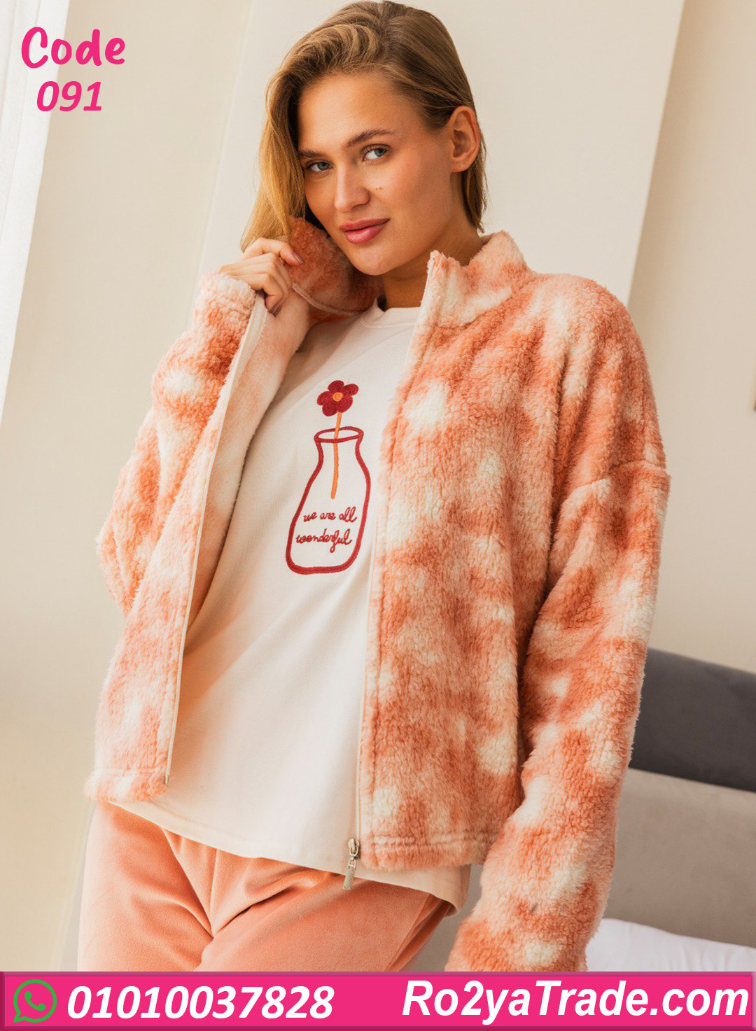 بيجامة حريمي شتوي مع جاكيت – كود 091