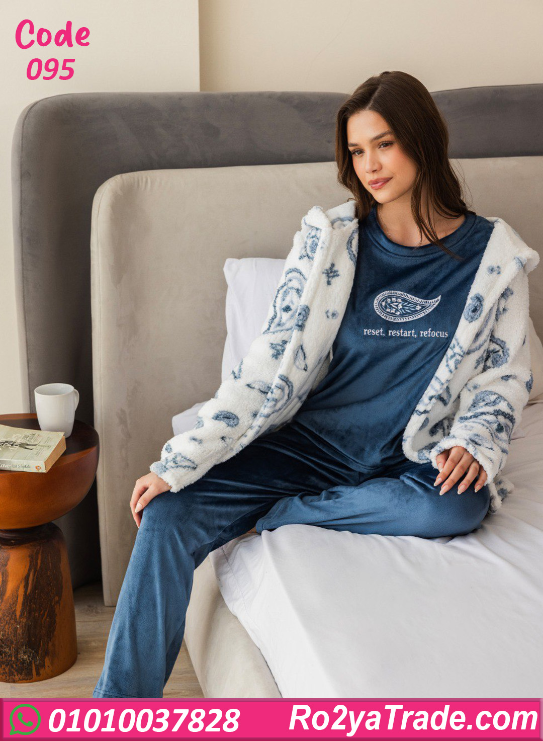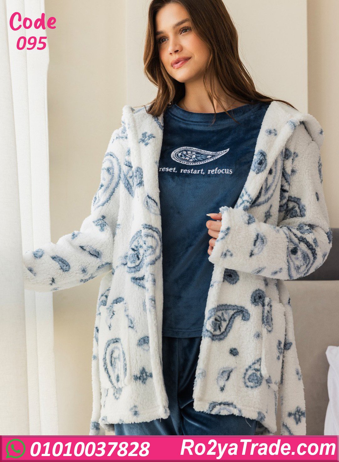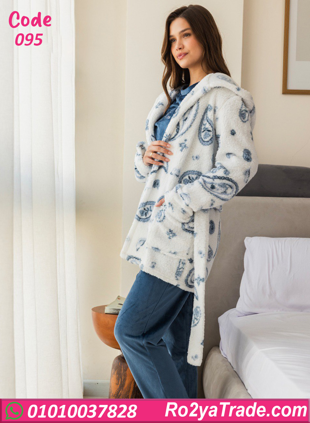 بيجامة حريمي شتوي مع جاكيت – كود 095
