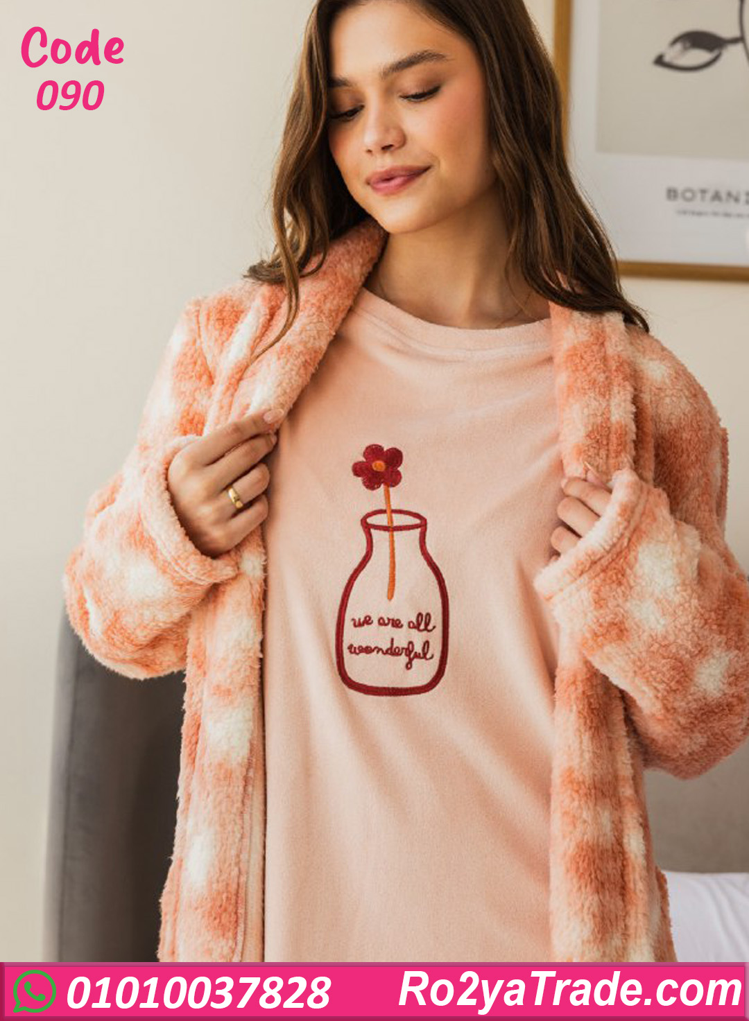كاش حريمي شتوي بتصميم شيك ومميز، مكوّنة من طقم مريح مع روب دافي،