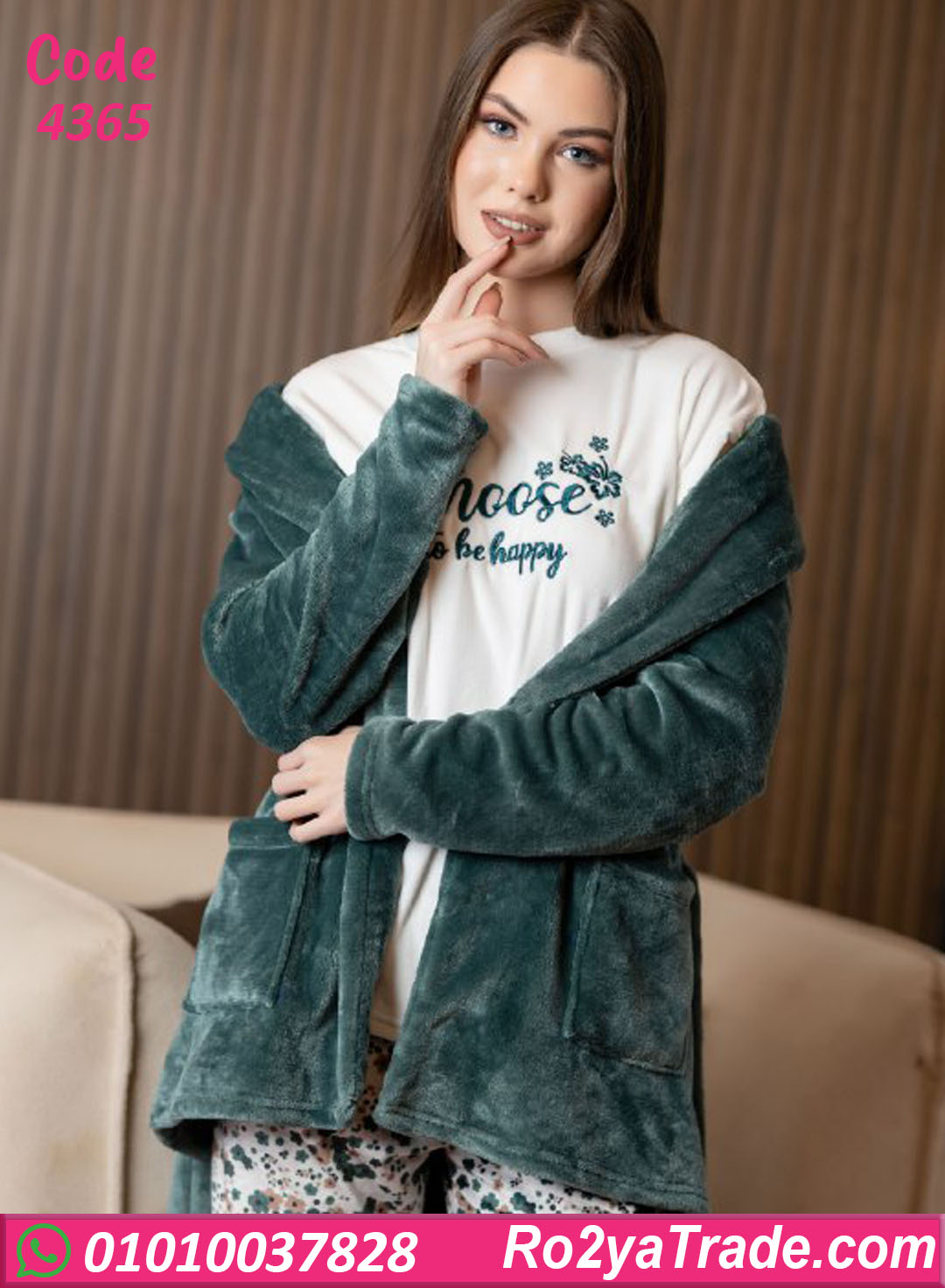 بيجامة حريمي شتوي مع روب كود 4365 اختيار مثالي لكل ست بتدور على الدفا والراحة مع شكل شيك في نفس الوقت