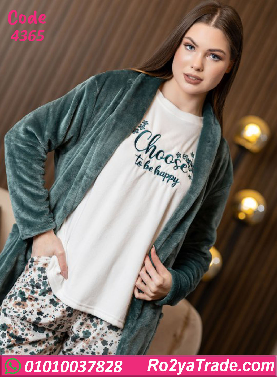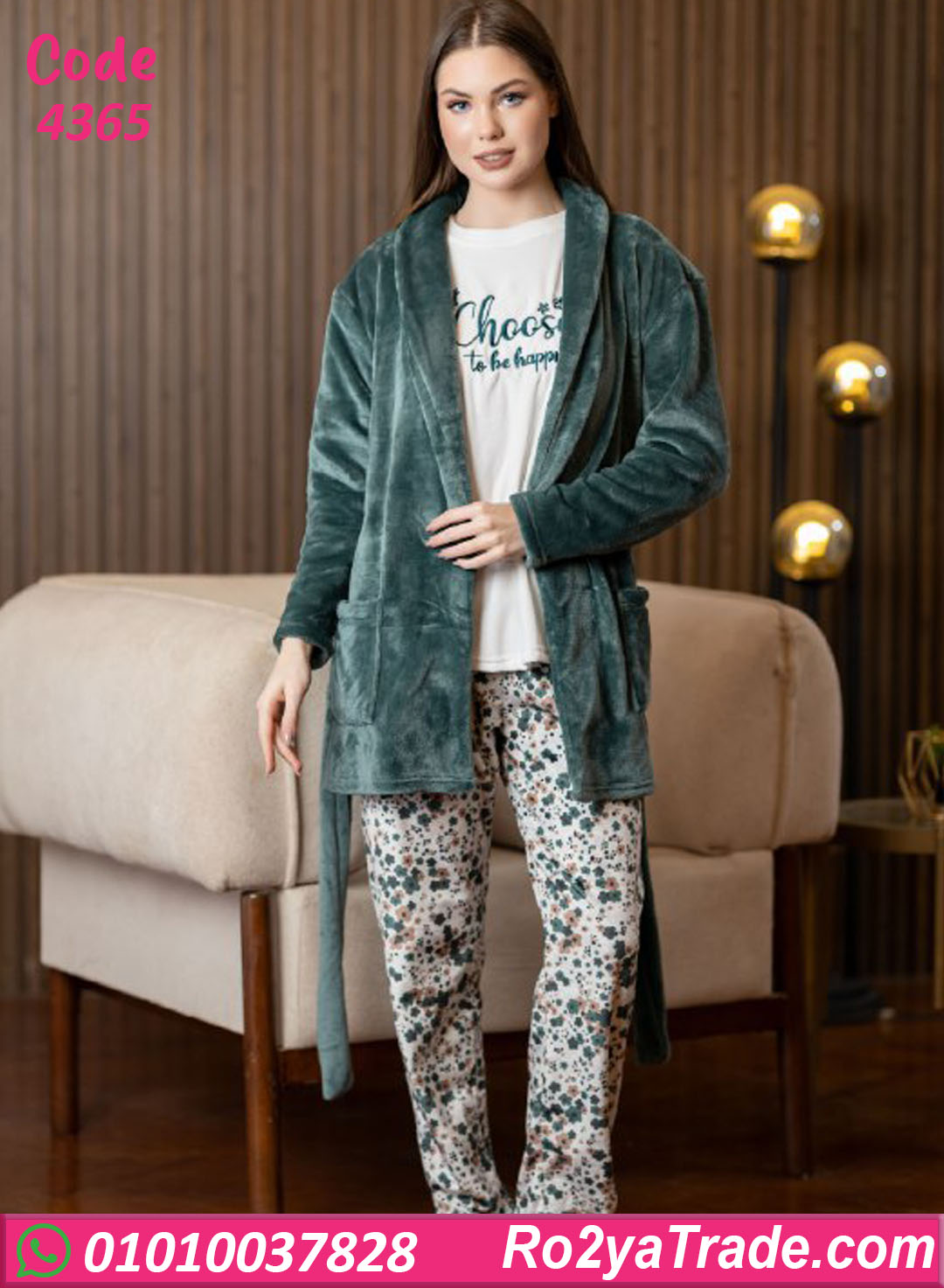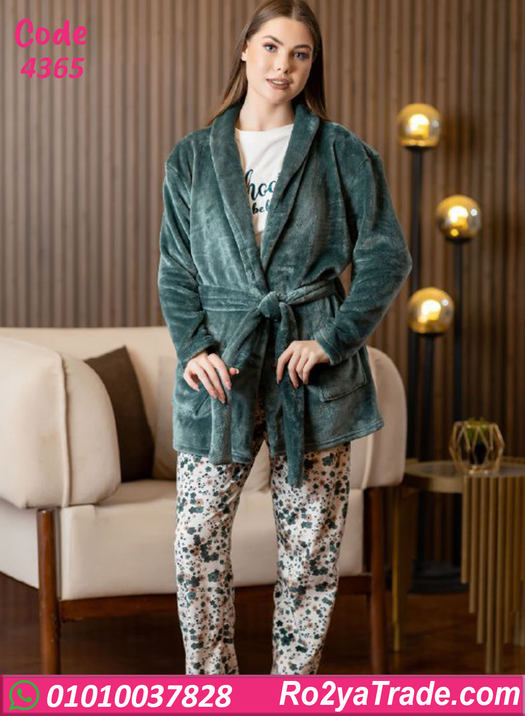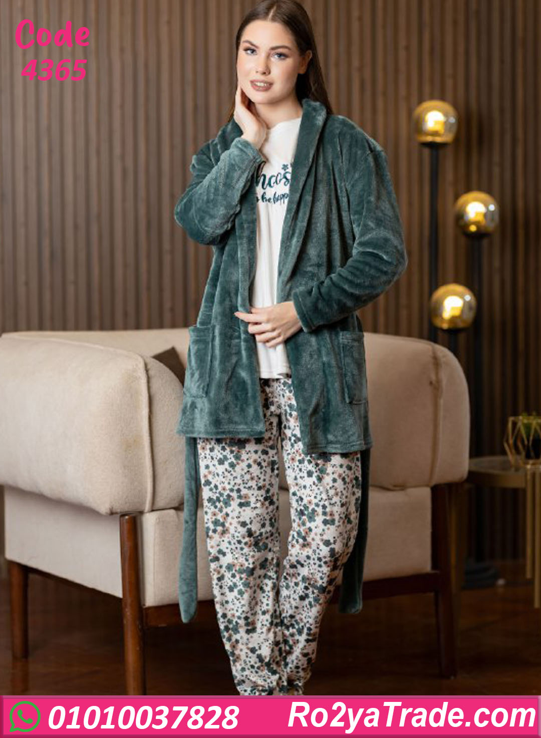 بيجامة حريمي شتوي مع روب – كود 4365