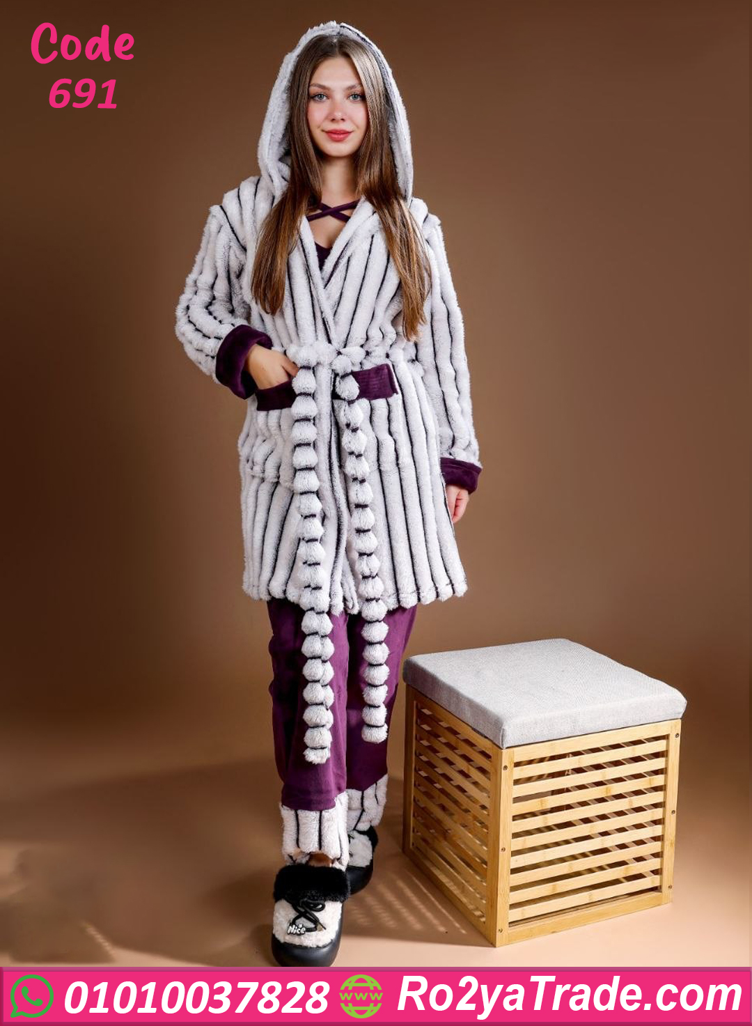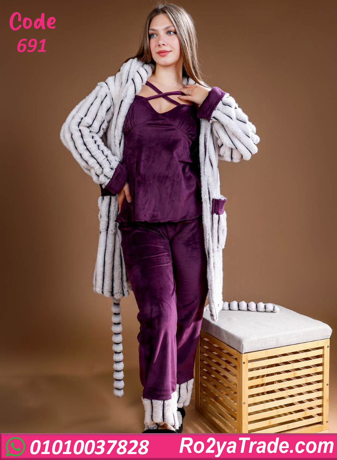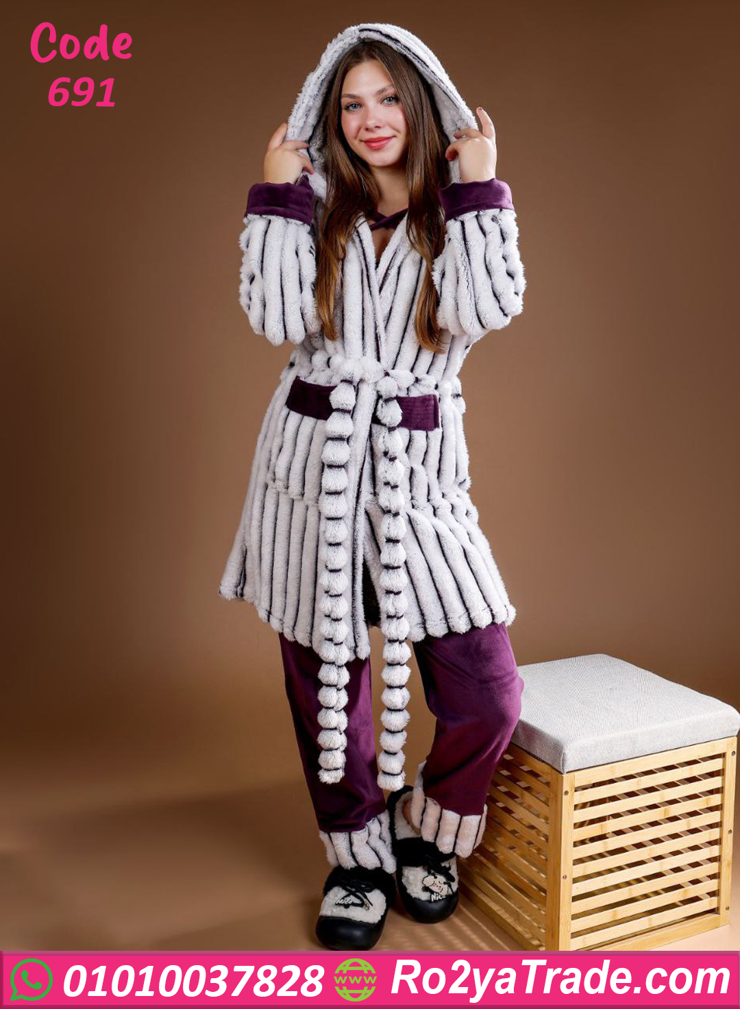 بيجامة حريمي شتوي 3 قطع بالروب – 691