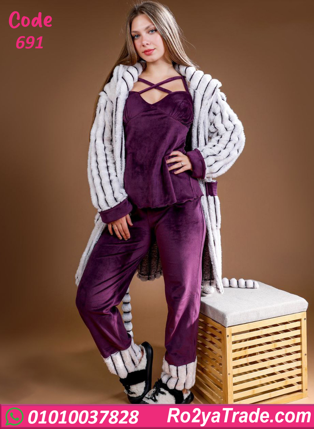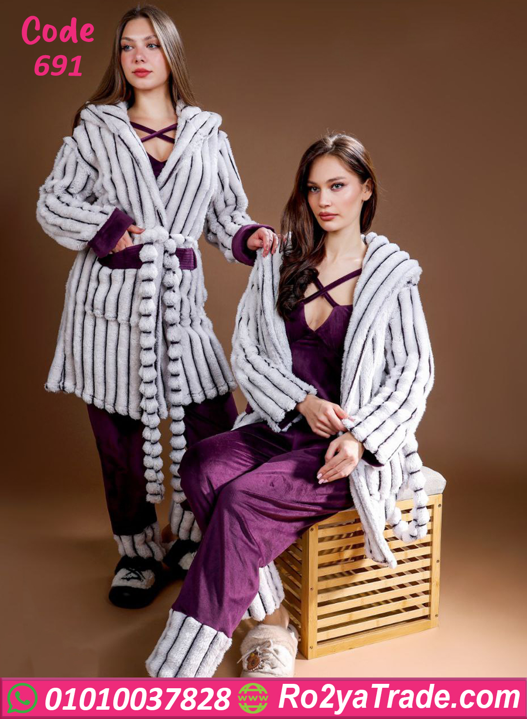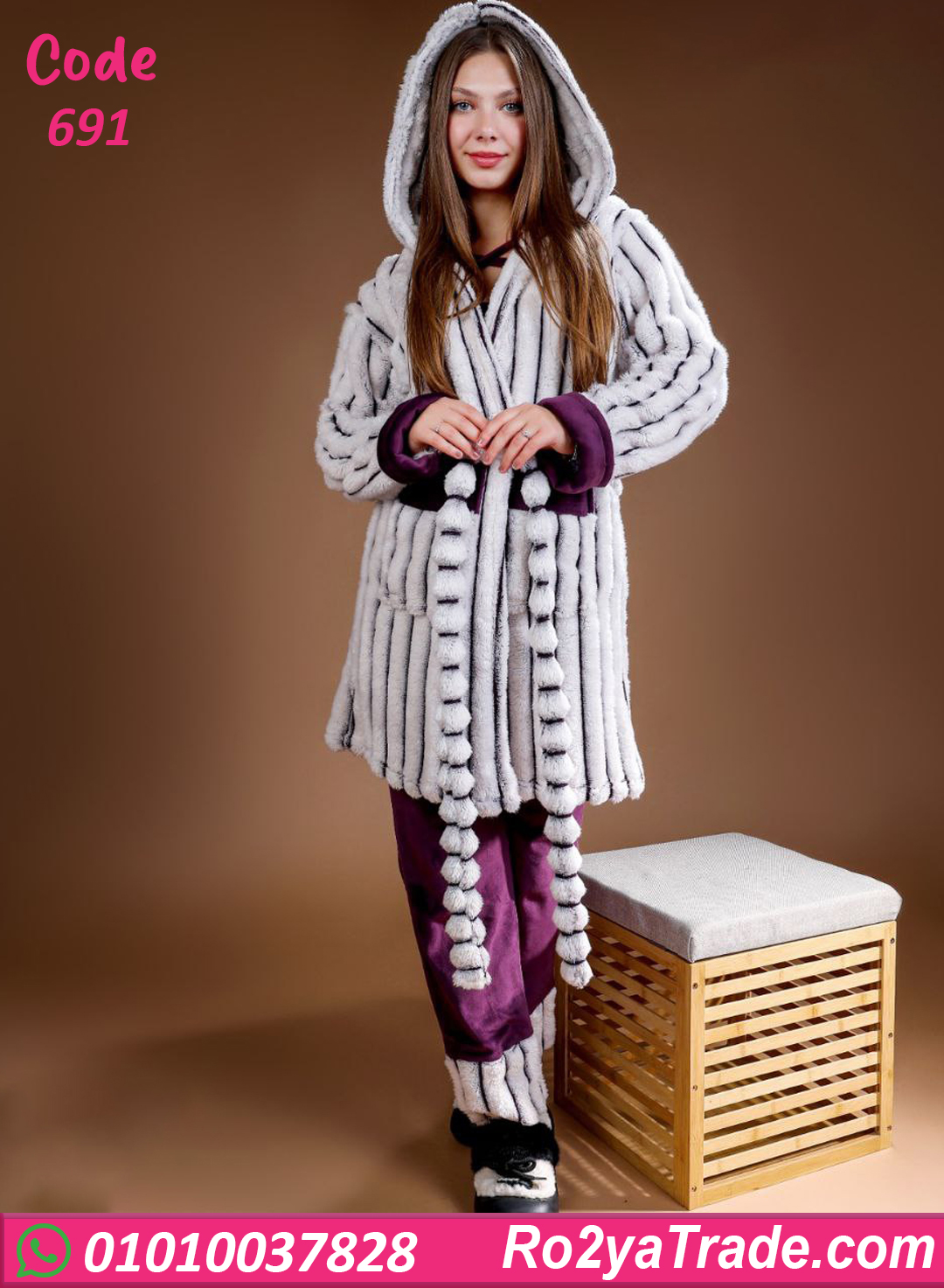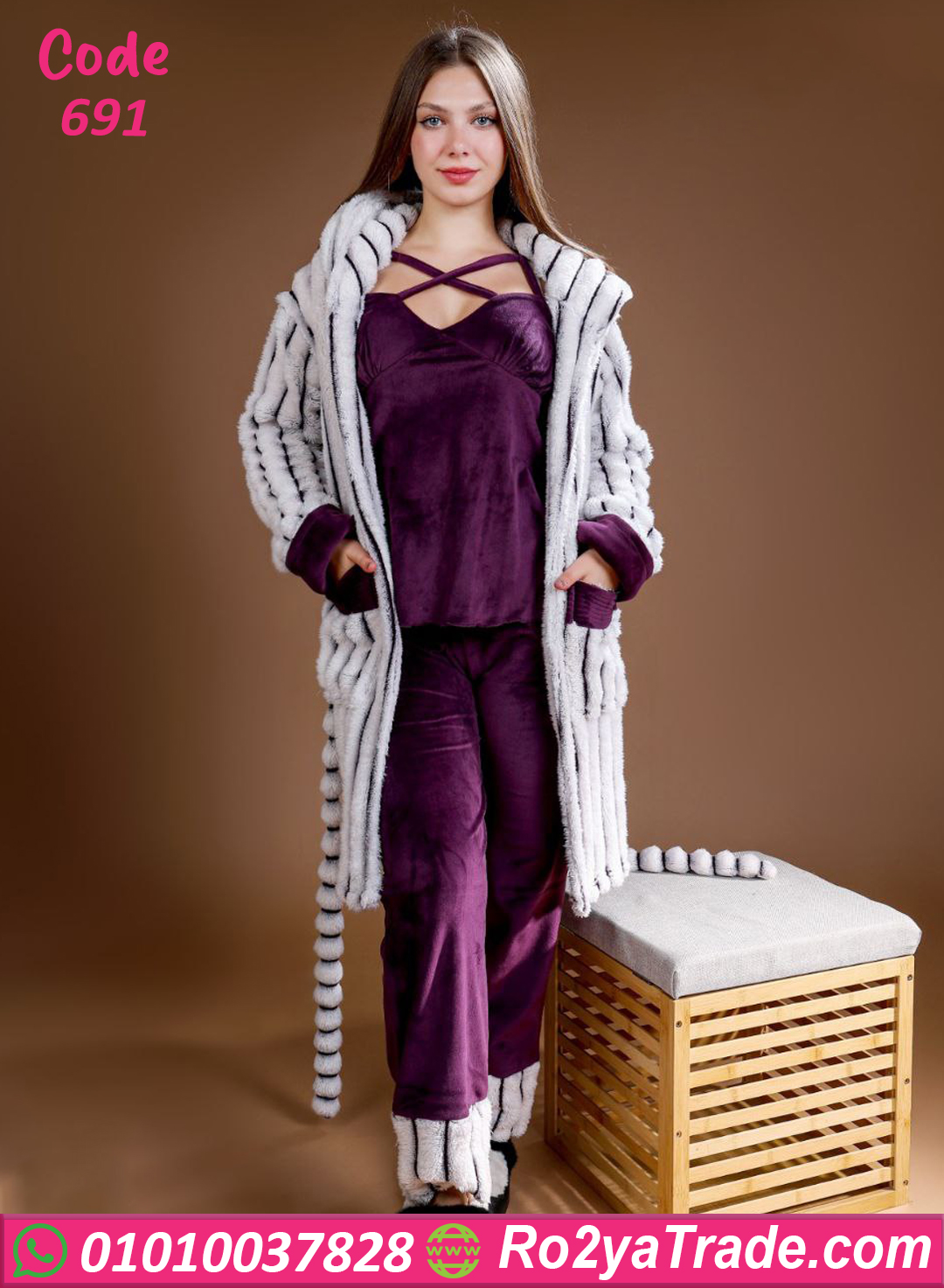 بيجامة حريمي شتوي 3 قطع بالروب – 691