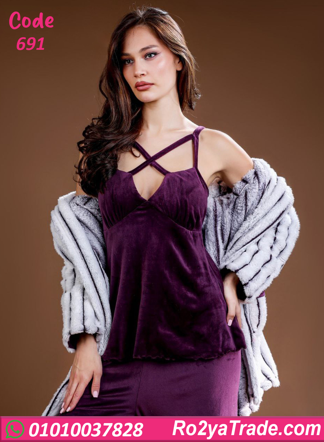 التصميم عملي وشيك، مناسب للبس في البيت أو الاسترخاء، وطقم أساسي لأي ست بتحب الطقم الكامل والأناقة مع الراحة. كود 691