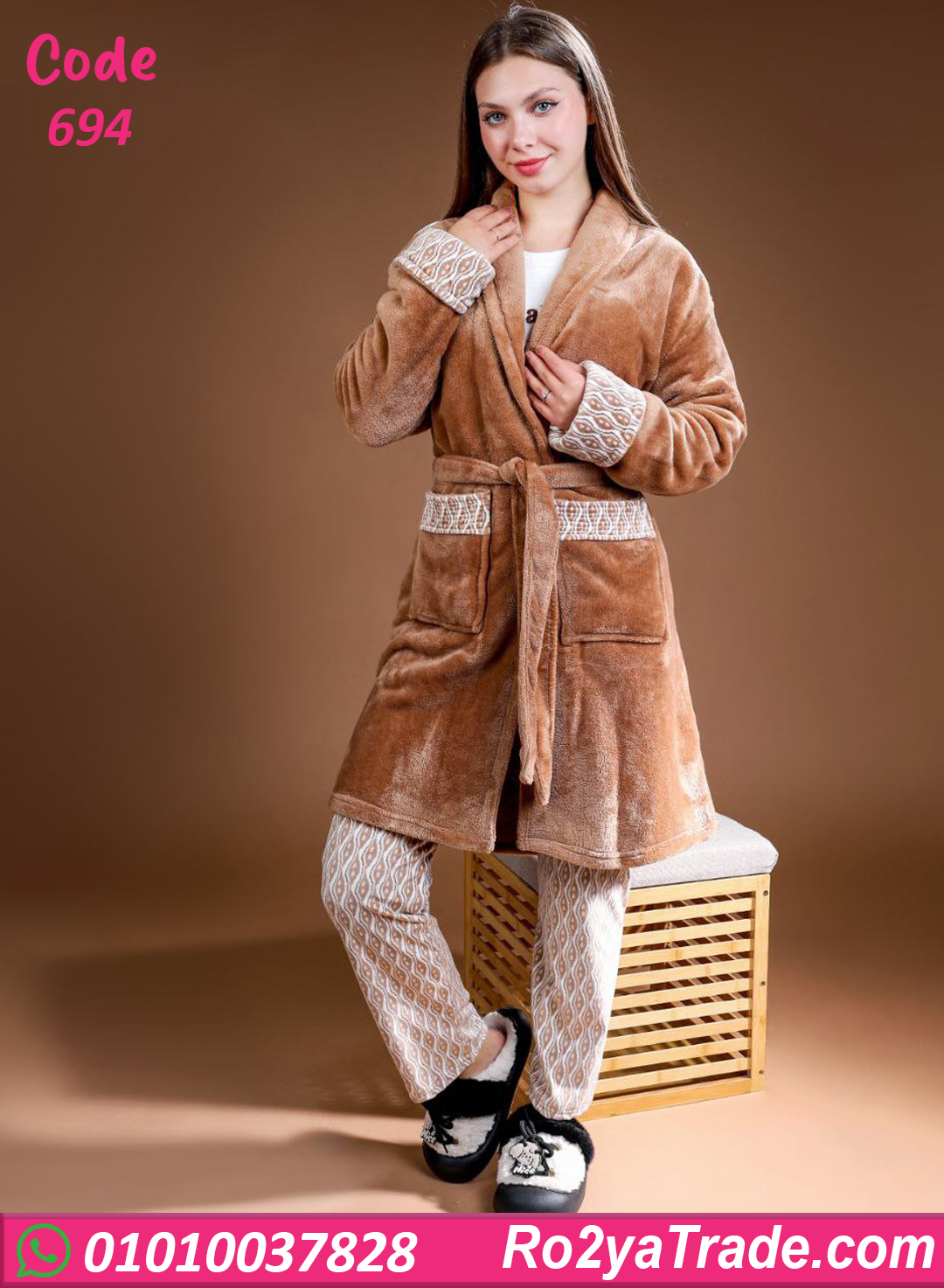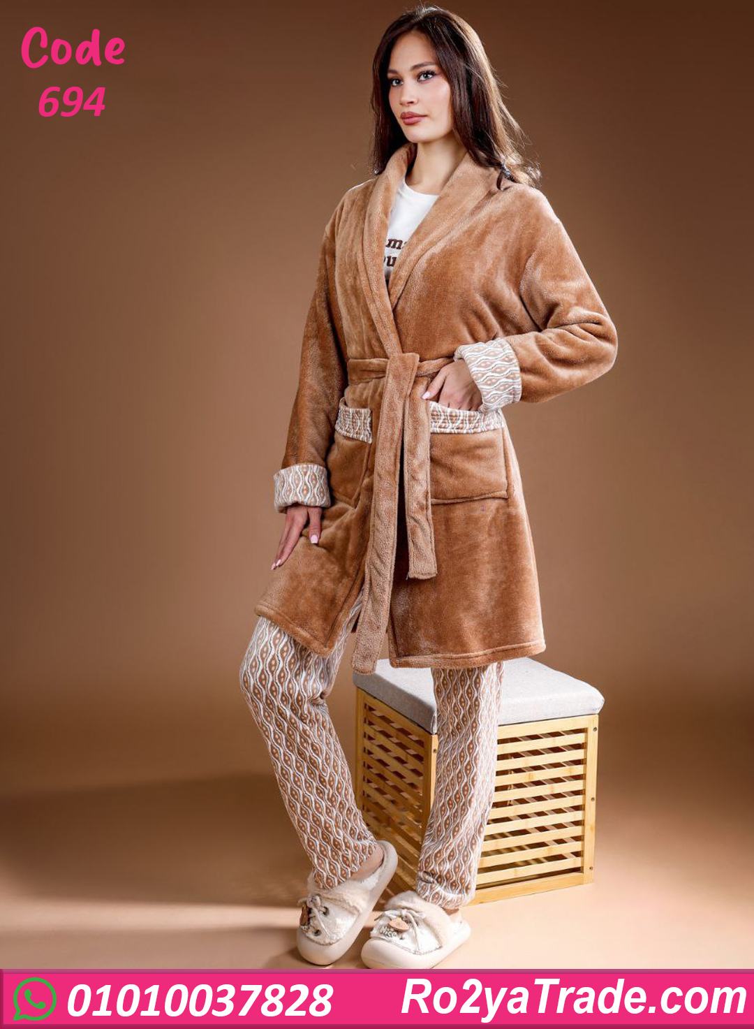 بيجامة حريمي شتوي 3 قطع بالروب – 694