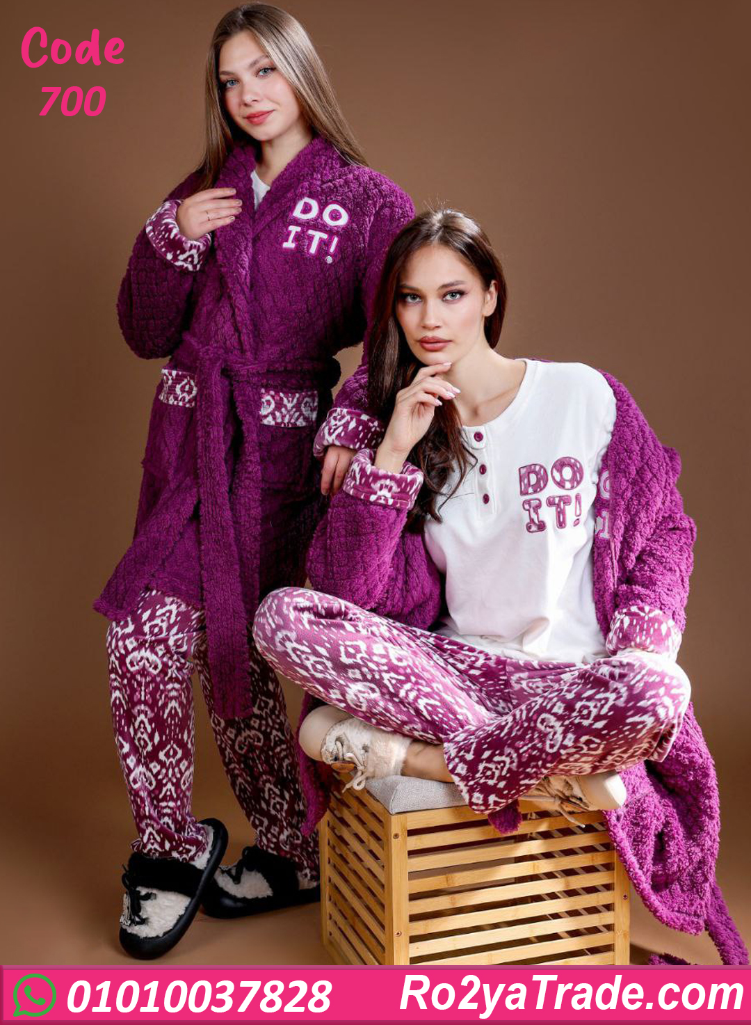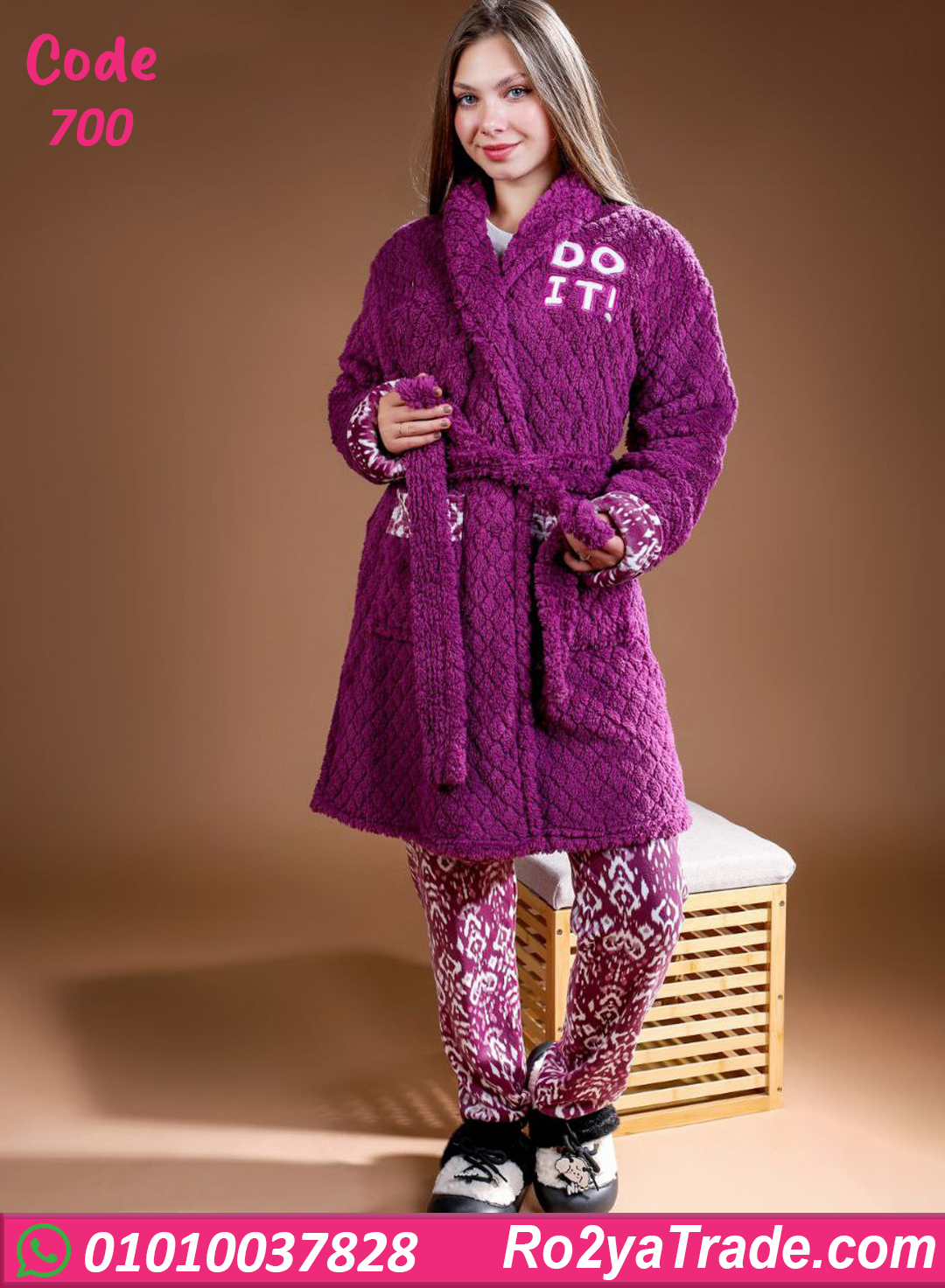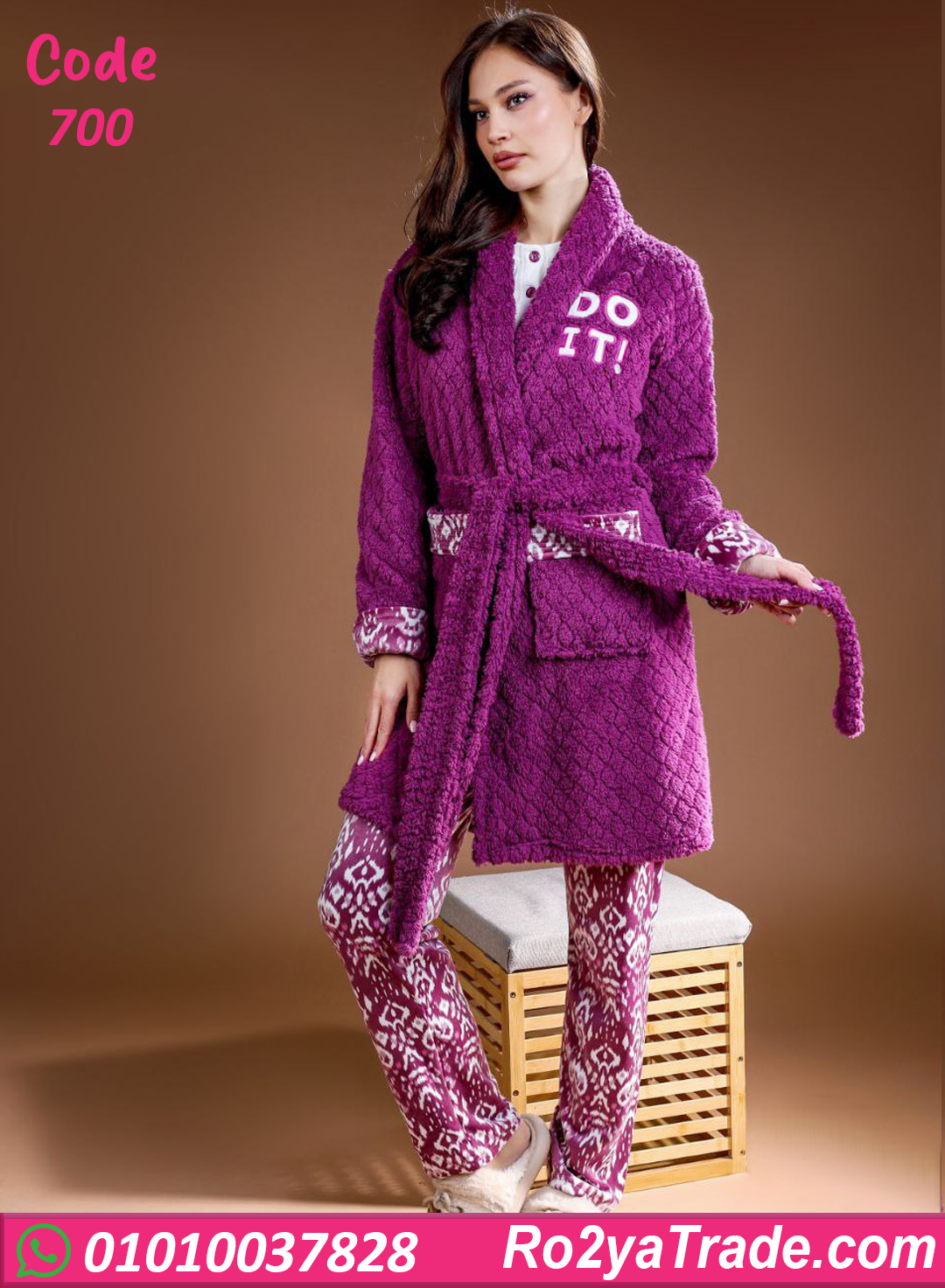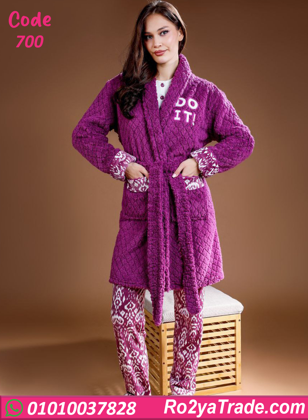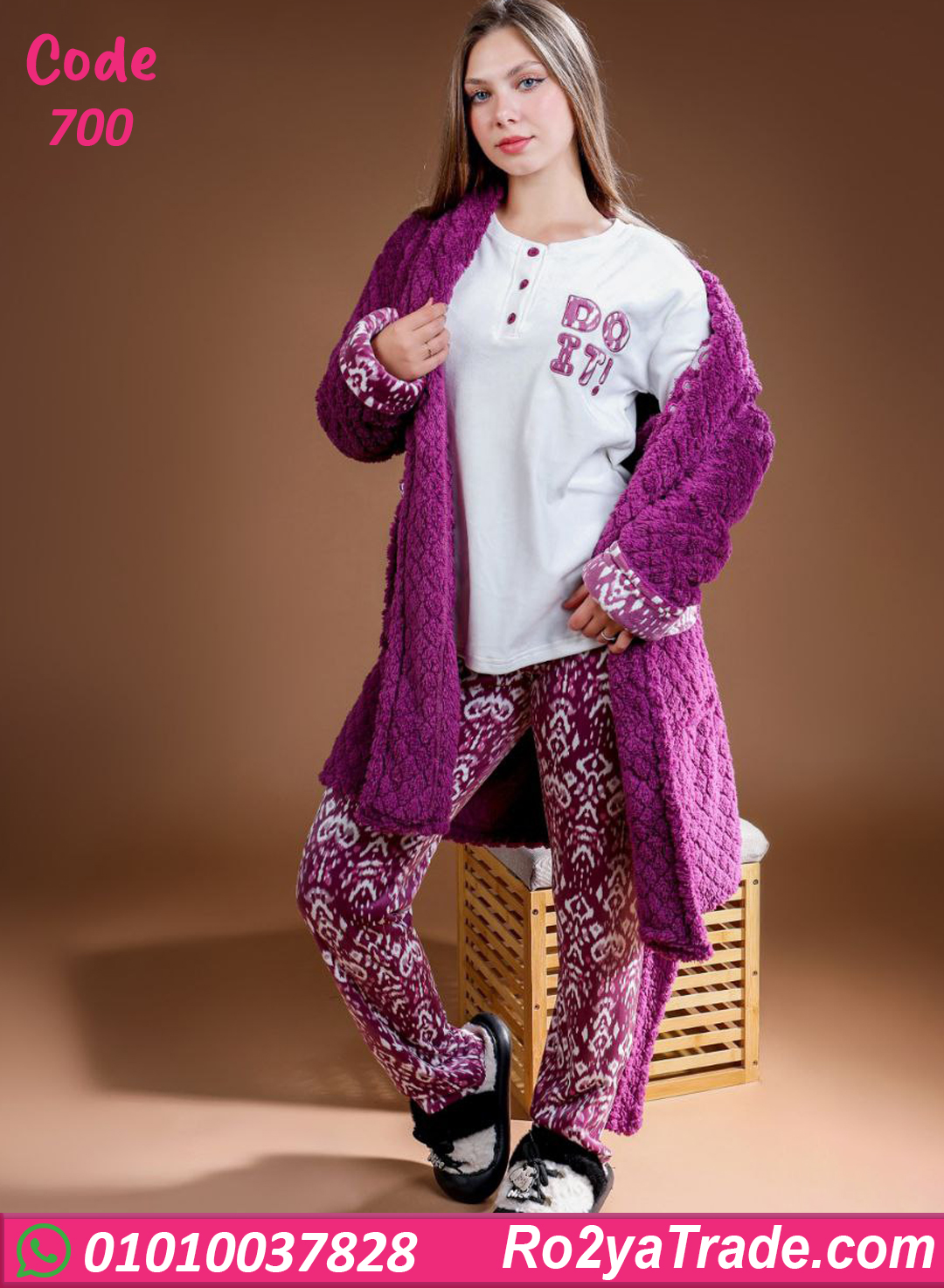 بيجامة حريمي شتوي 3 قطع بالروب – 700