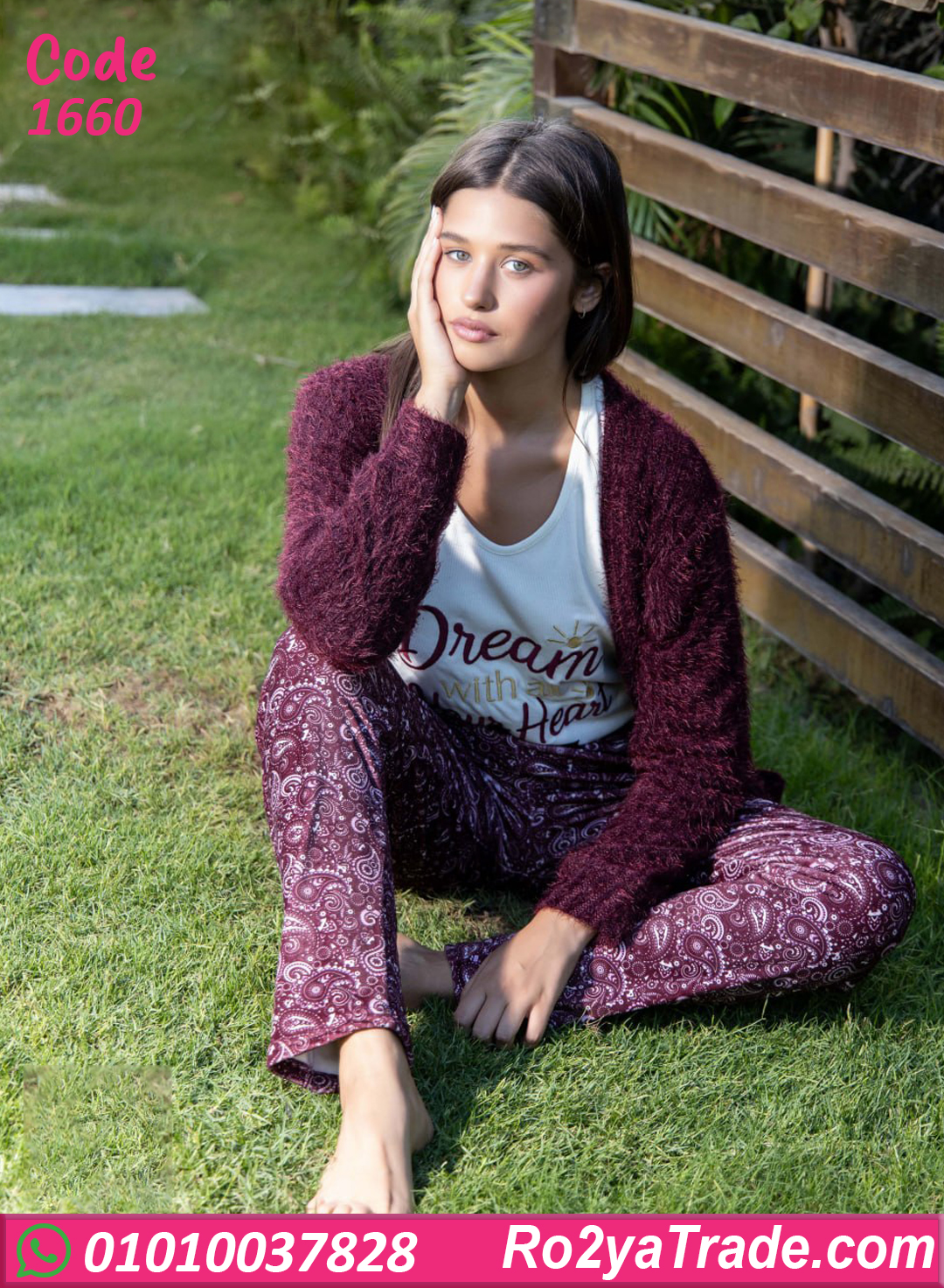 بيجامة حريمي شتوي 3 قطع – كود 1660
