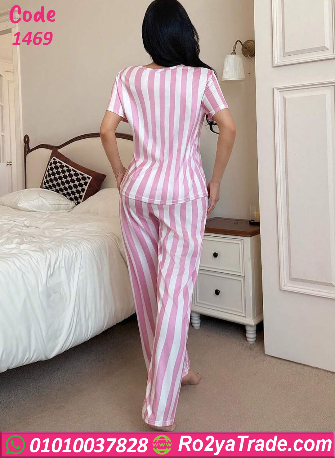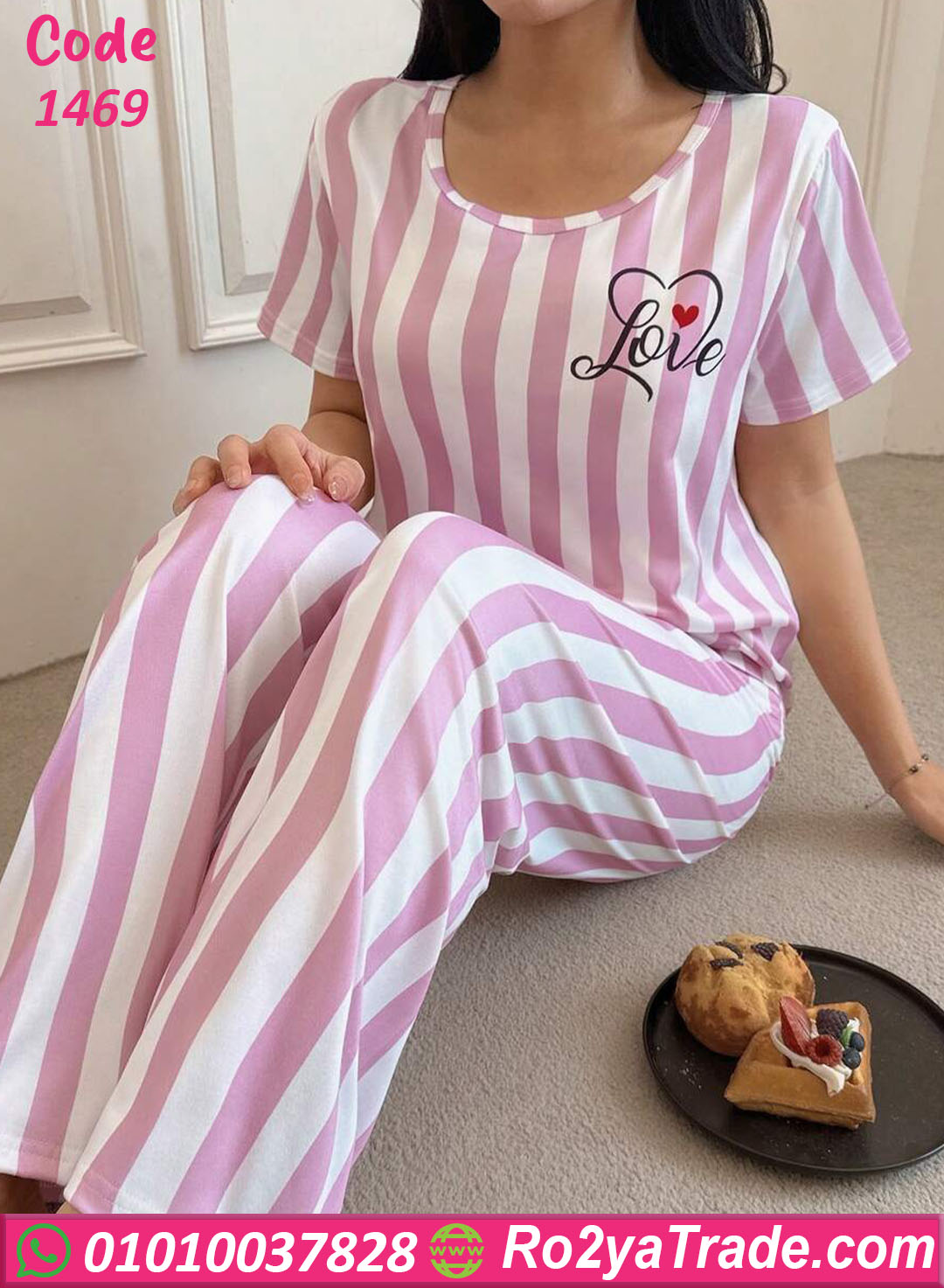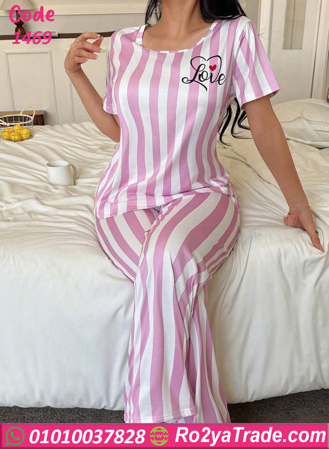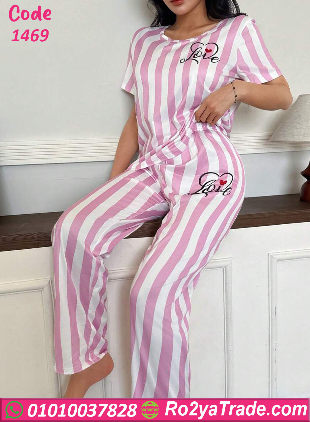 لو بتدوري على بيجامة حريمي صيفي مريحة وشيك، موديل بيجامة مخططة Love – كود 1469 هيكون اختيار مثالي ليكي.