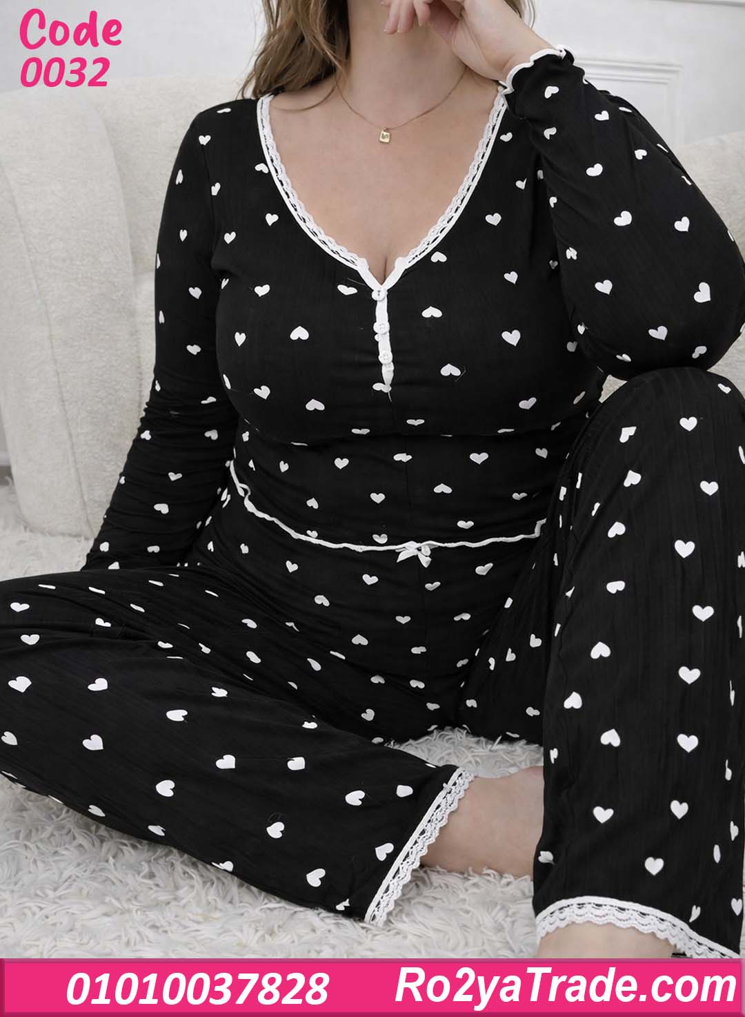 بيجامة حريمي قطن قلوب بيج سايز – كود 0032