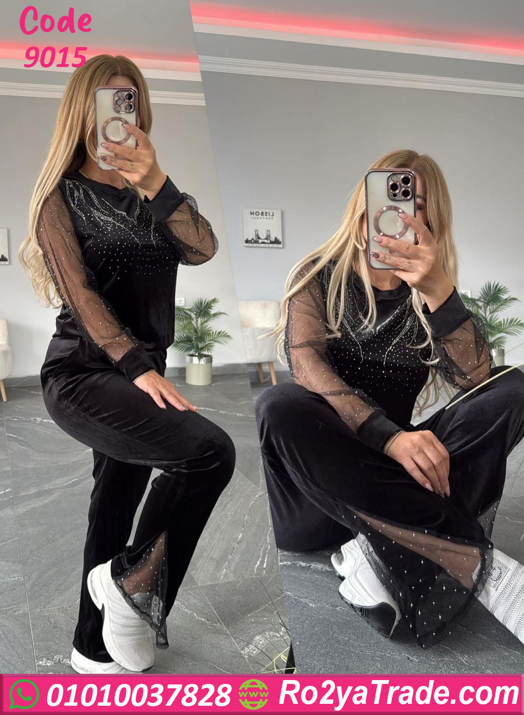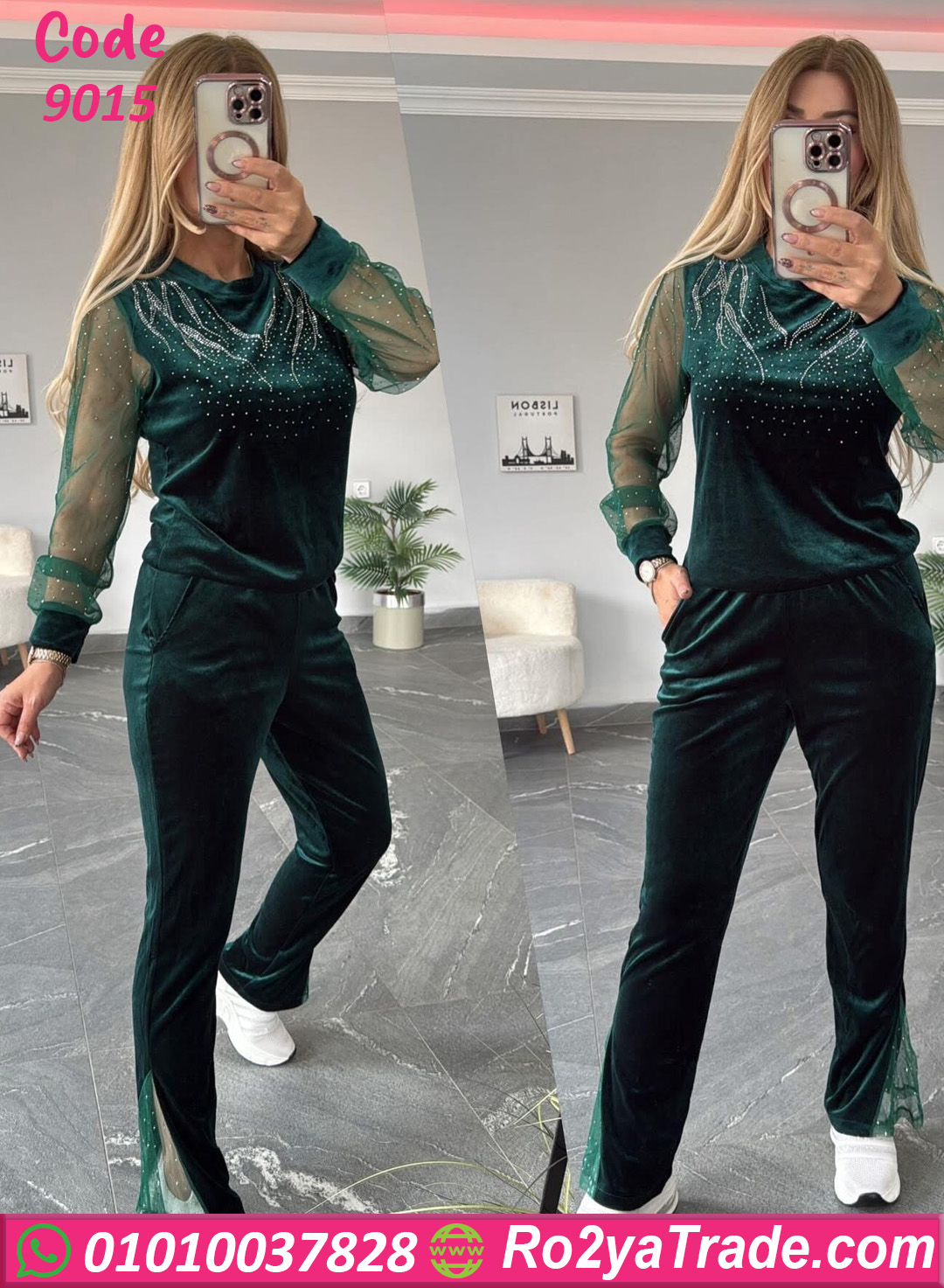 بيجامة حريمي كود 9015 من ماركة Queen بتصميم راقي يجمع بين الأناقة والراحة. تتكون البيجامة من قطعتين (بلوزة وبنطلون) مصنوعة من خامة القطيفة الناعمة التي تمنح إحساس بالدفء في الأجواء الشتوية.