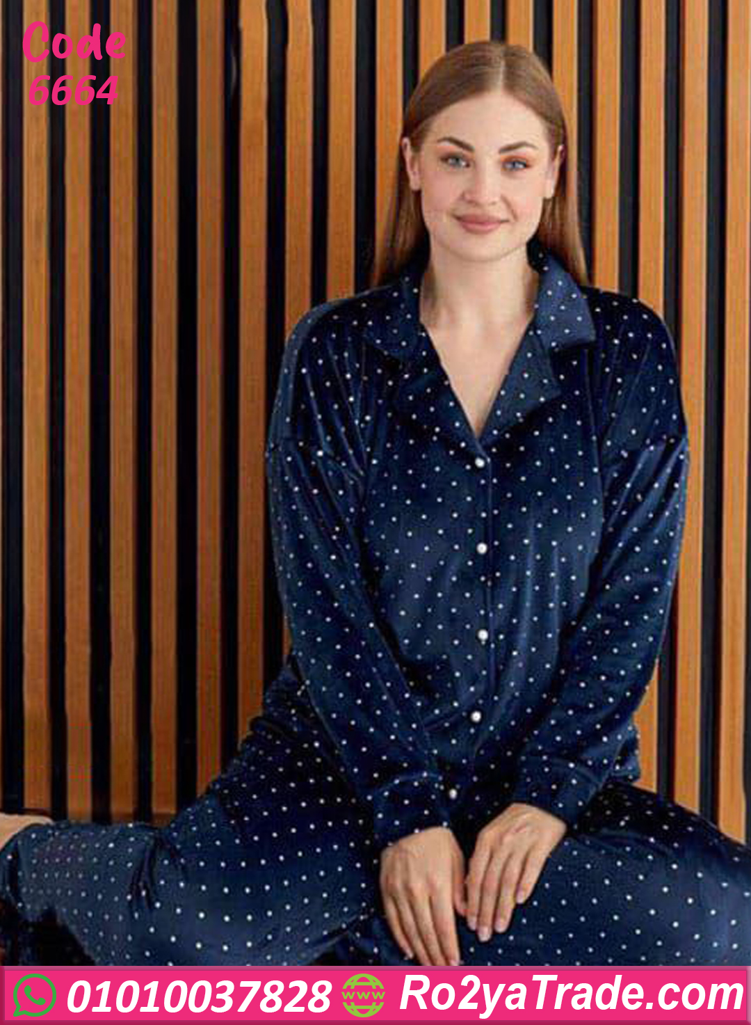 بيجامة حريمي قطيفة منقطة – كود 6664
