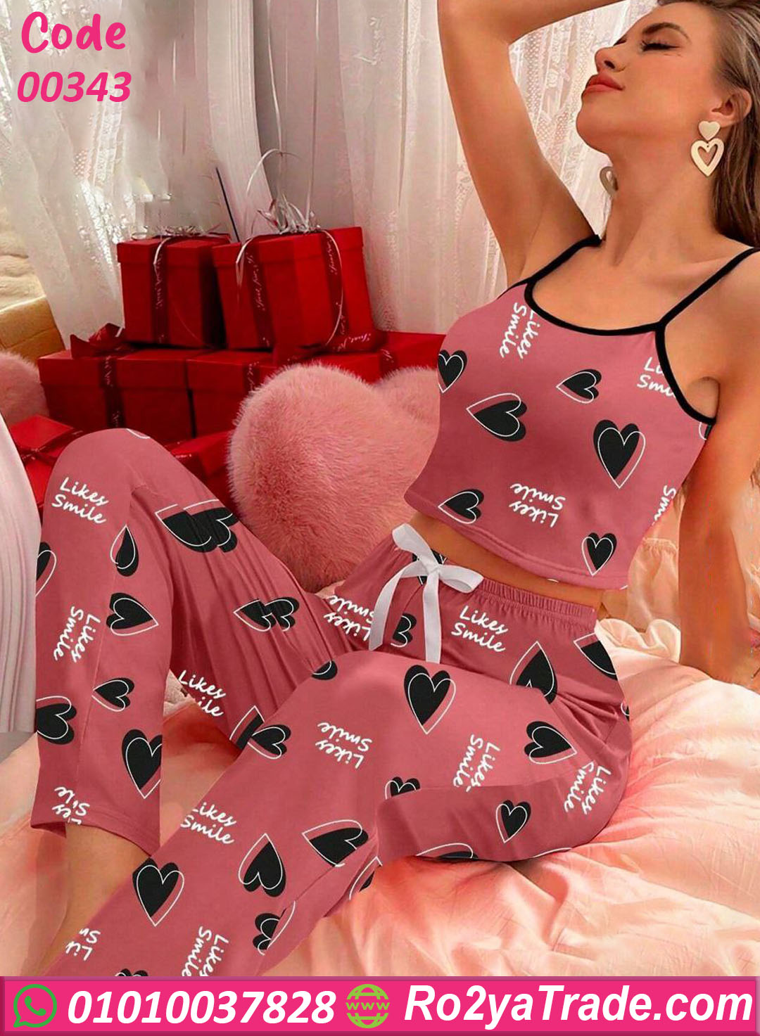 بيجامة حريمي قلوب – كود 00343