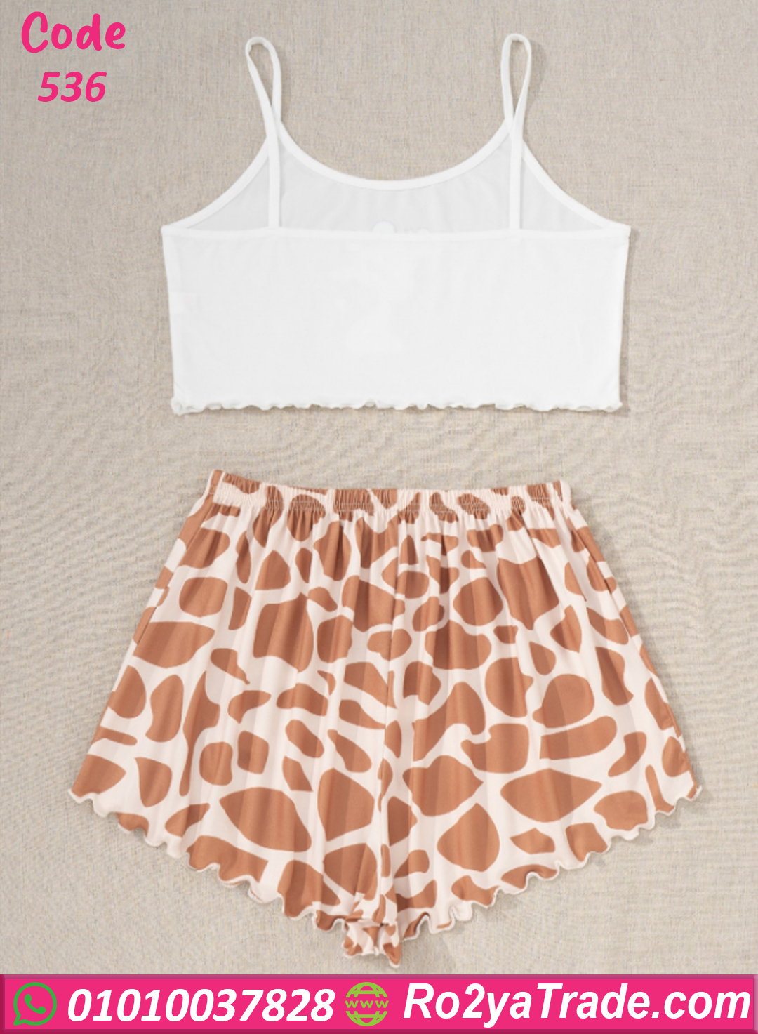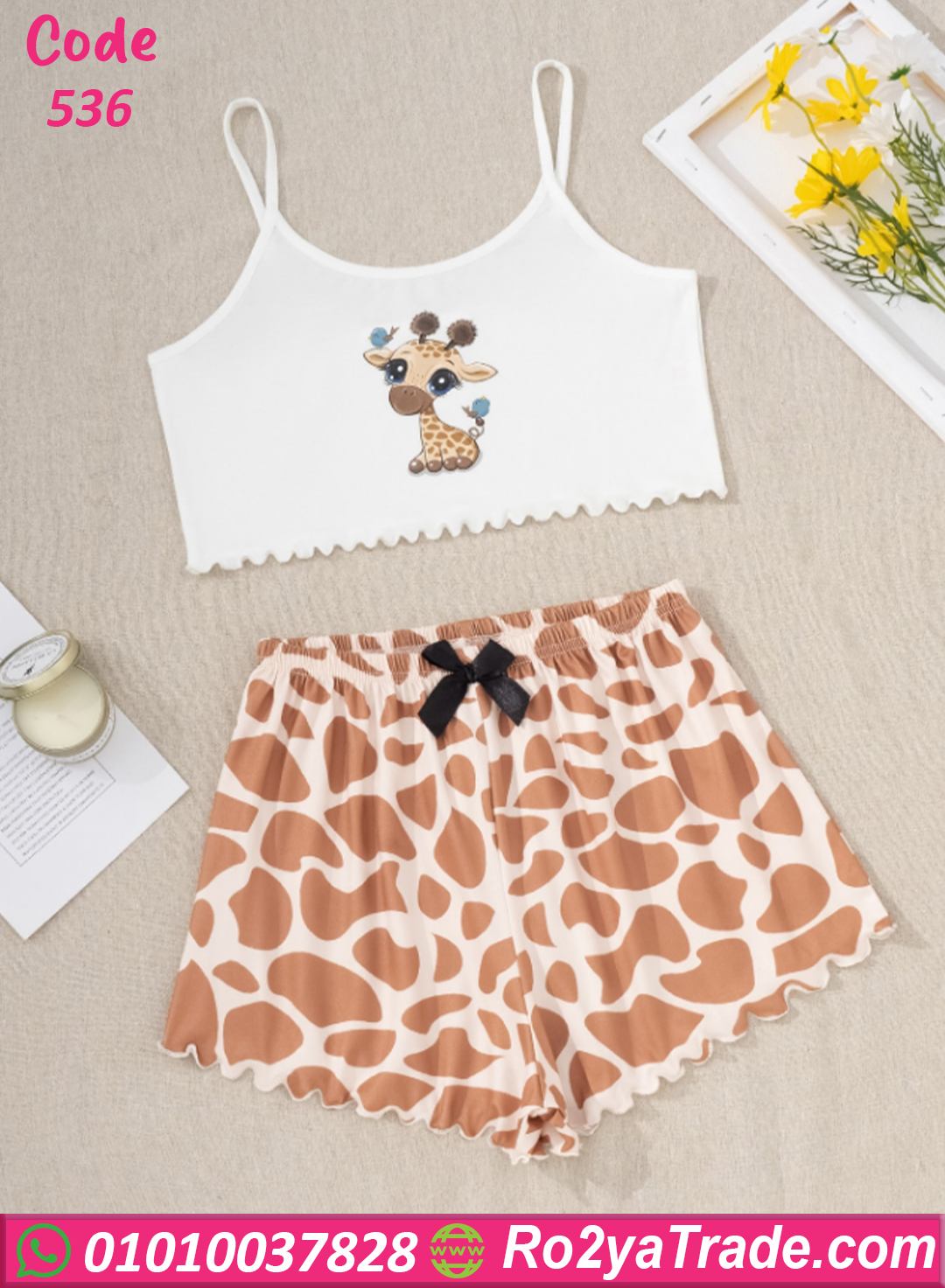 بيجامة حريمي هوت شورت صيفي بطبعة زرافة كيوت – كود 536