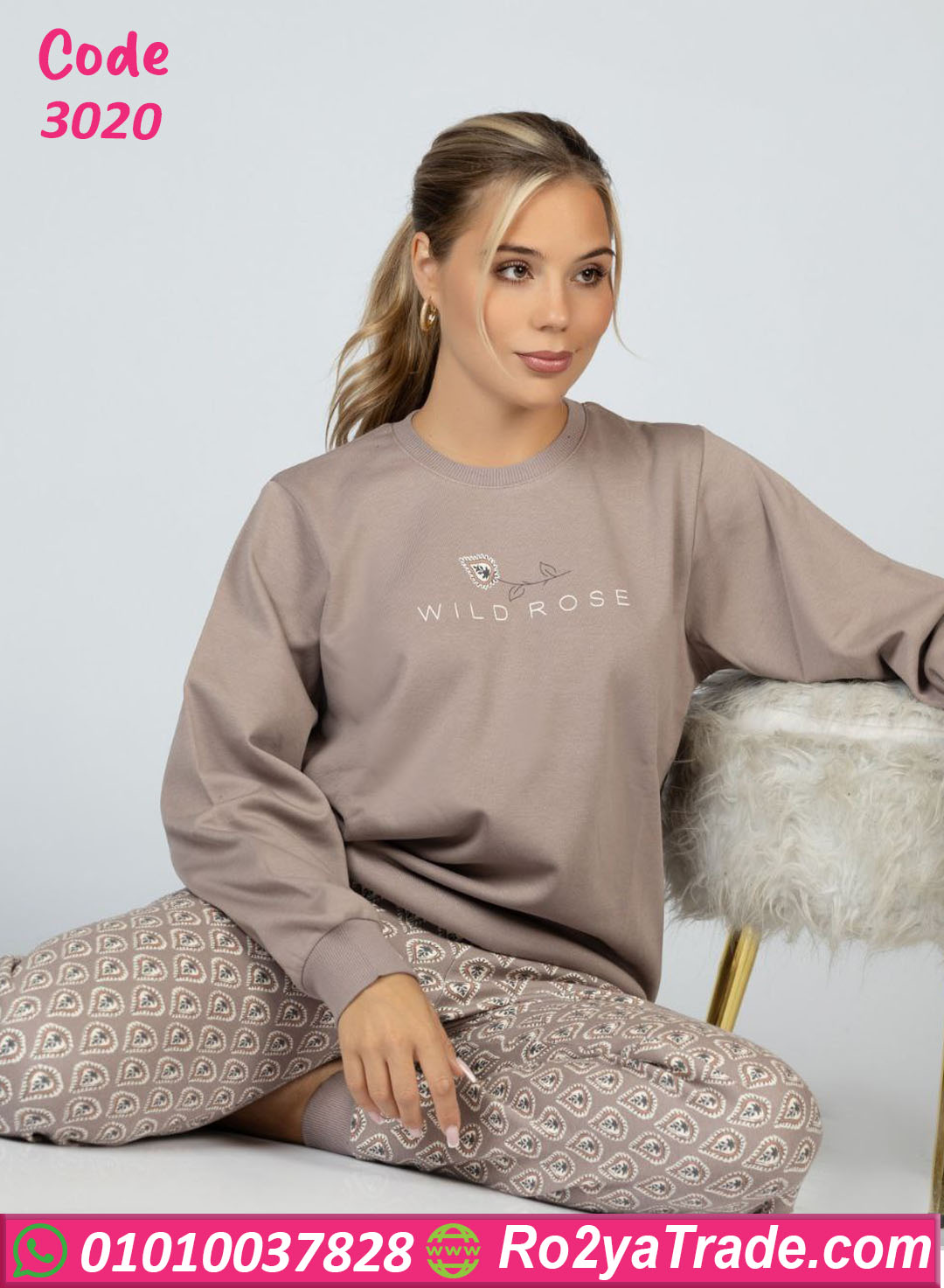 بيجامة شتوي حريمي ناعمة جدًا بخامة دافئة مريحة، بلوزة بتصميم مطبوع “Wild Rose” وبنطلون منقوش شيك جدًا 💕