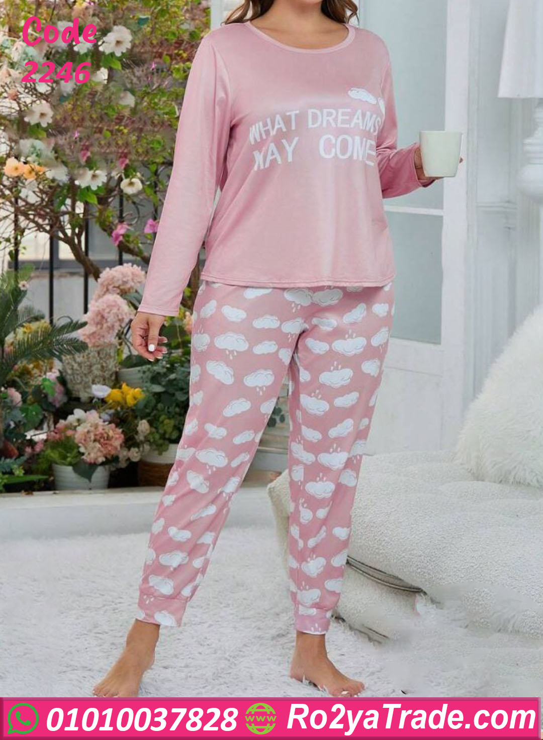 التصميم باللون البينك المميز مع نقشة السحاب الأبيض بيخليها شكلها بناتي جدًا وهادي. الخامة طرية وناعمة على الجسم، مش بتكهرب ولا بتكشّ مع الغسيل.