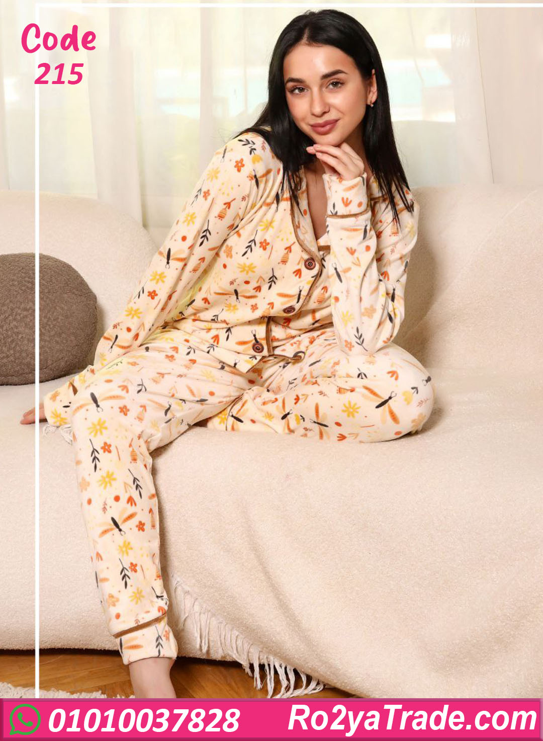 بيجامة شتوي حريمي كود 215 من الموديلات العملية اللي بتجمع بين الدفا والراحة مع شكل أنيق وبسيط.
