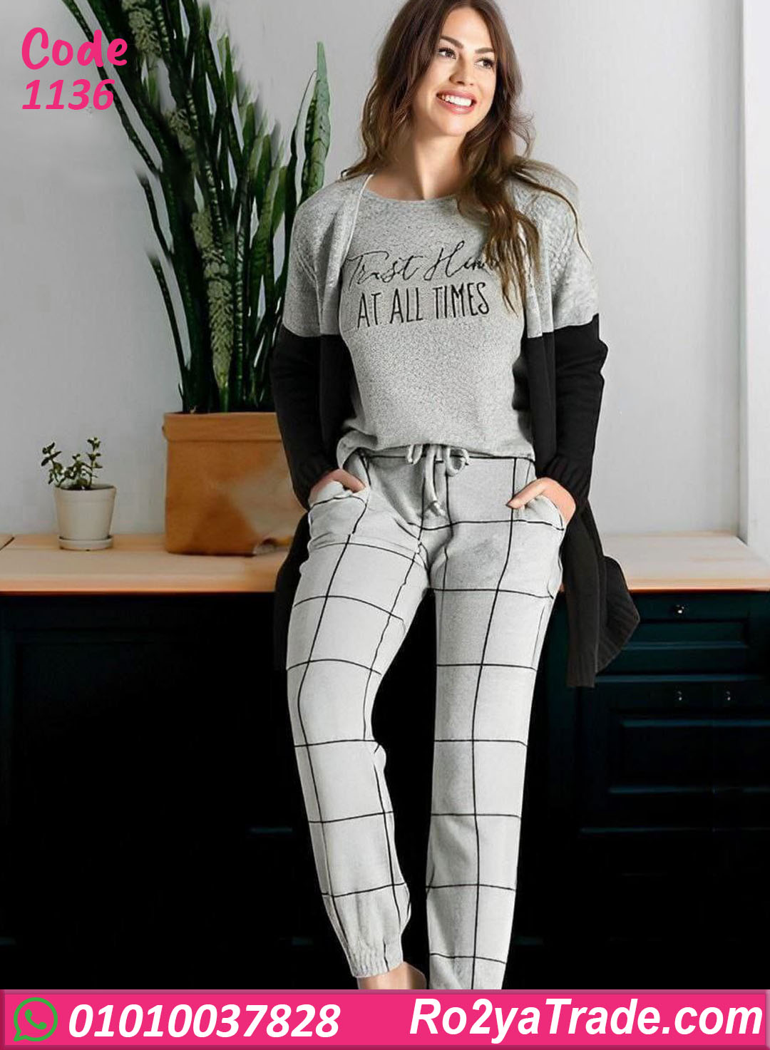 بيجامة شتوي حريمي بخامة دافية وناعمة على الجسم، بتوفر راحة عالية في اللبس طوال اليوم. الطقم مكوّن من بلوزة بتصميم بسيط أنيق وبنطلون بنقشة كاروهات عصرية مع رباط وسط عملي. مناسبة للنوم أو اللبس البيتي اليومي، وتدي إحساس بالدفا من غير تقيل أو كتمة.