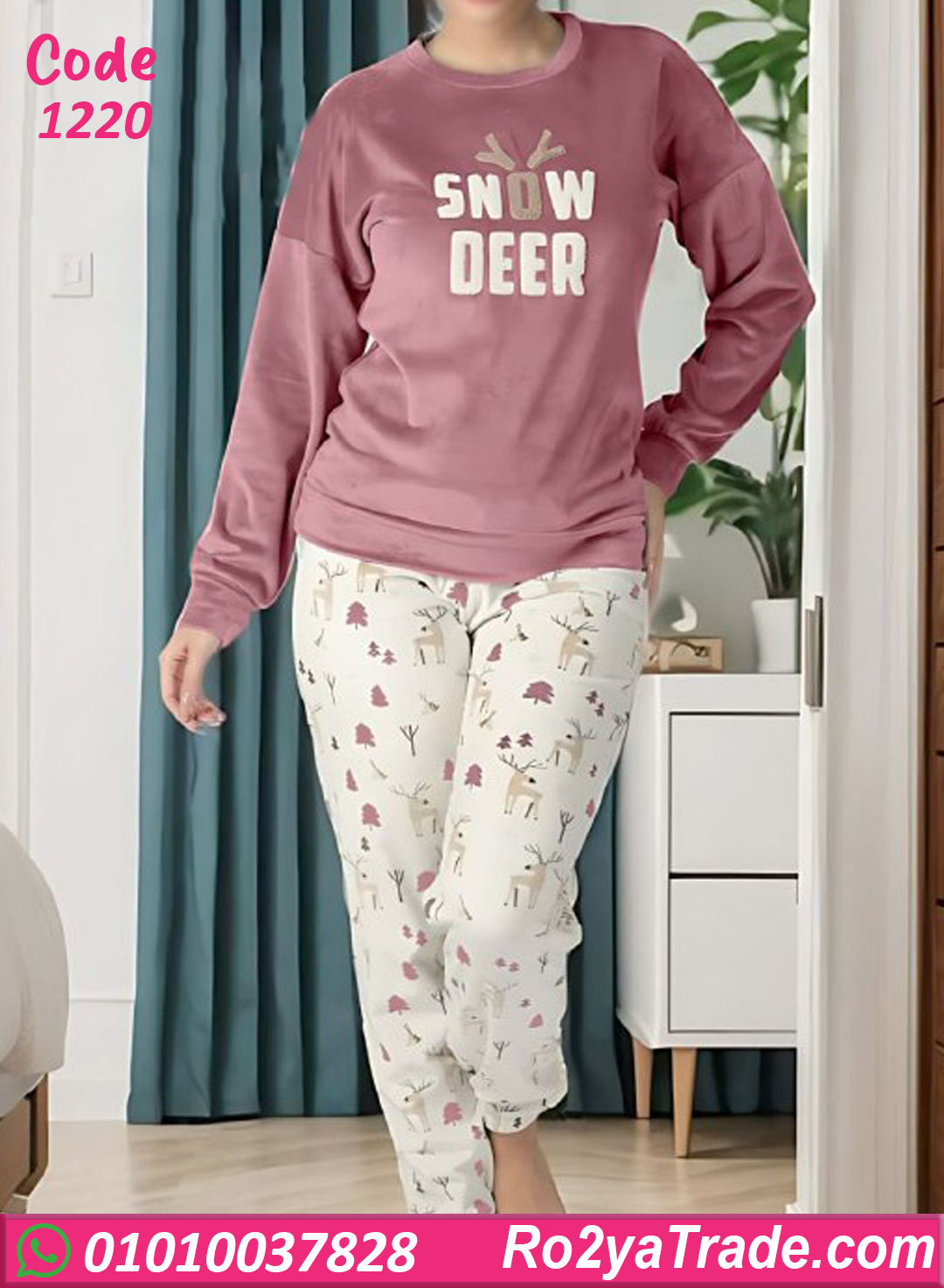 بيجامة شتوي شيك ومريحة بطبعة Snow Deer، تصميم عملي يناسب اللبس اليومي في البيت، خامة ناعمة ودفاية بتدي إحساس راحة طول اليوم.