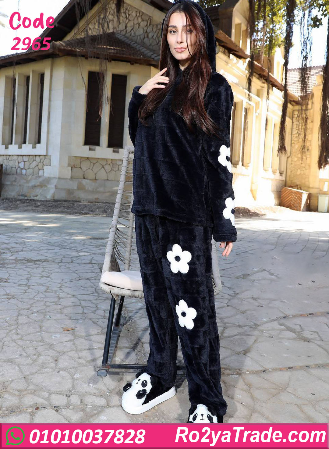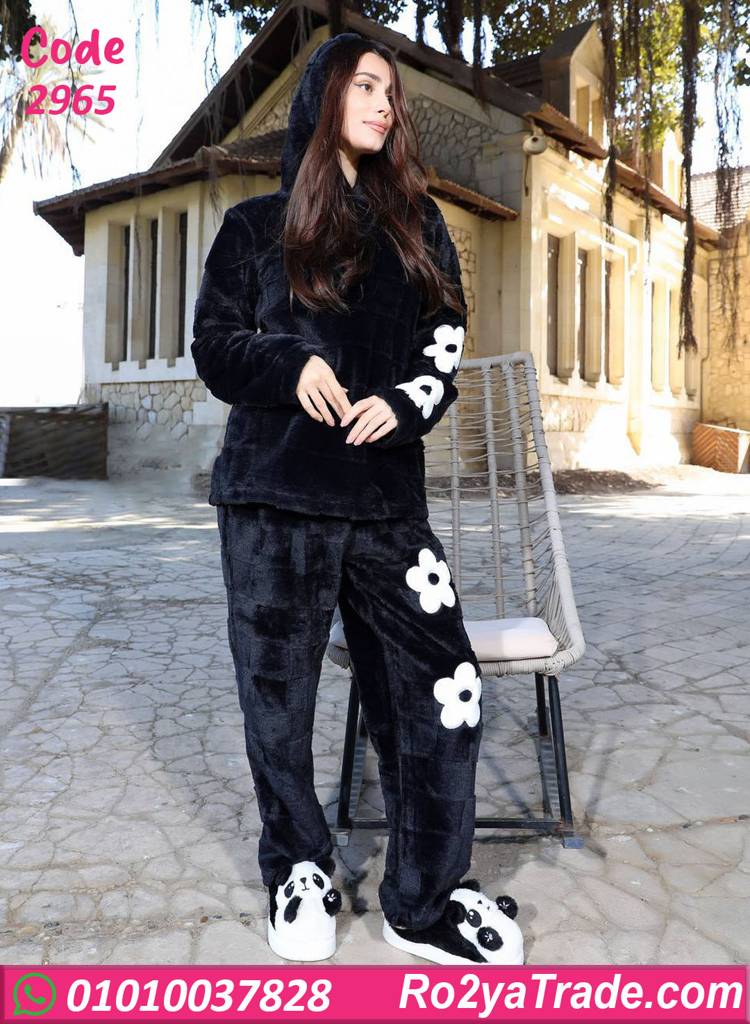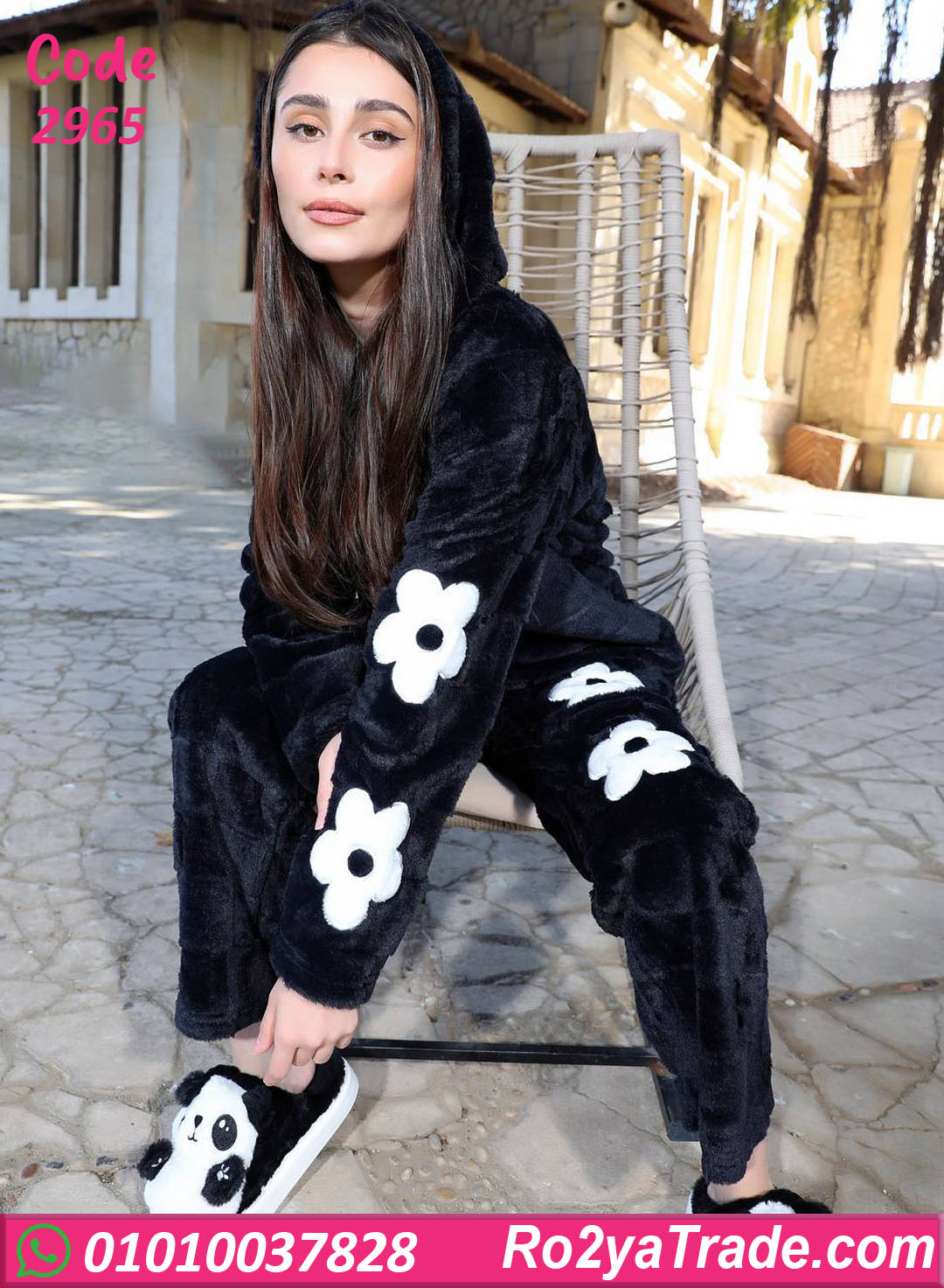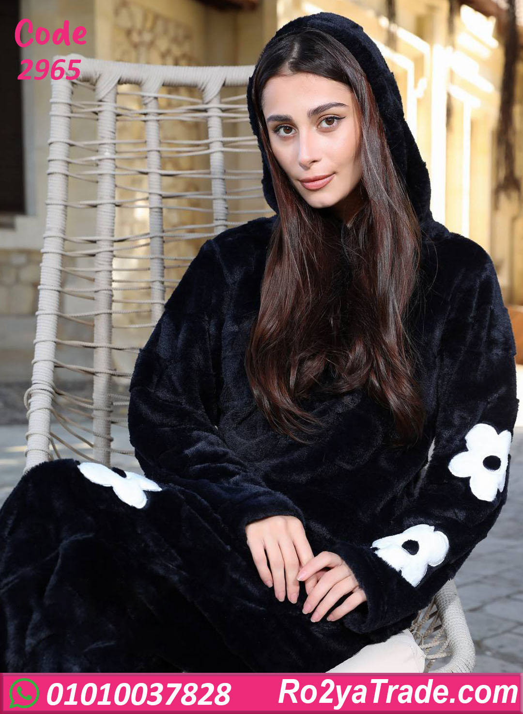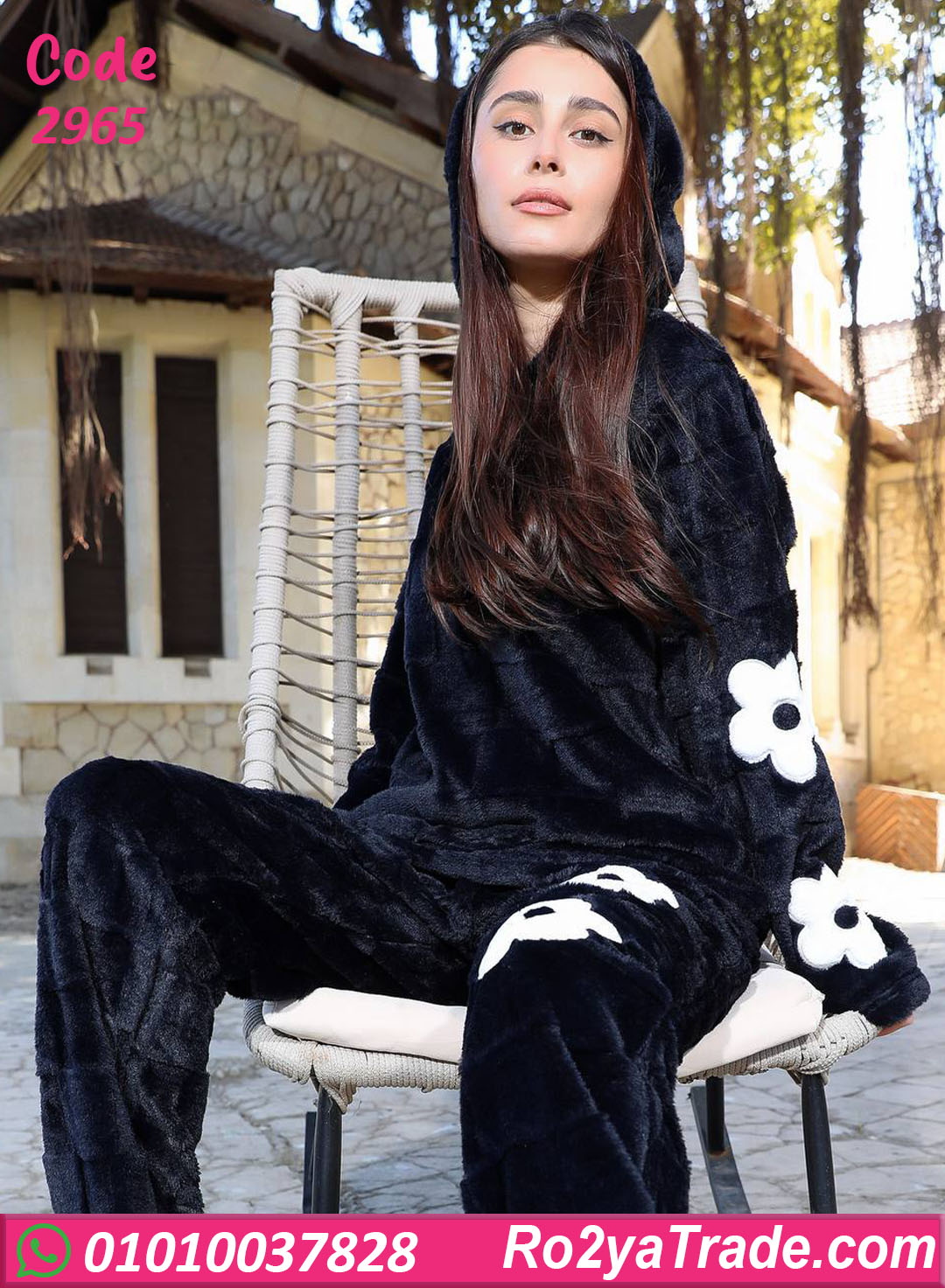 بيجامة شتوي حريمي موديل 2965 اختيار مثالي لأيام الشتاء الباردة. التصميم مكوّن من بلوزة بقبعة وبنطلون، خامة قطيفة ناعمة تقيلة بتوفّر دفا ممتاز مع تفاصيل ورود بارزة بتدي شكل أنيق ومختلف. الطقم مريح جدًا وسهل اللبس، مناسب للاستخدام اليومي داخل البيت، وبيجمع بين الشياكة والعملية في نفس الوقت.