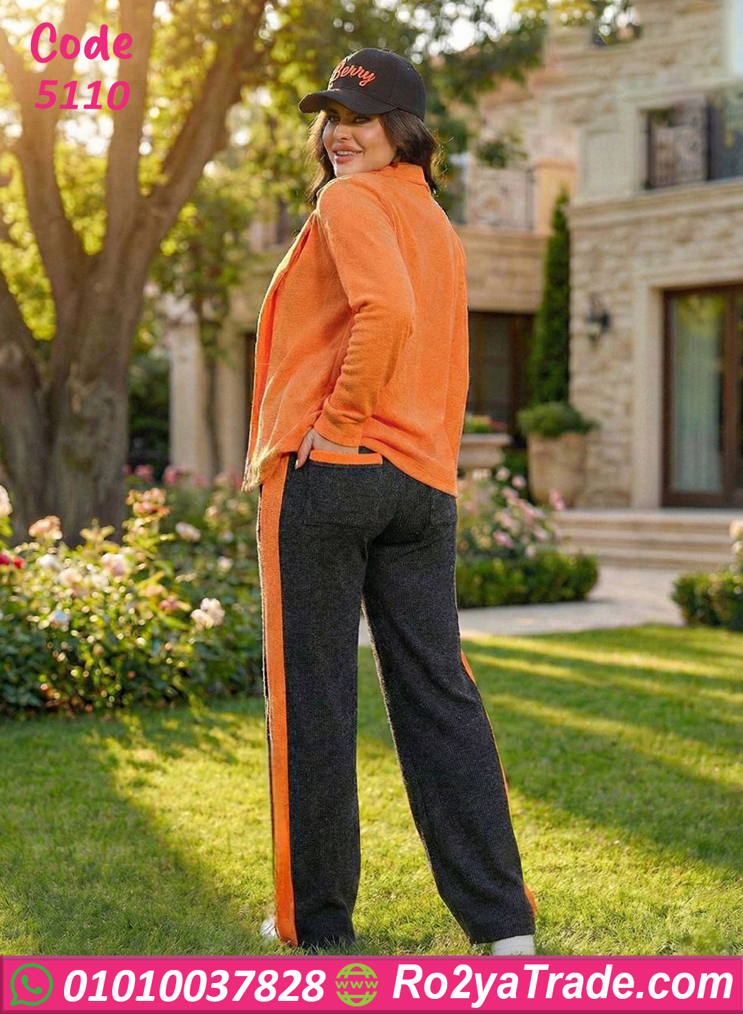بيجامة شتوي حريمي بتصميم سبور أنيق يناسب الخروجات الخفيفة وكمان اللبس البيتي الشيك.