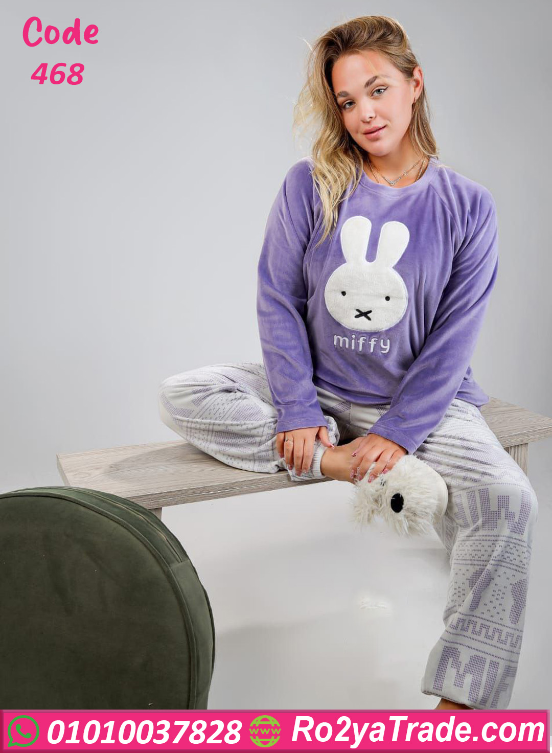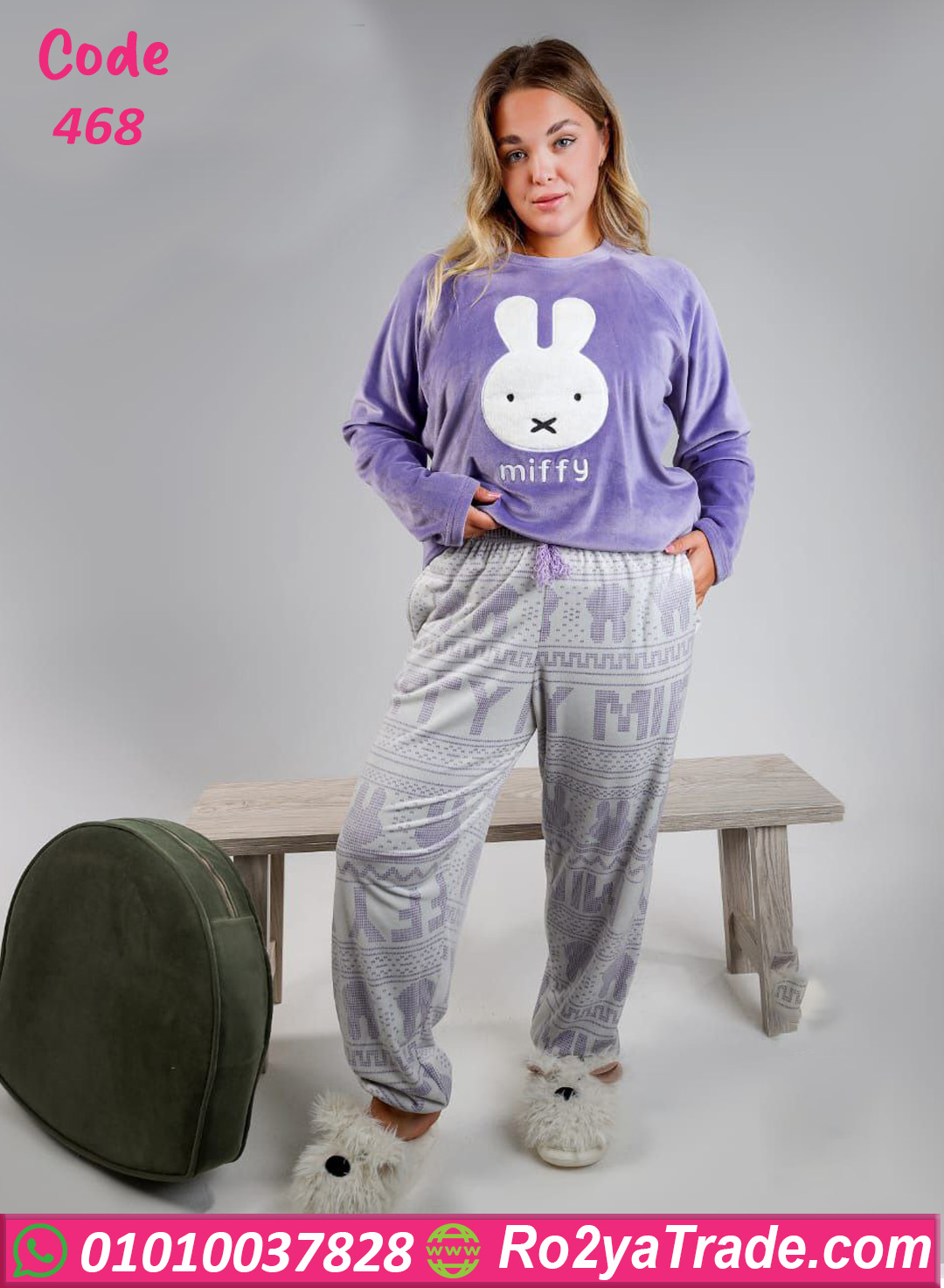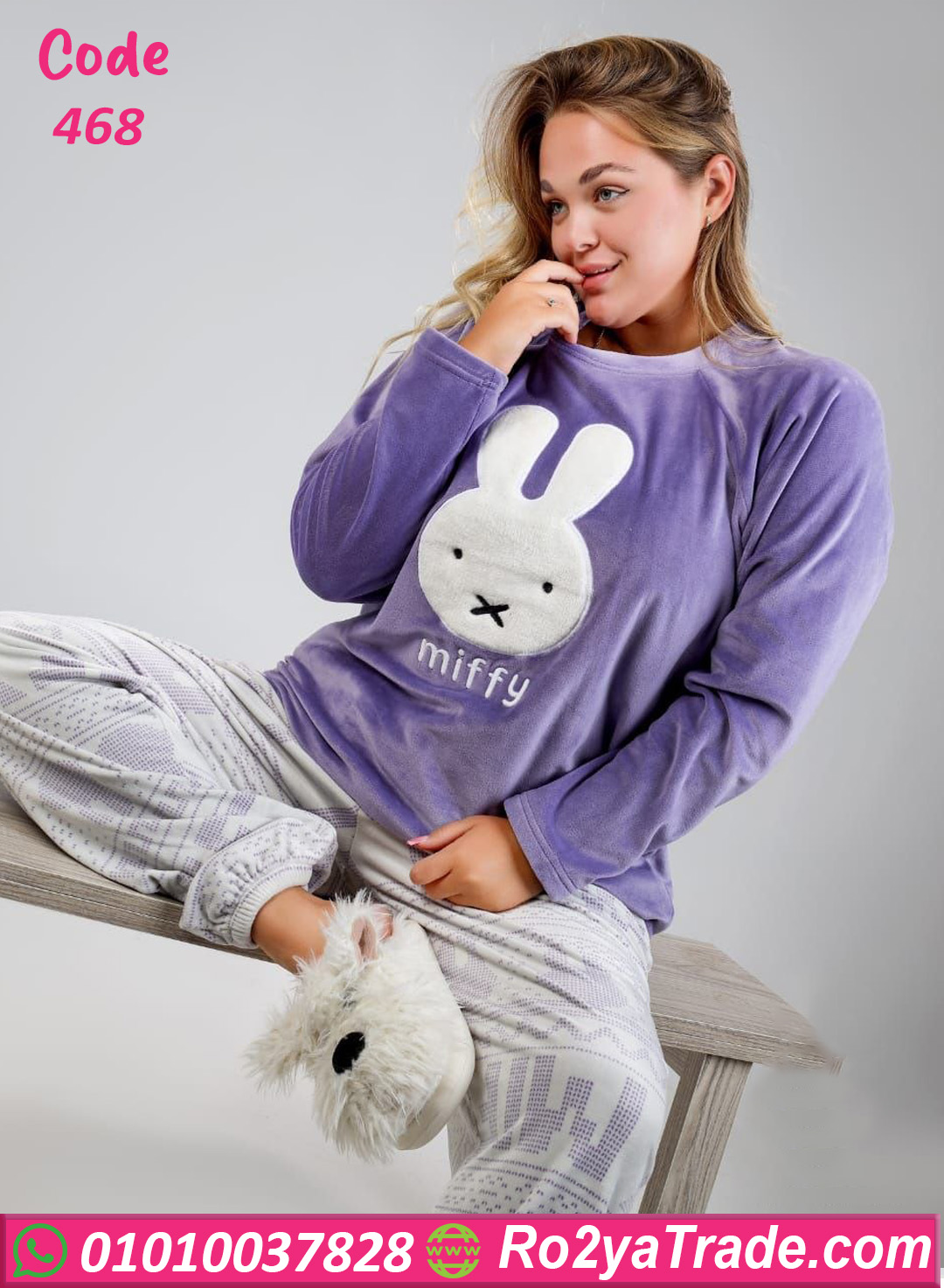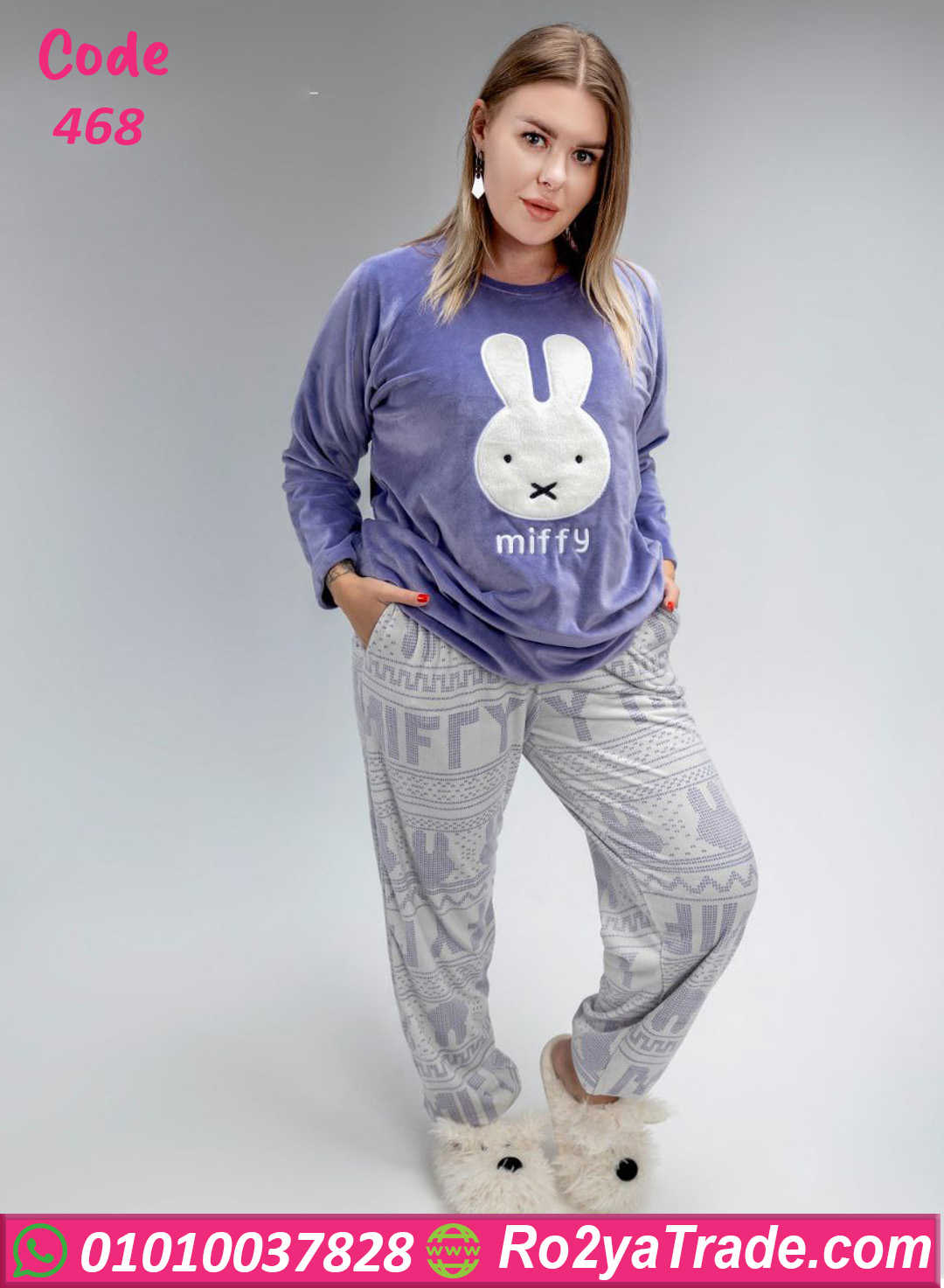 بيجامة حريمي شتوي بيج سايز برسمة ميفي (Miffy)، خامة ناعمة ودافية جدا،