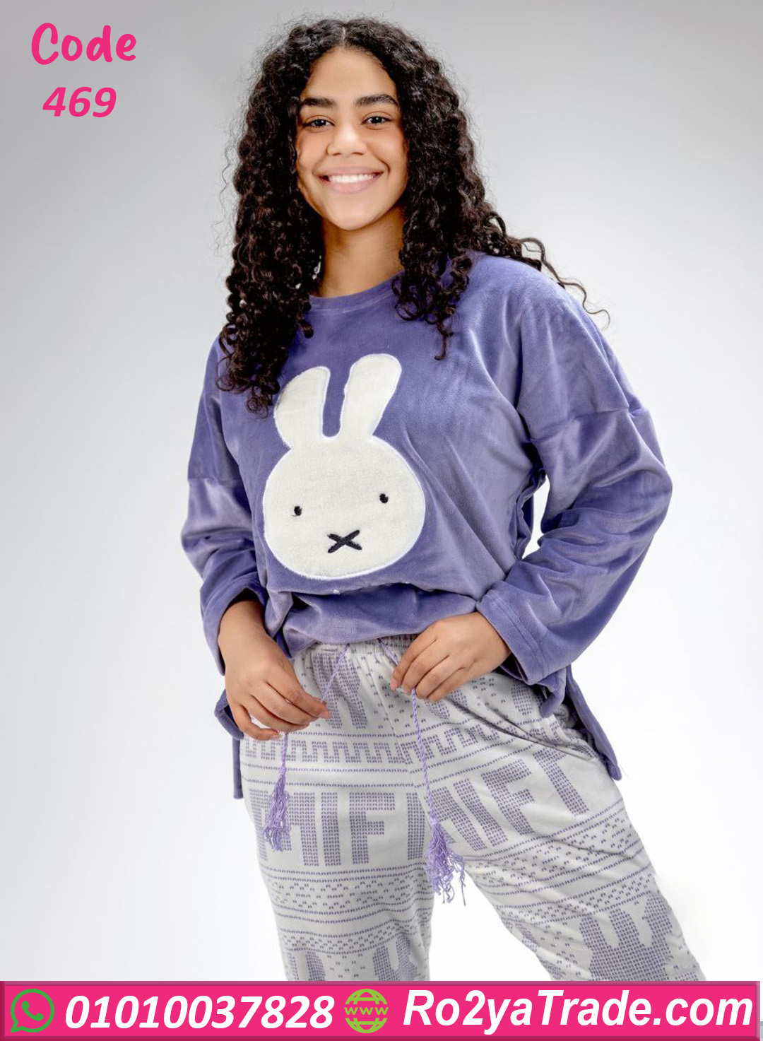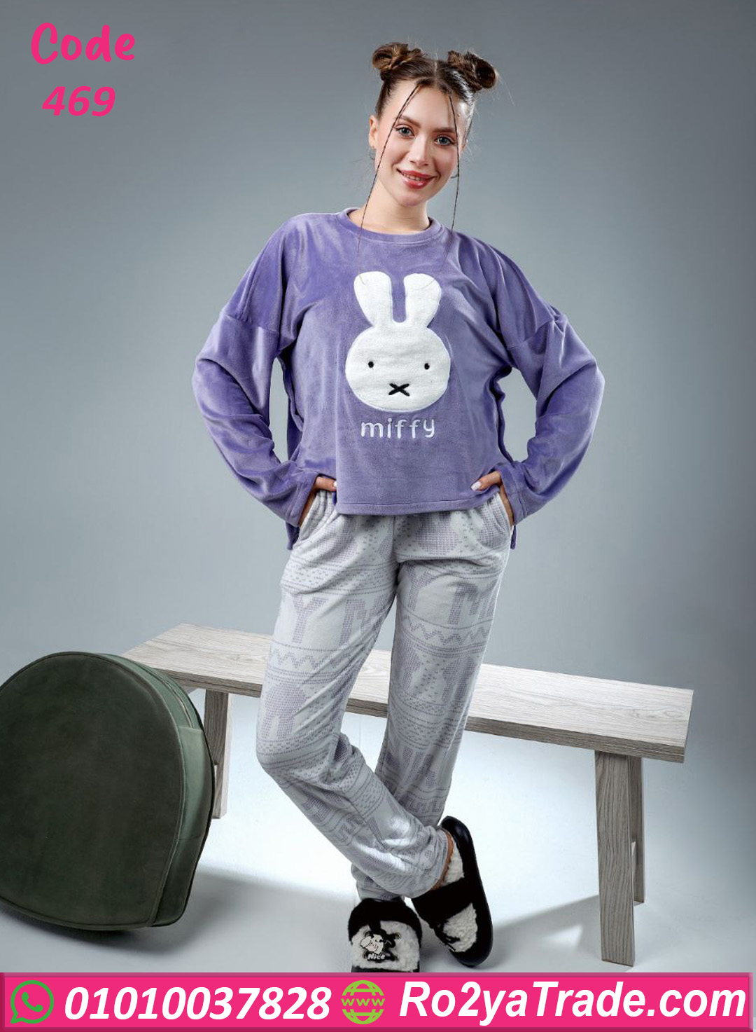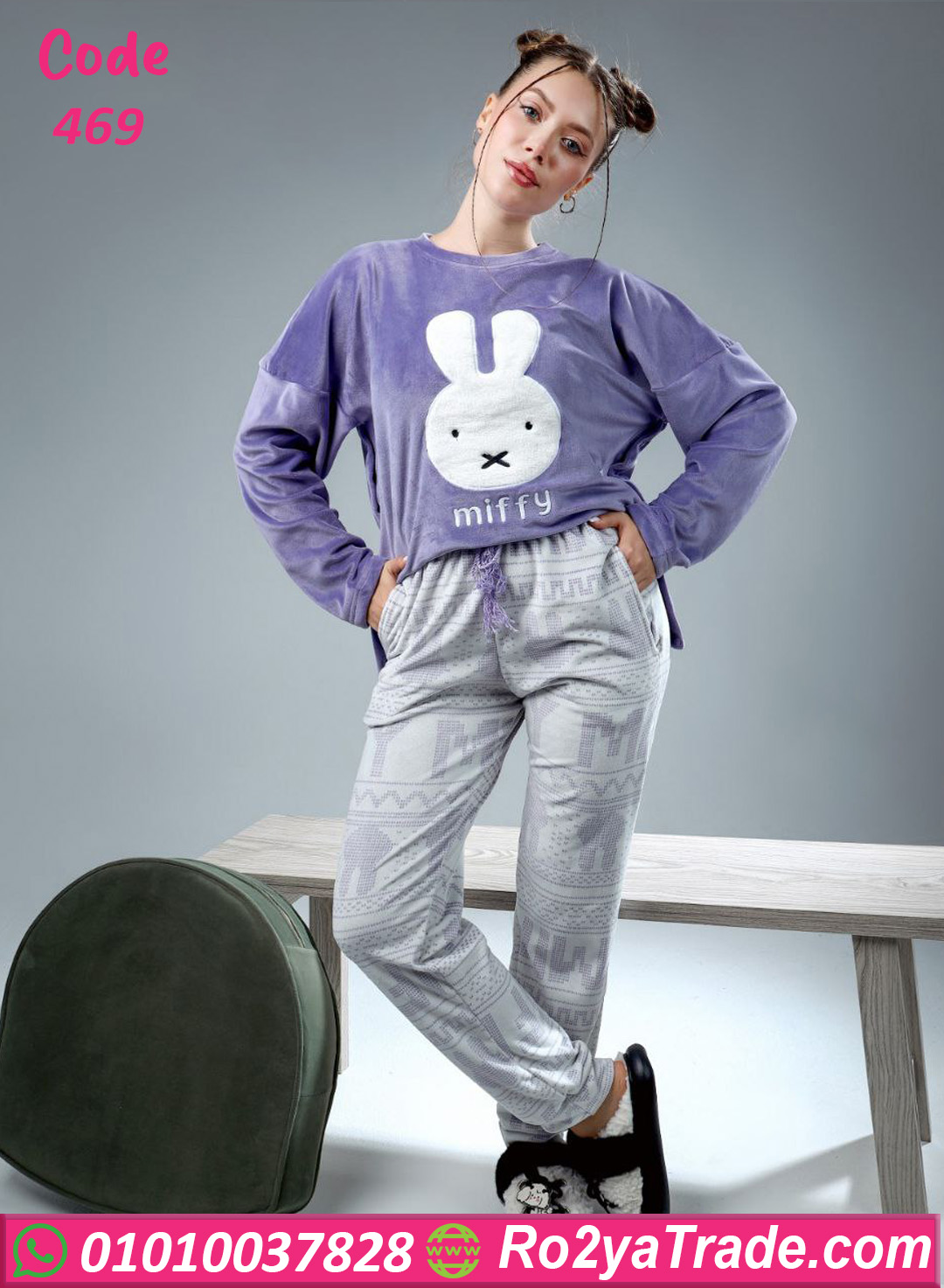 بيجامة شتوي حريمي بتصميم كيوت وعصري برسمة الأرنب ميفي، مناسبة للستات اللي بتحب الراحة مع شكل بسيط ولطيف.