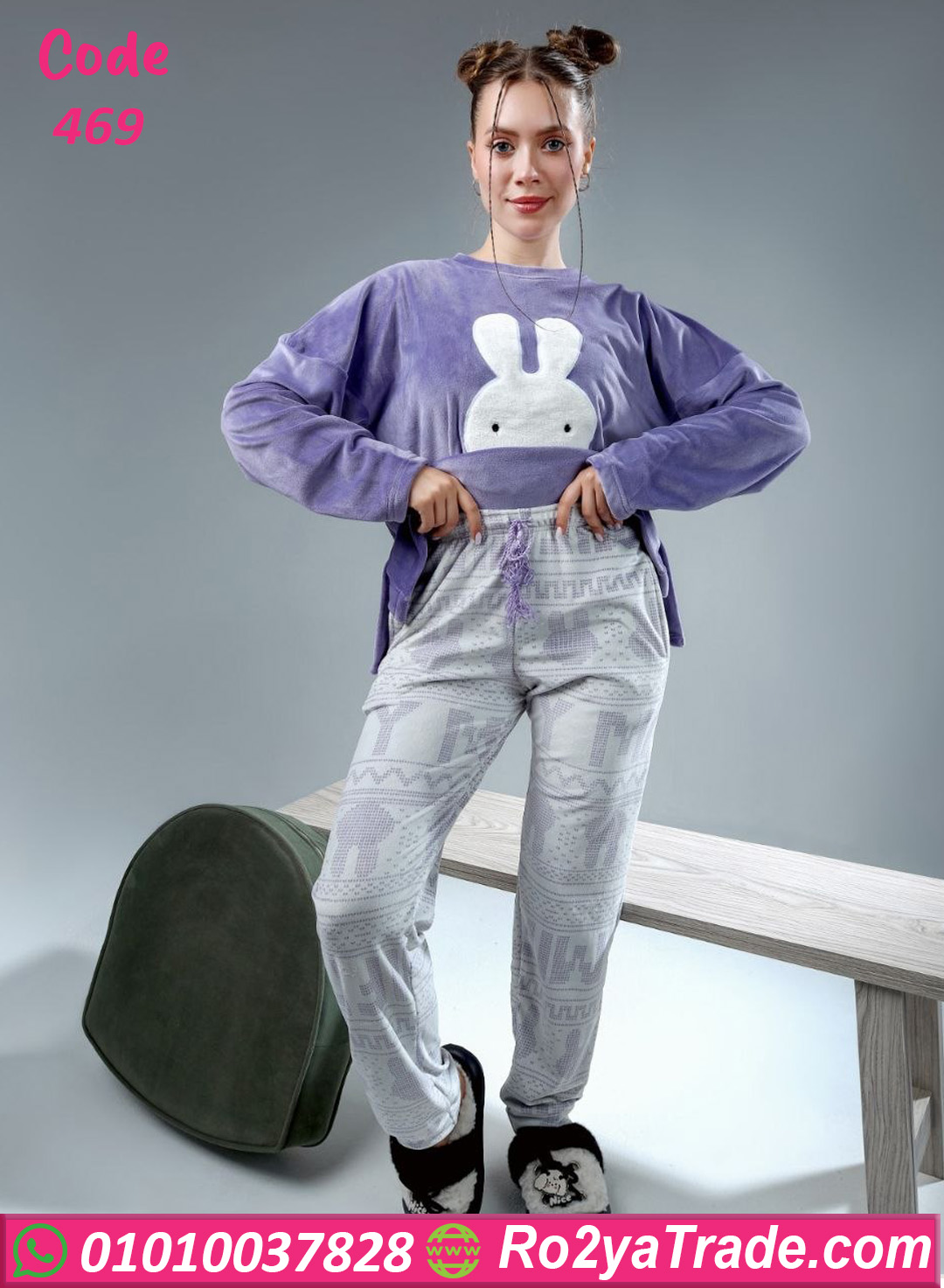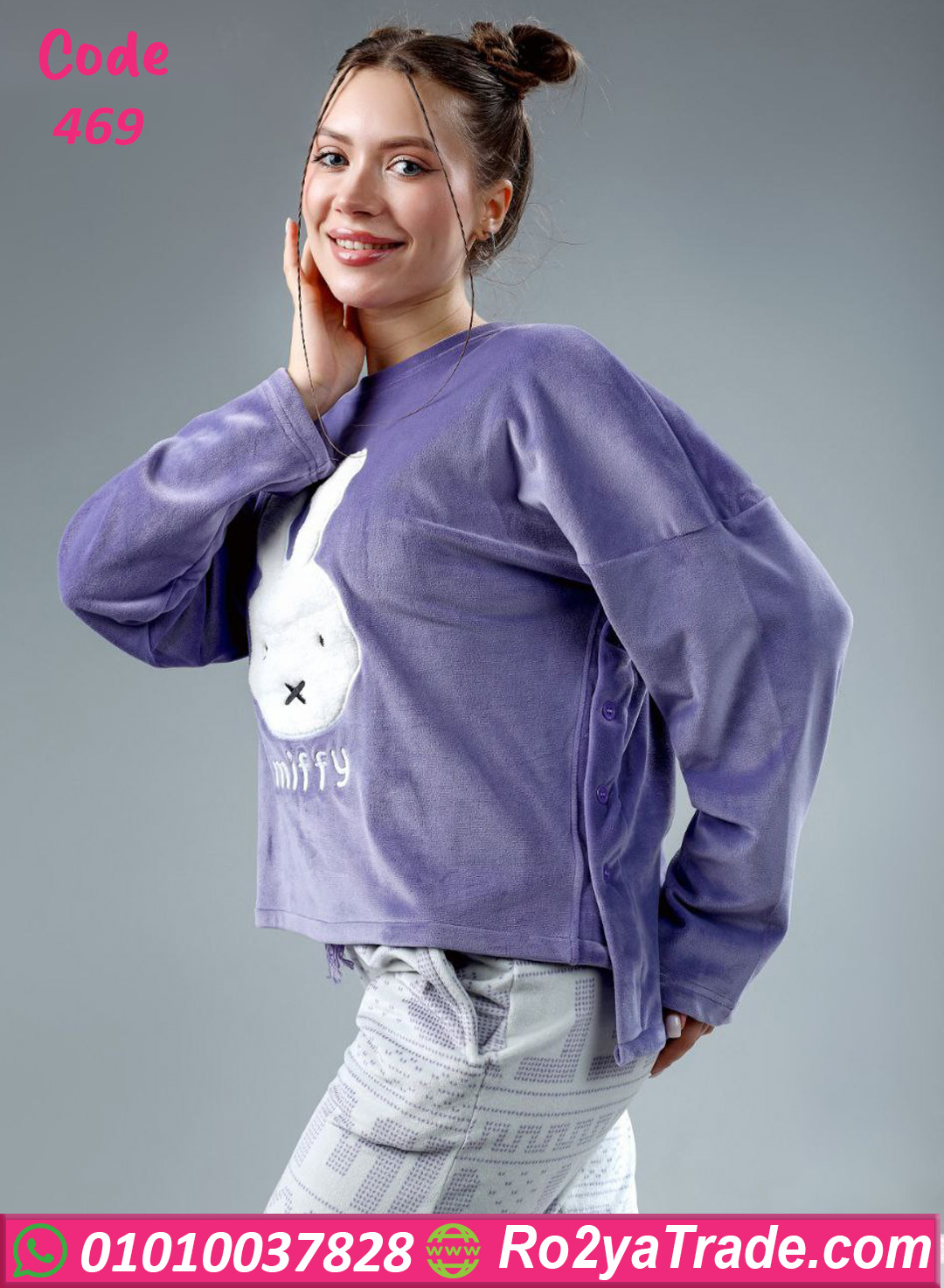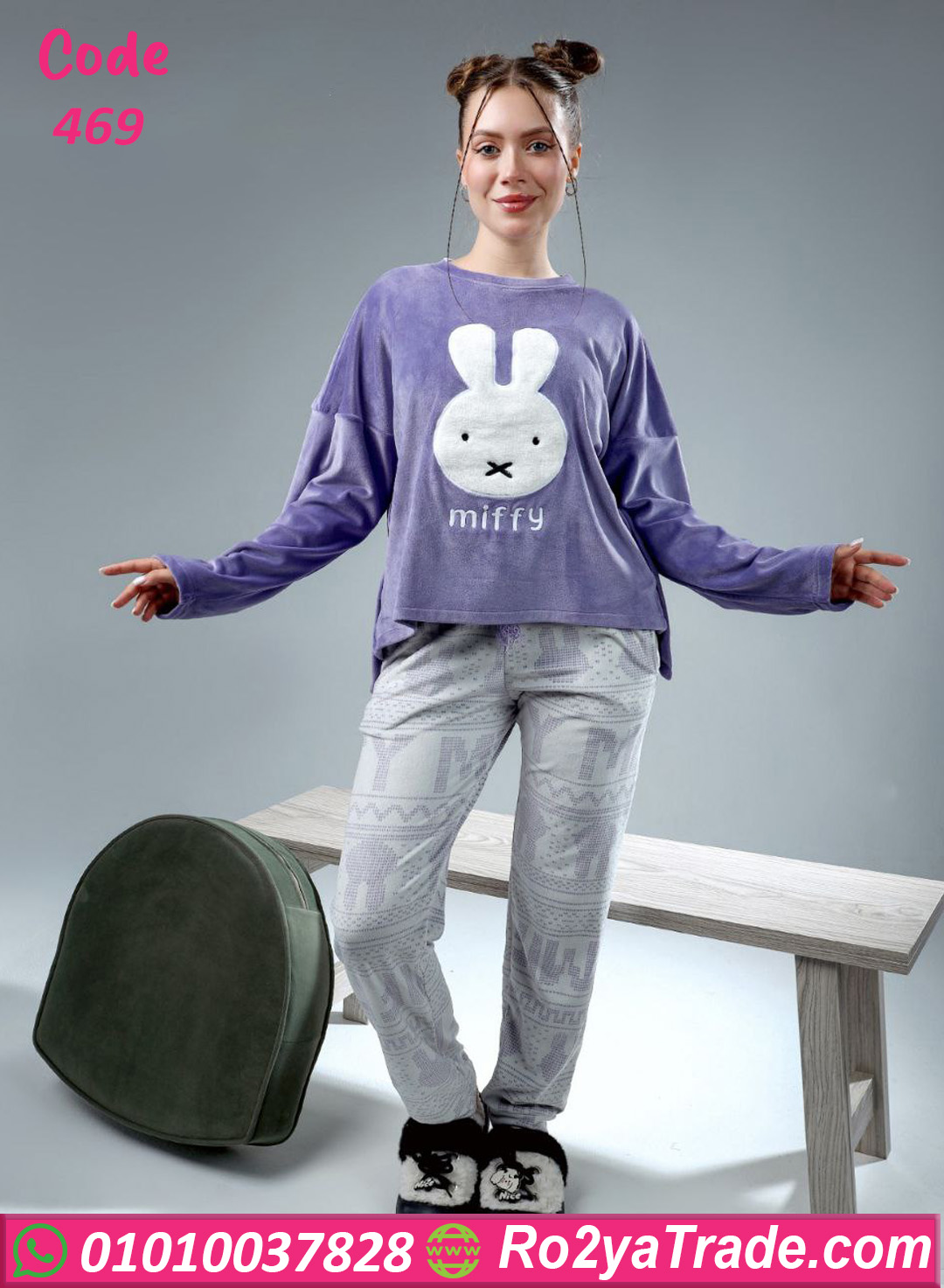 بيجامة شتوي حريمي بتصميم كيوت وعصري برسمة الأرنب ميفي، مناسبة للستات اللي بتحب الراحة مع شكل بسيط ولطيف.