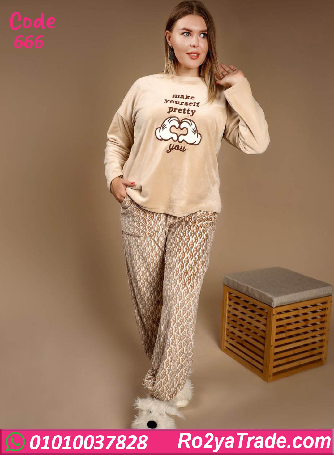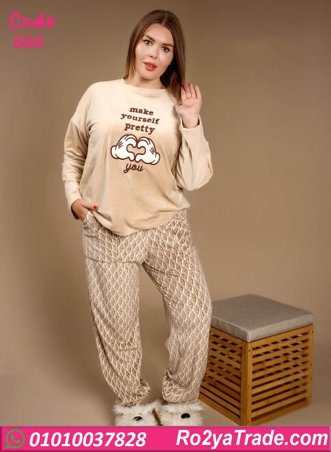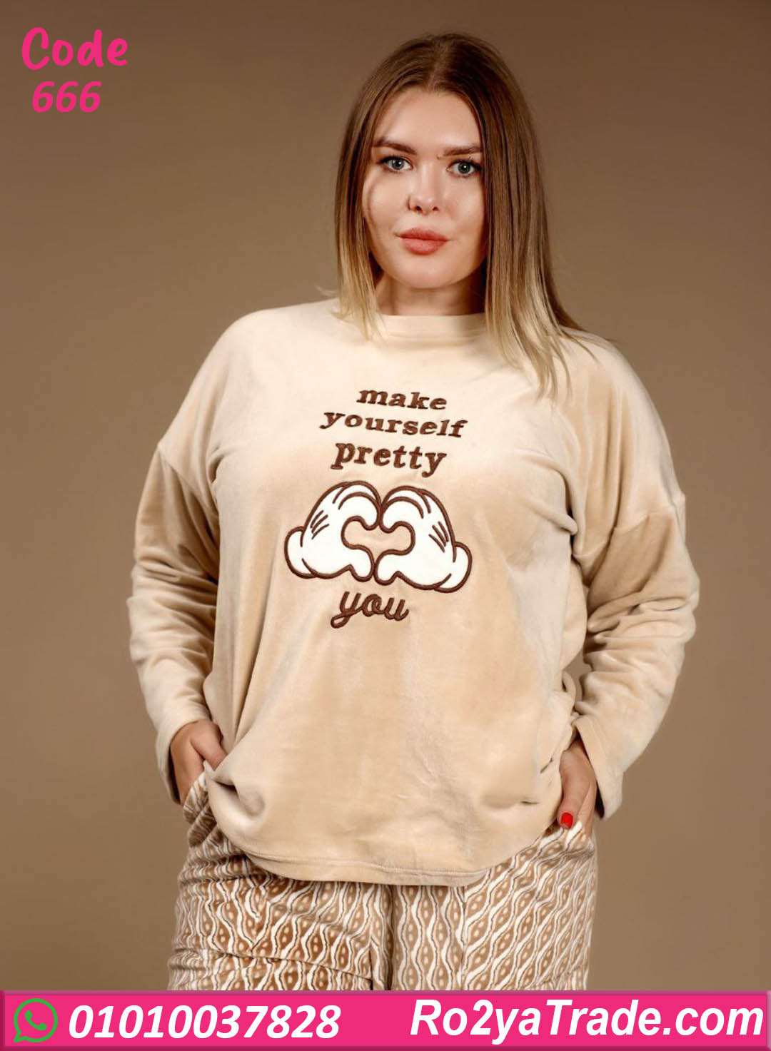 بيجامة حريمي شتوي عملية ومريحة، خامة دافية وناعمة جدًا مناسبة للبيت في أيام الشتاء الباردة، تصميم شيك يدي راحة وأناقة في نفس الوقت