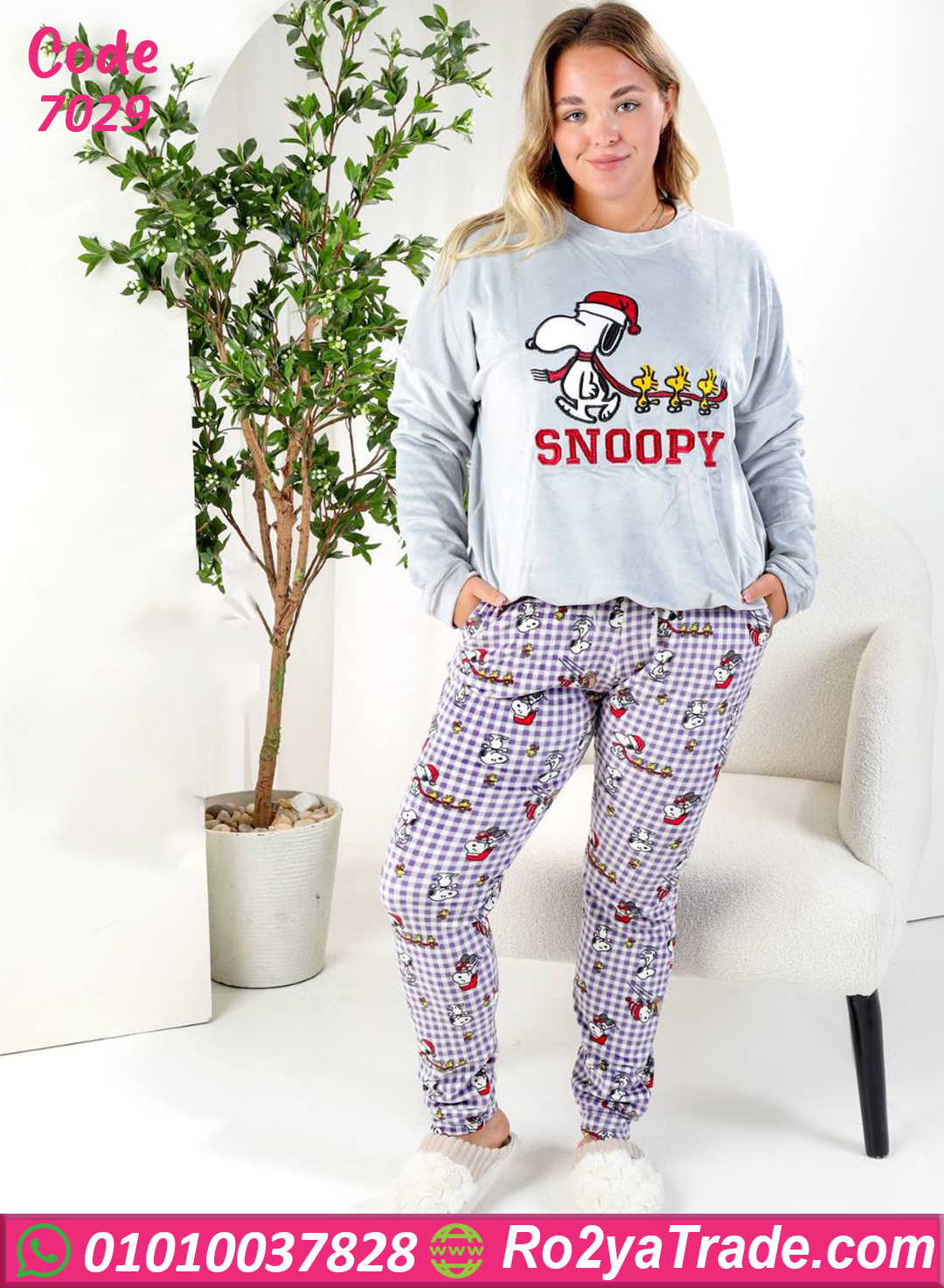 بيجامة شتوي قطيفة ناعمة بتطريزة سنوبي اللطيفة 💕، مريحة ودافئة جدًا للمقاسات الكبيرة،