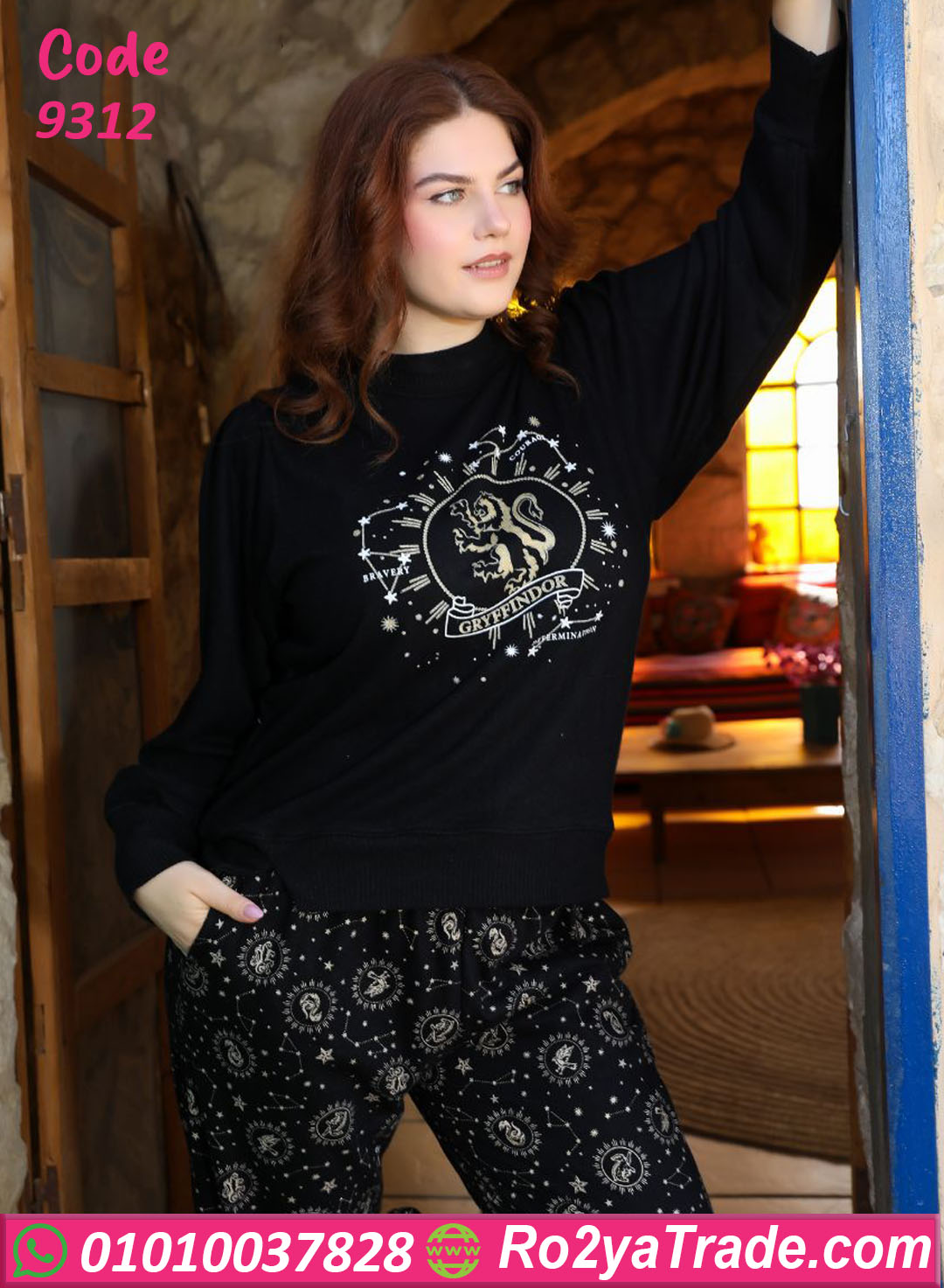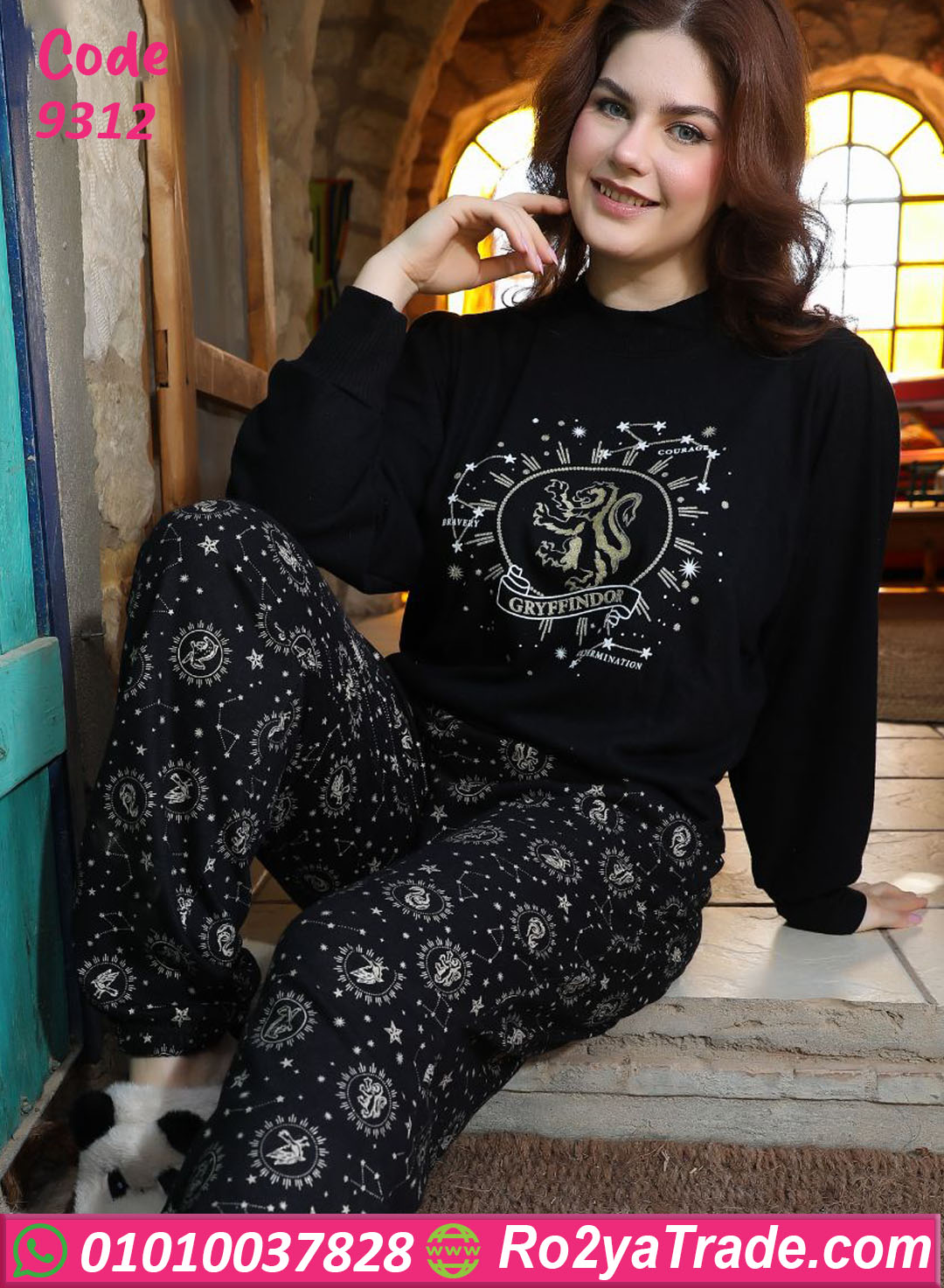 بيجامة شتوي شيك باللون الأسود وعليها نقشة نجوم مذهلة بتديك لوك أنيق ودفا في نفس الوقت ✨