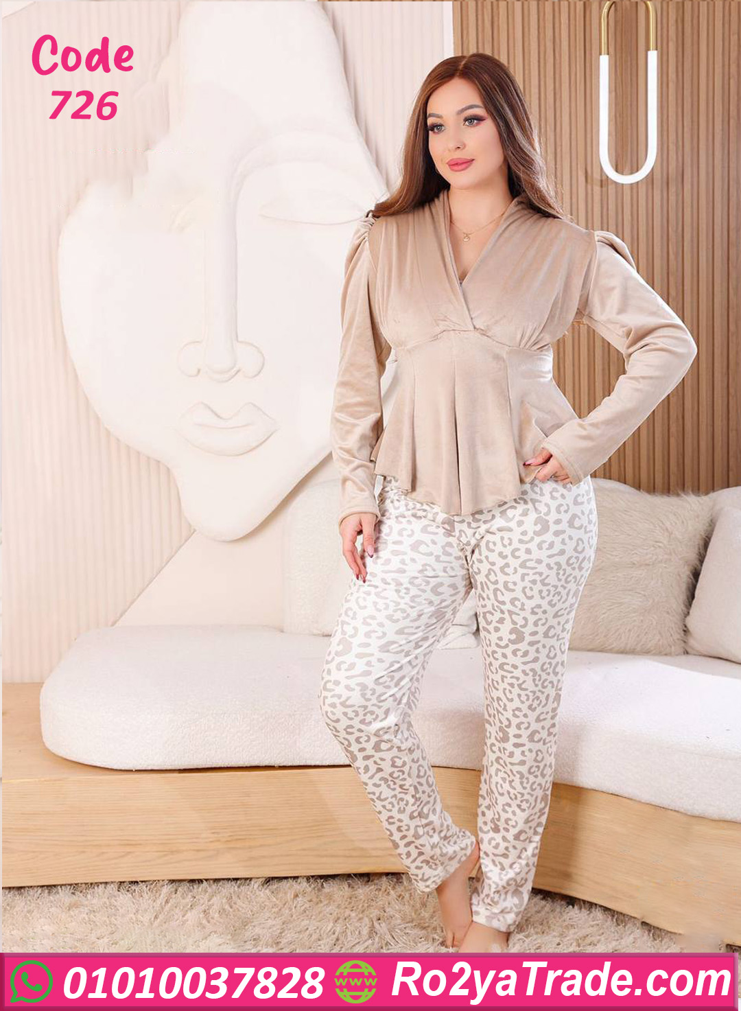 لو بتدوري على بيجامة شتوي تجمع بين الشياكة والراحة، موديل كود 726 اختيار ممتاز ليكي. التصميم مميز بقصة صدر على شكل بتبرز الشكل بطريقة راقية من غير مبالغة، مع بلوزة واسعة شوية من تحت بتدي راحة في اللبس ومظهر أنيق.
