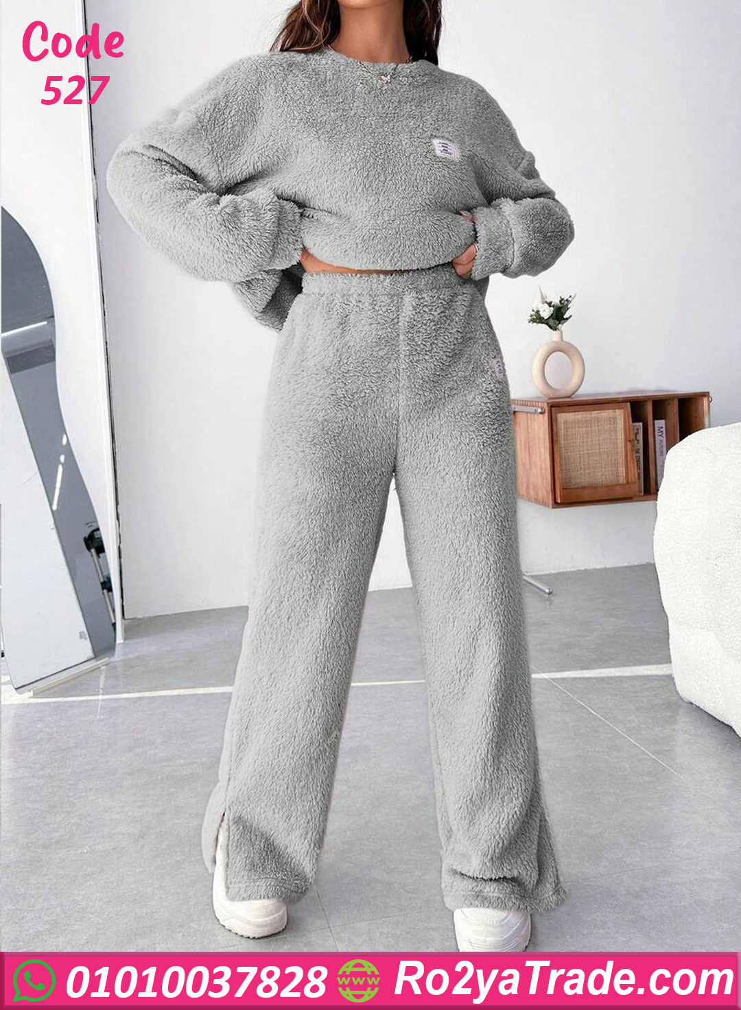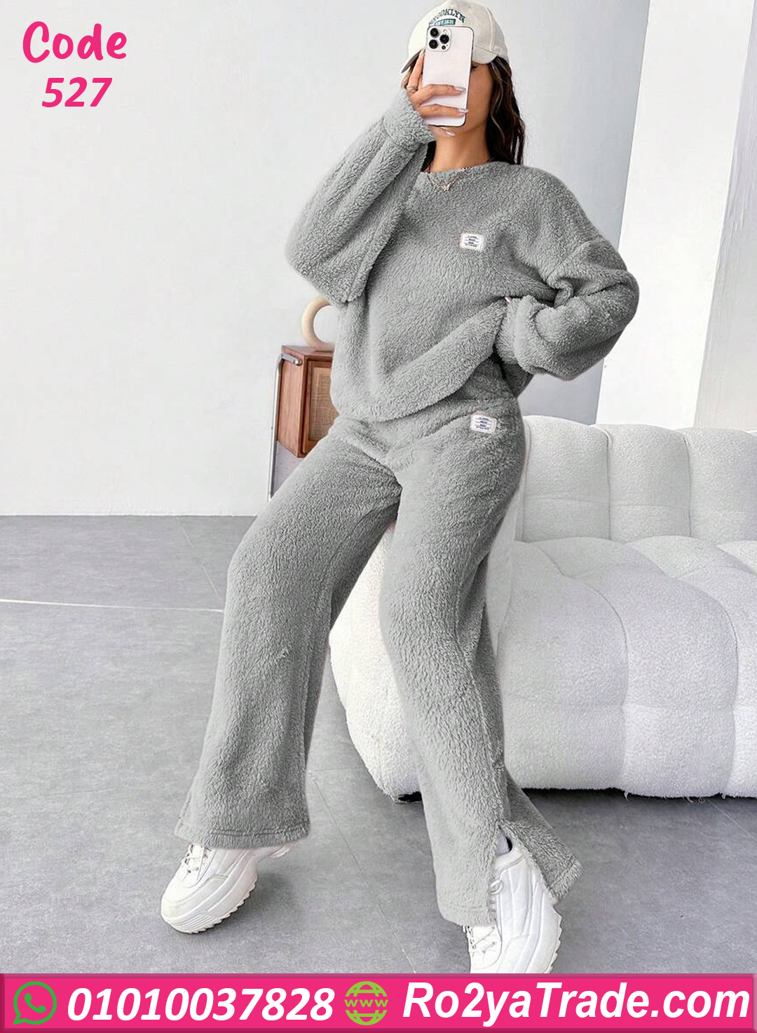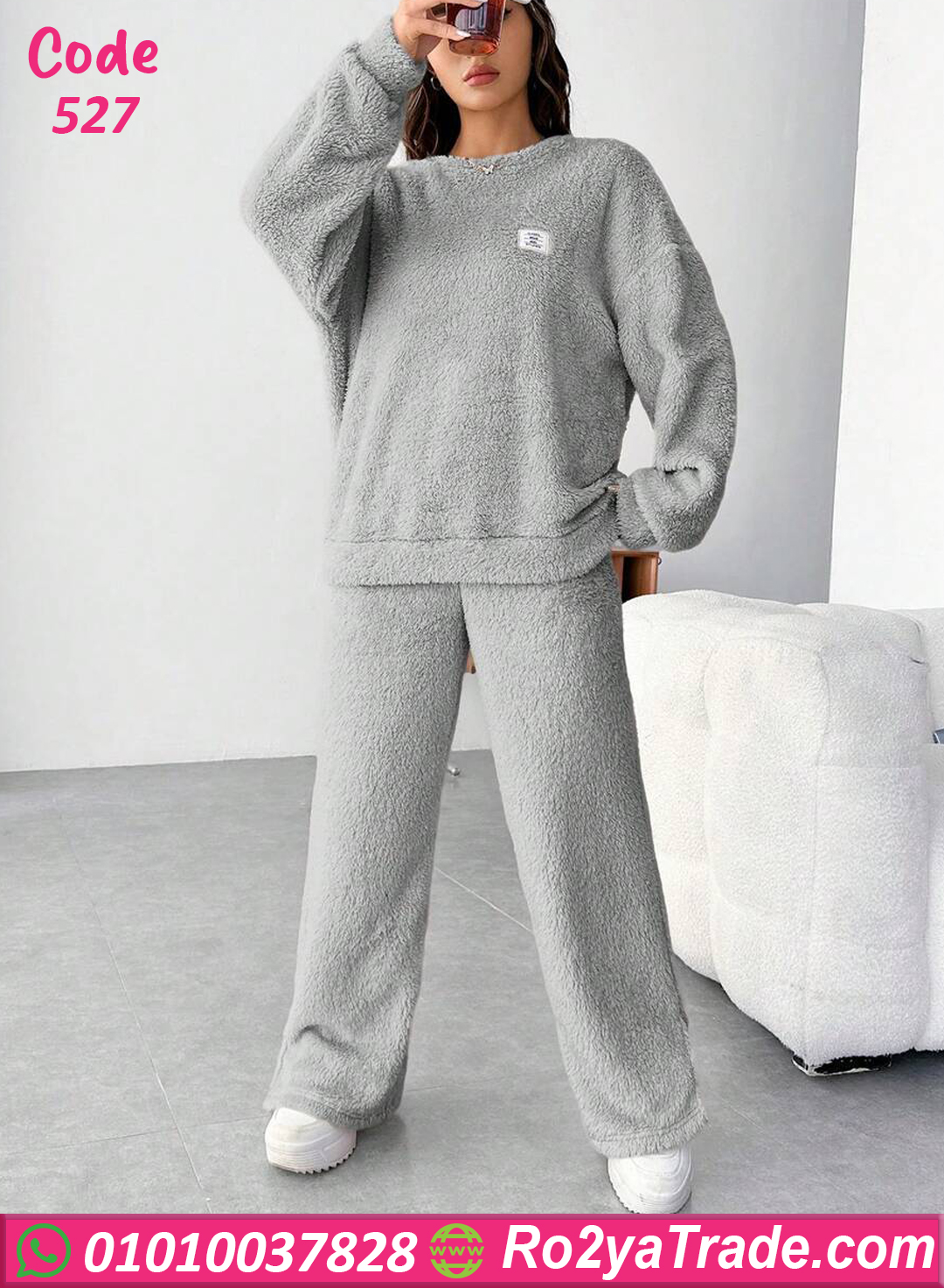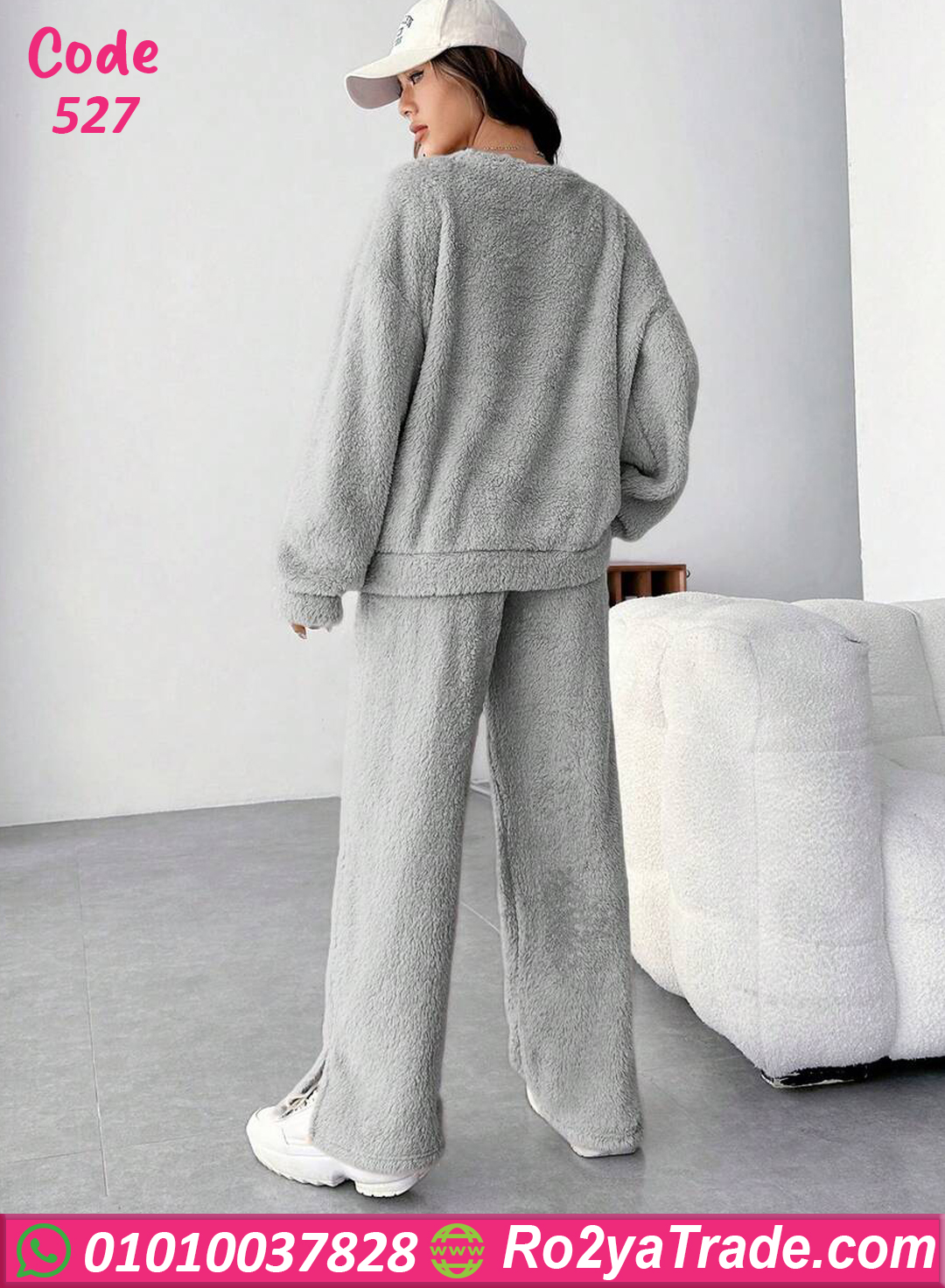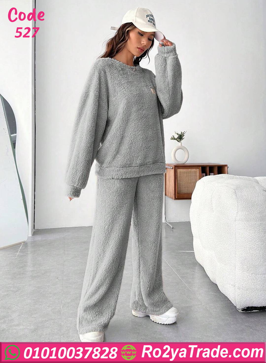 بيجامة حريمي شتوي ناعمة جدًا بخامة فُرو طرية تدفيكي وتخليكي مرتاحة طول اليوم 🩶