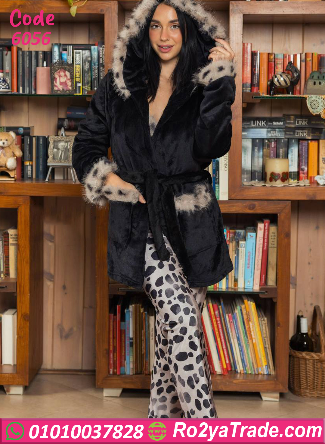 بيجامة شتوي فرو فخم مع روب – كود 6056